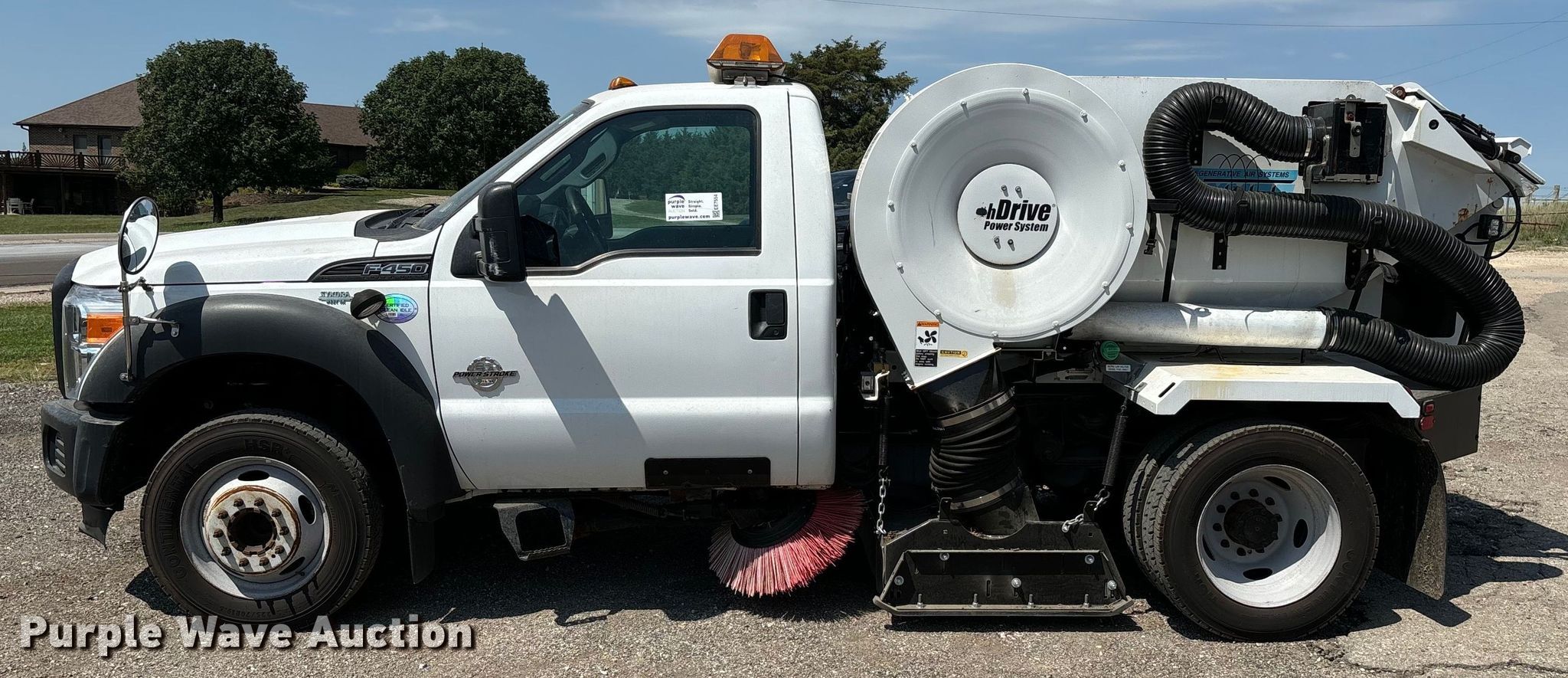 Purple Wave is selling a used Street Sweeper Truck in Kansas. This item is a 2015 Ford F450 Super Duty XL street sweeper truck with the following: Miles: 5,444 on odometer, Hours: 724 on meter, VIN: 1FDUF4GT1FEB33588, Serial: 2015123NH237550