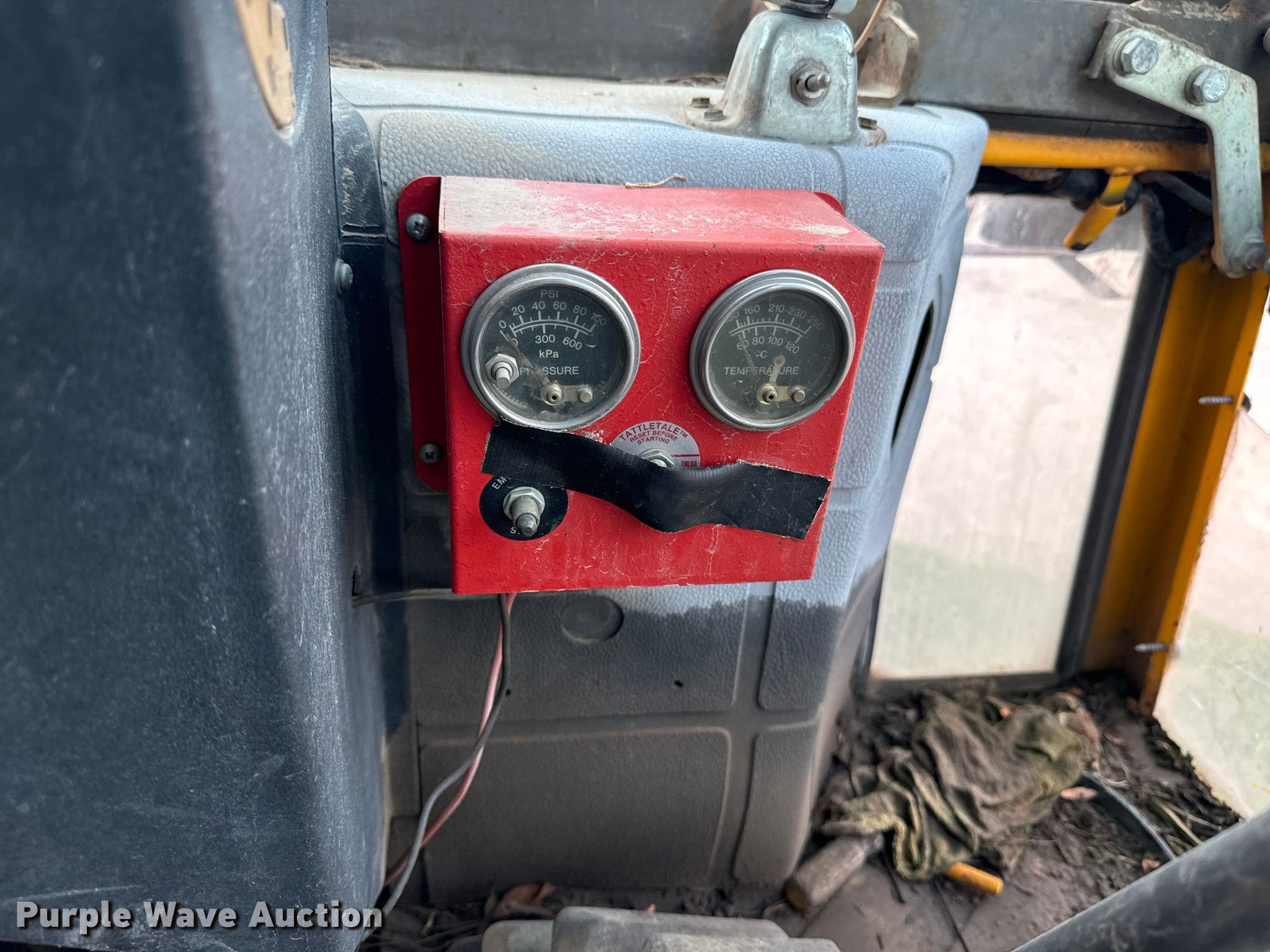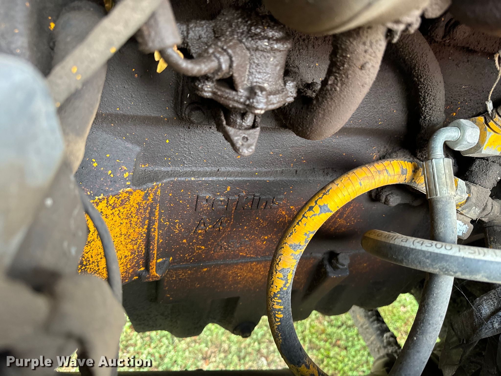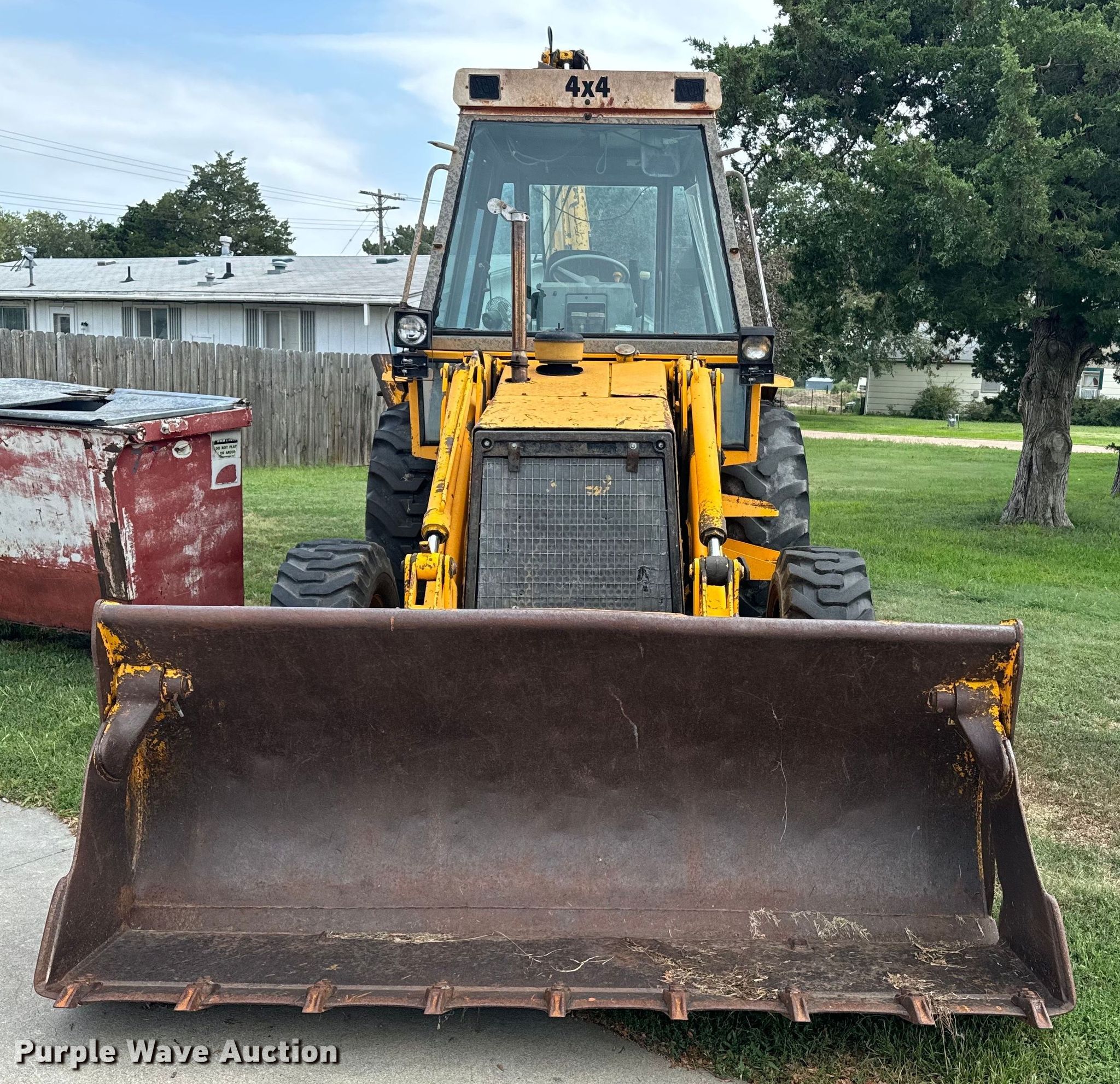 1988 JCB 1550B backhoe. Hours: 4,170 on meter, Serial: 15BT4049/346617/7. Engine Perkins, Cylinders: 4, Fuel type: Diesel. Transmission Shuttle shift, 4F - 4R. Chassis Four wheel drive. Operators station Enclosed cab, Backhoe controls: Wobble stick / two stick. Features Loader Bucket Four-in-one, Width: 96", Teeth: 9, Backhoe Extendable stick, Bucket Width: 24", Teeth: 4.. Tires Front: 14-17.5, Rear: 21L-24. Notes Door hinge broken, Hydraulic oil leak. Agra, KS 67621