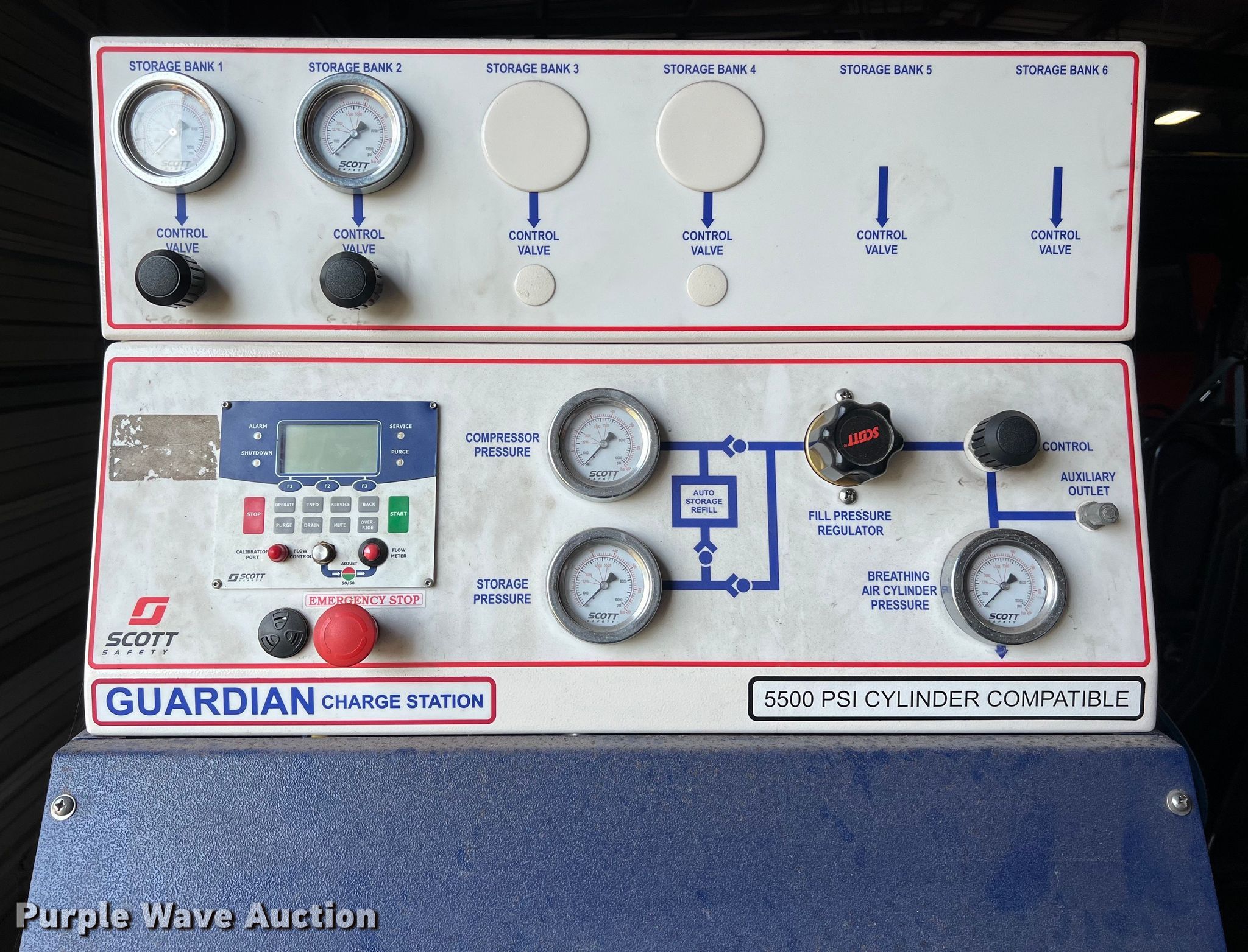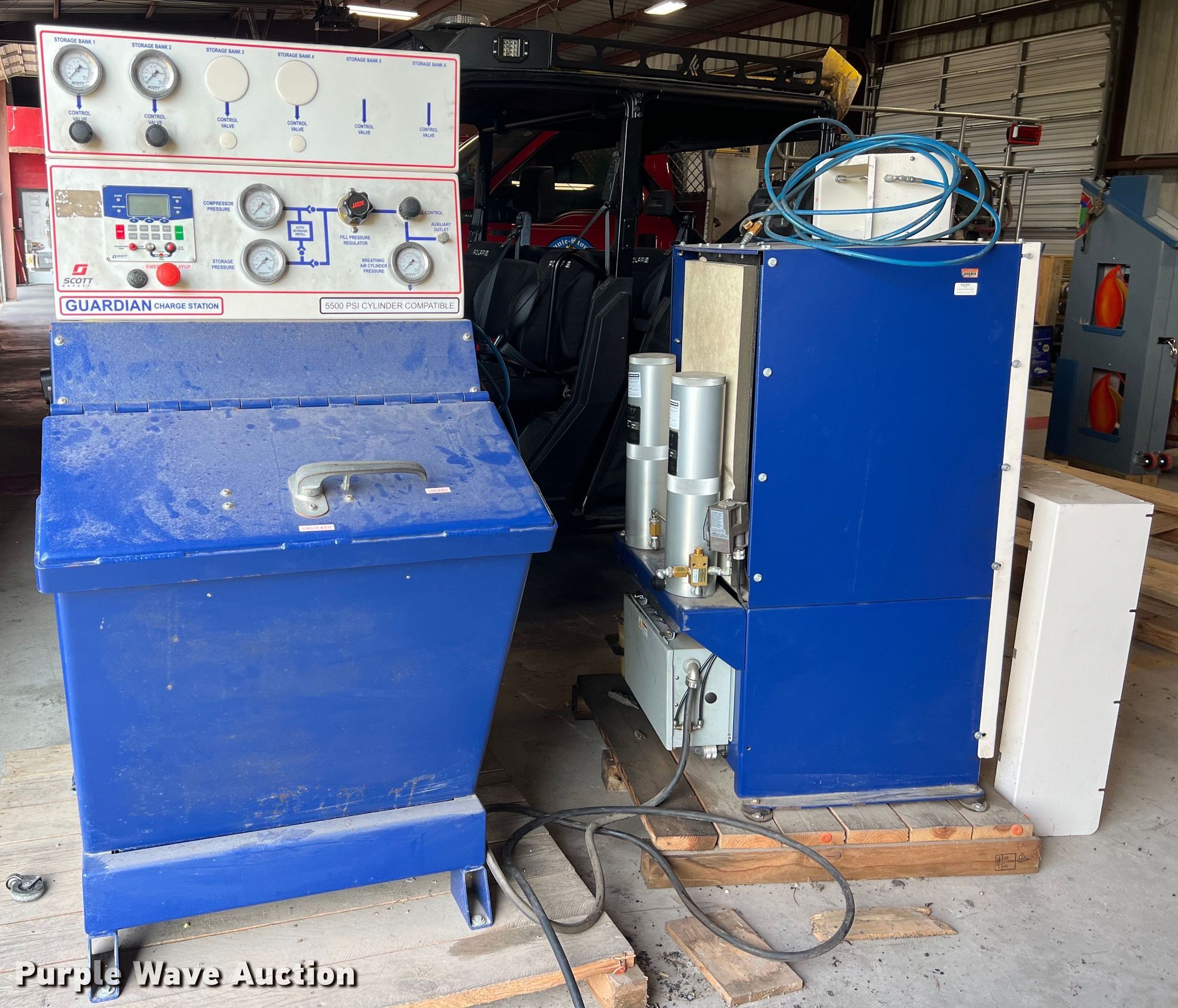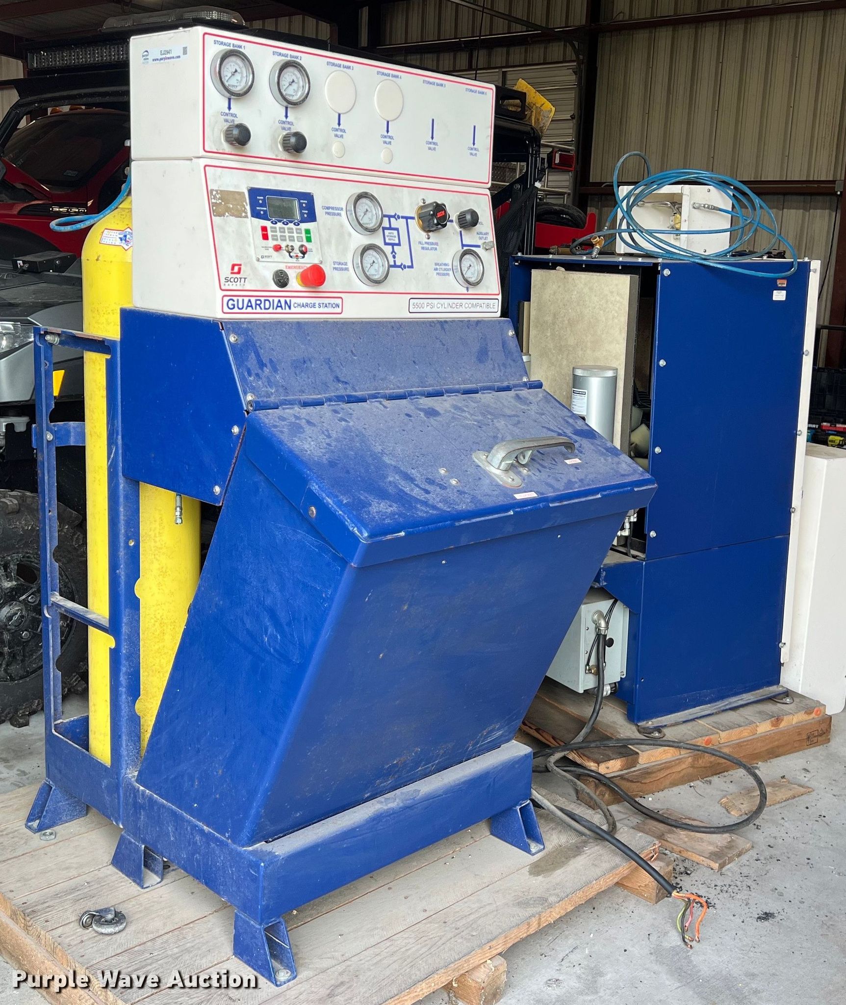 Purple Wave is selling a used Medical Equip. in Texas. This item is a Scott Safety AC0404252110 tank refill system with the following: PSI: 6,000 PSI, Volts: 230, Phase: 3, HP: 7.5, (2) air tanks