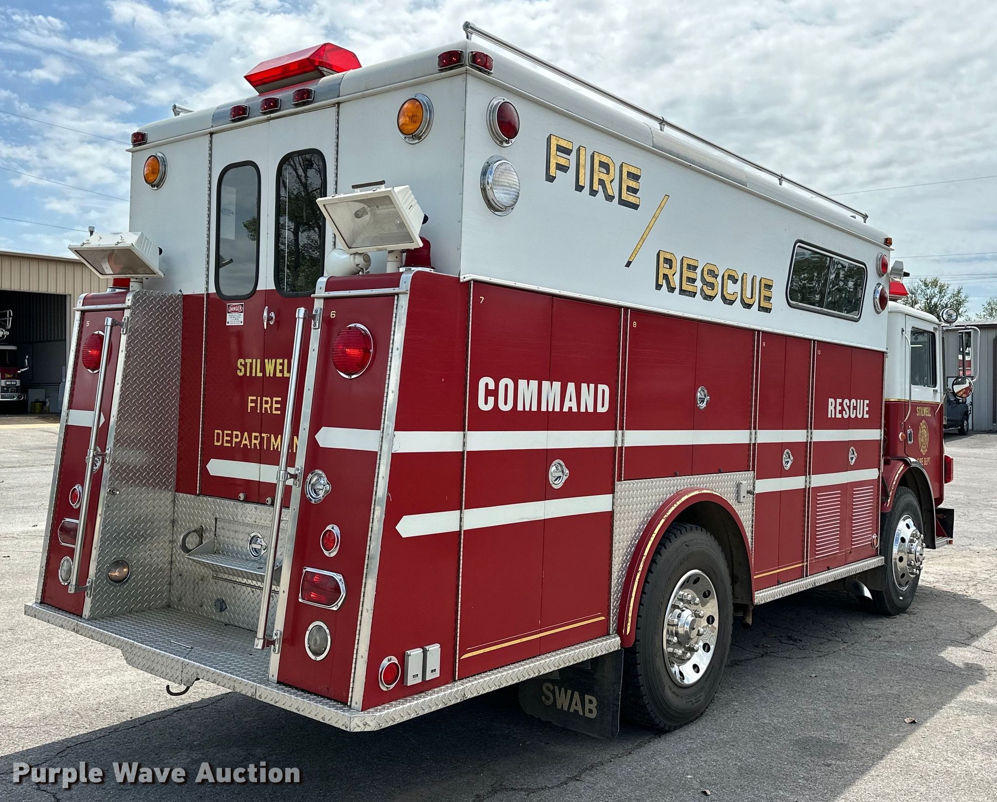 Purple Wave is selling a used Fire Truck or Emergency Vehicle in Oklahoma. This item is a 1981 Mack MC611FG rescue vehicle with the following: Miles: 32,504 on odometer, VIN: 1M2H125CXBM001050