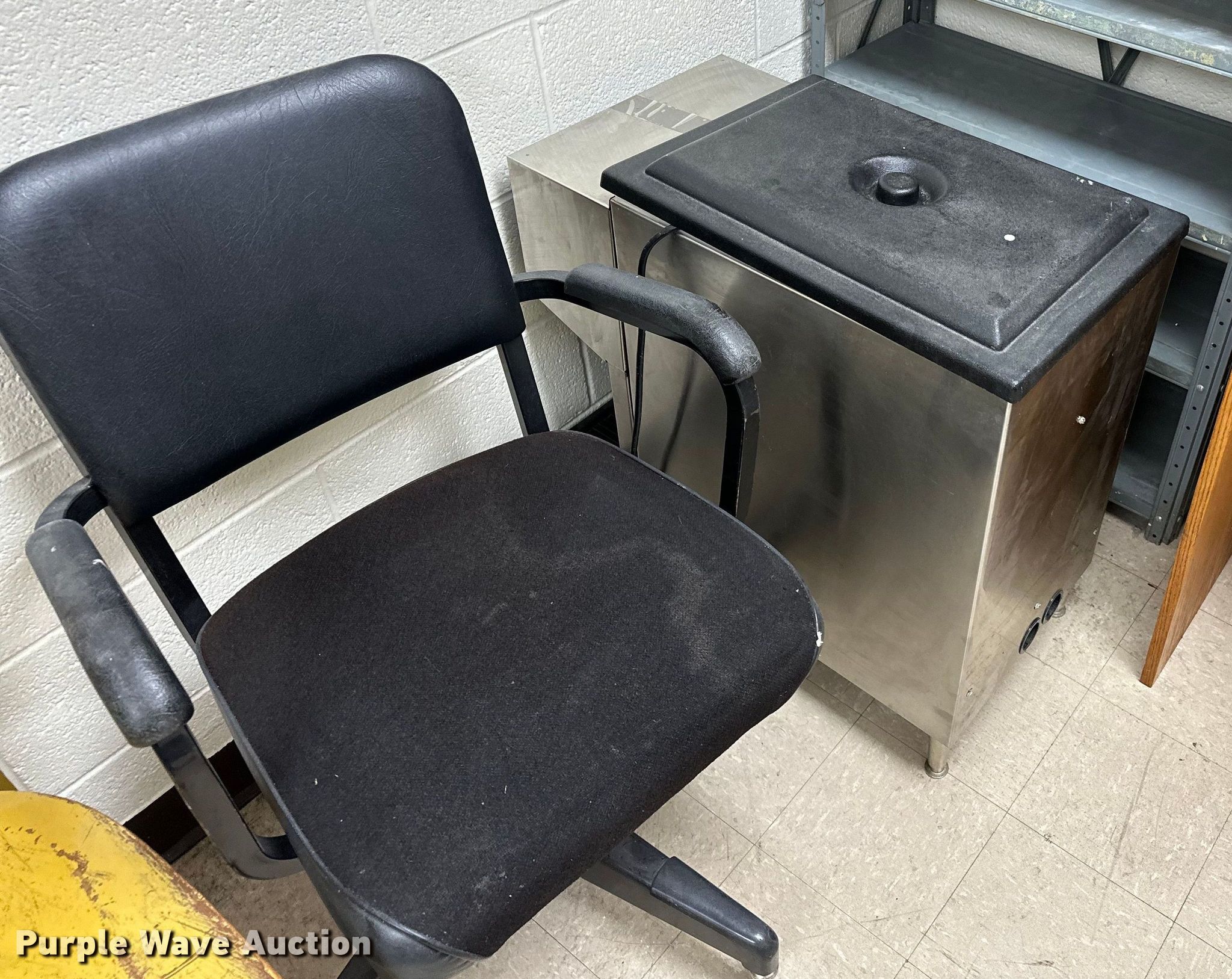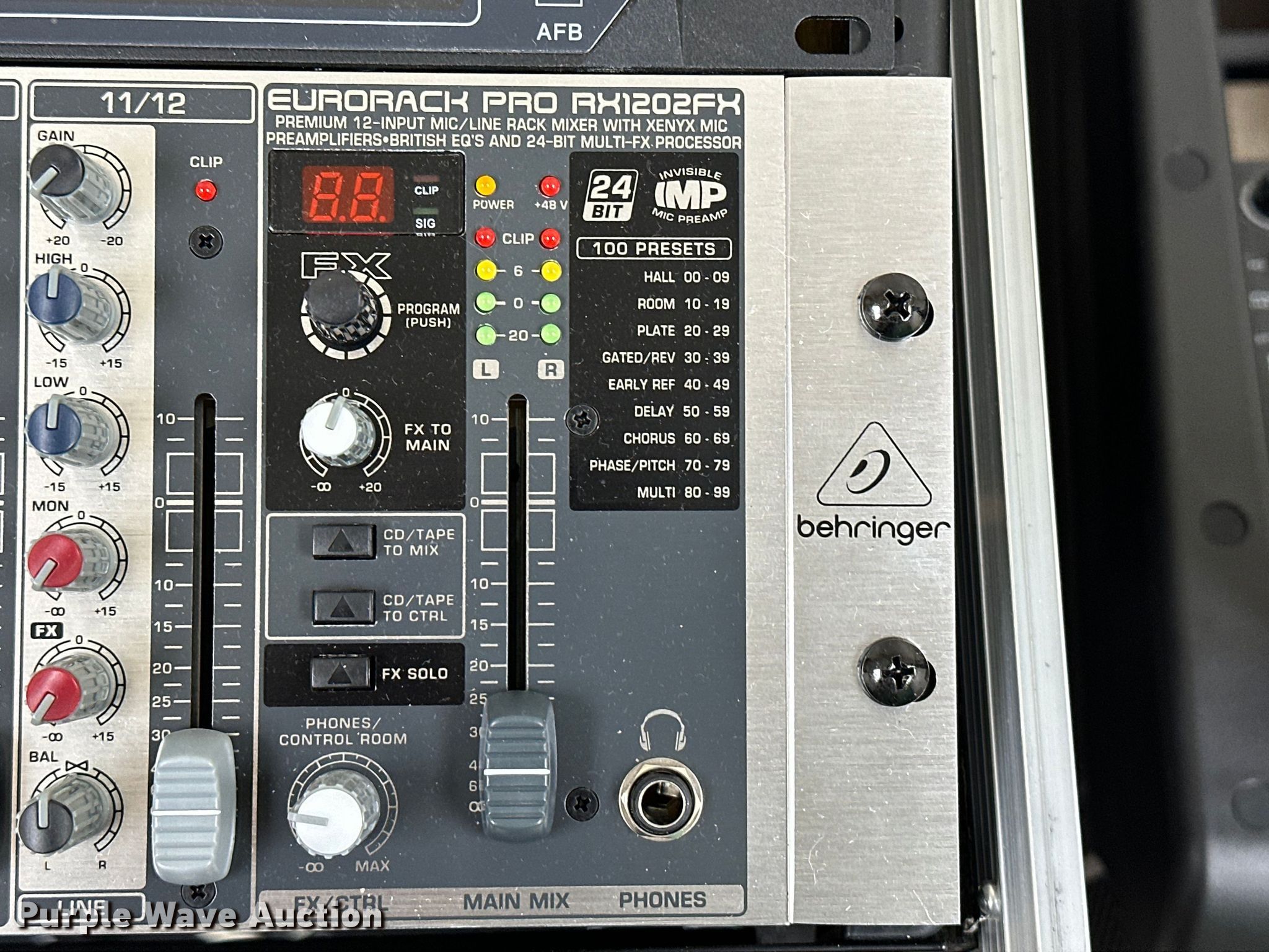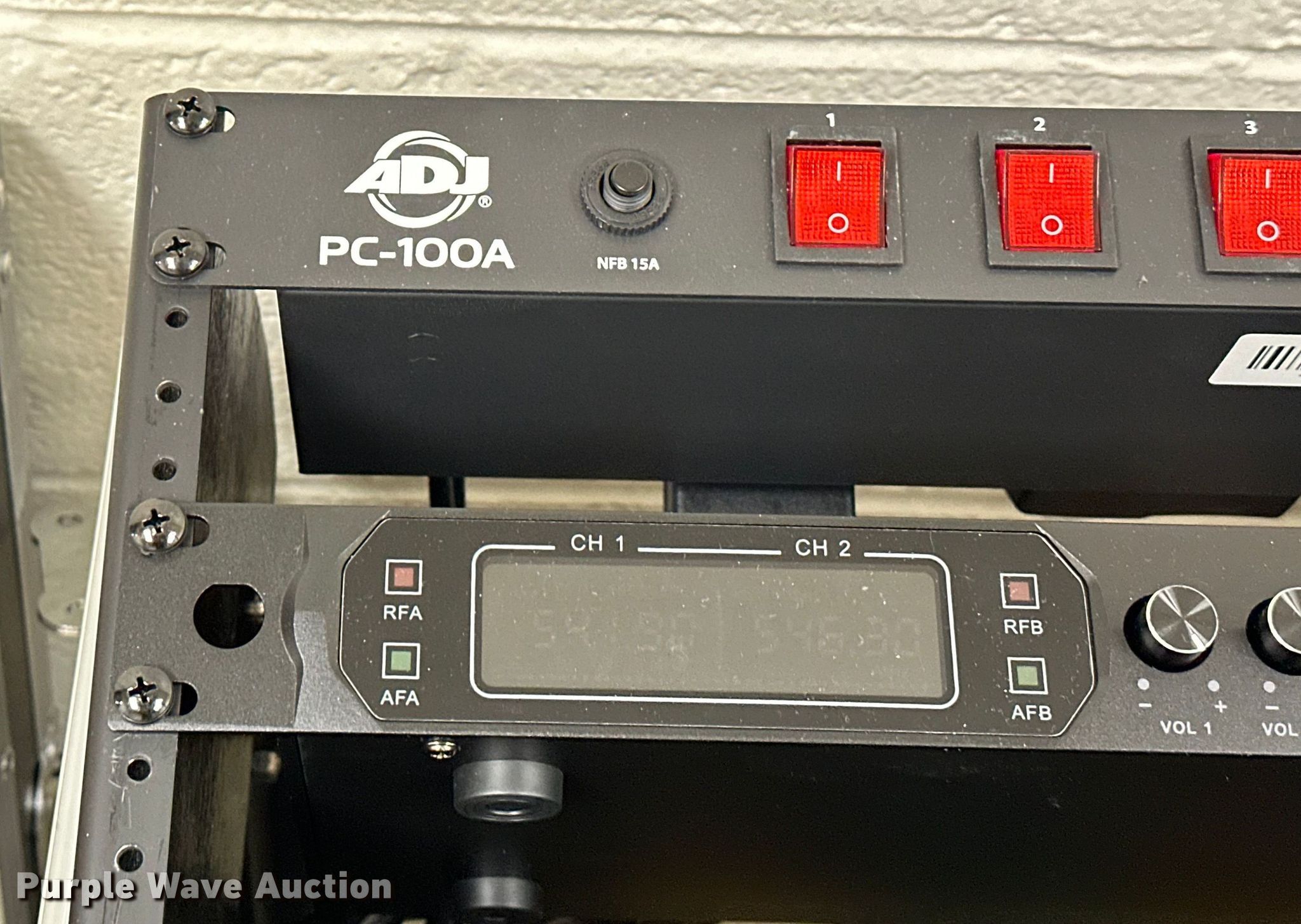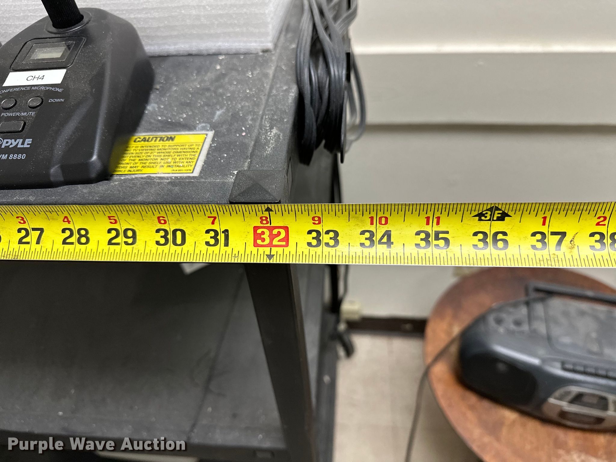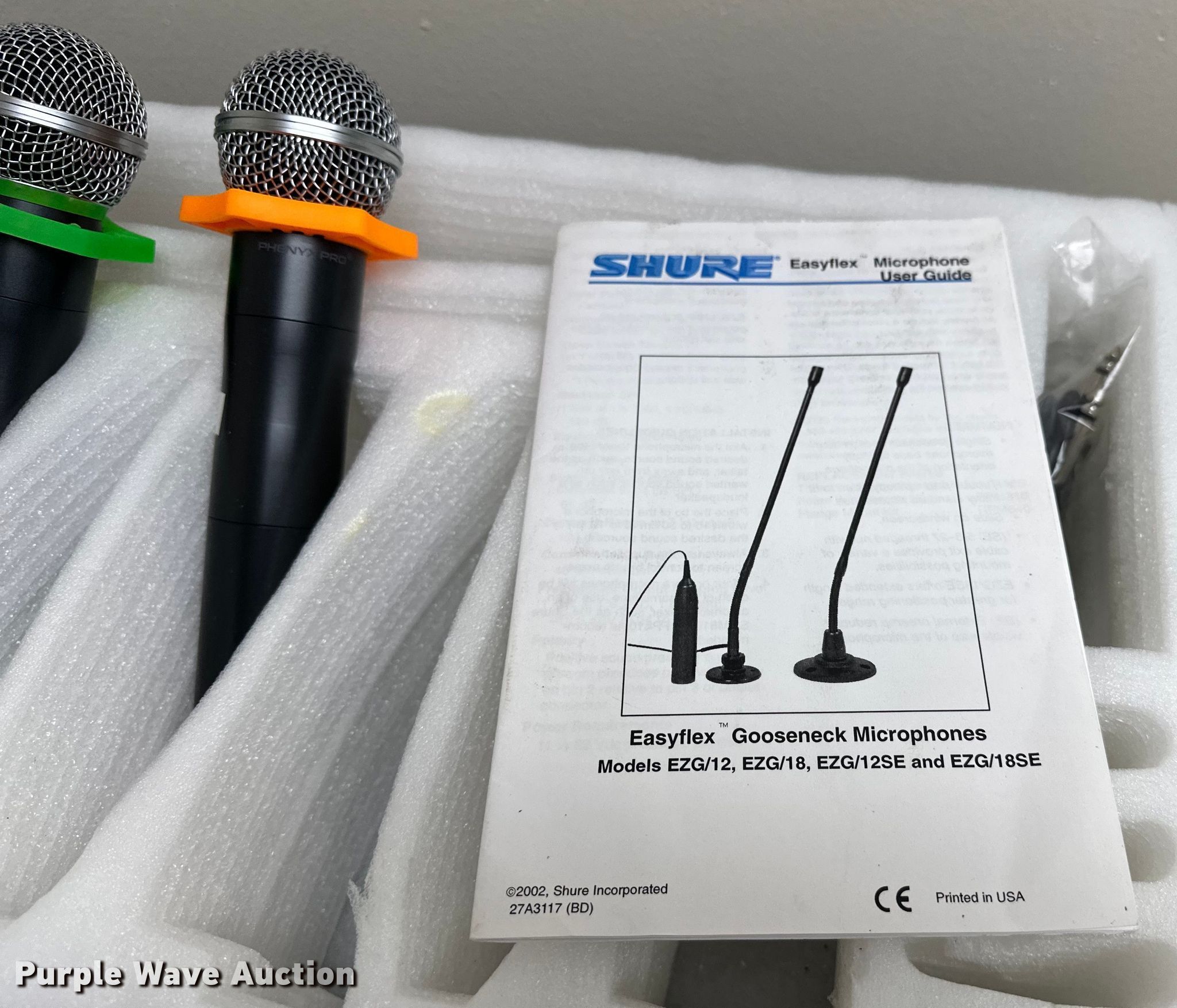 Purple Wave is selling a used Electronics in Oklahoma. This item is a Electronics with the following: (2) Phenyx Pro PTU-5000 microphones, Beringer EuroRack Pro RX 1202FX mixer, Pyle PDWM 8880 wireless receiver, ADJ PC-100A microphone control, (8) Pyle PDWM 8880 conference microphones, (4) microphones, JBL sound system, Ice cream maker, Radio, Desk, Lamp, Cabinet, (2) chairs, Chalk board, (2) pin boards, (2) tables
