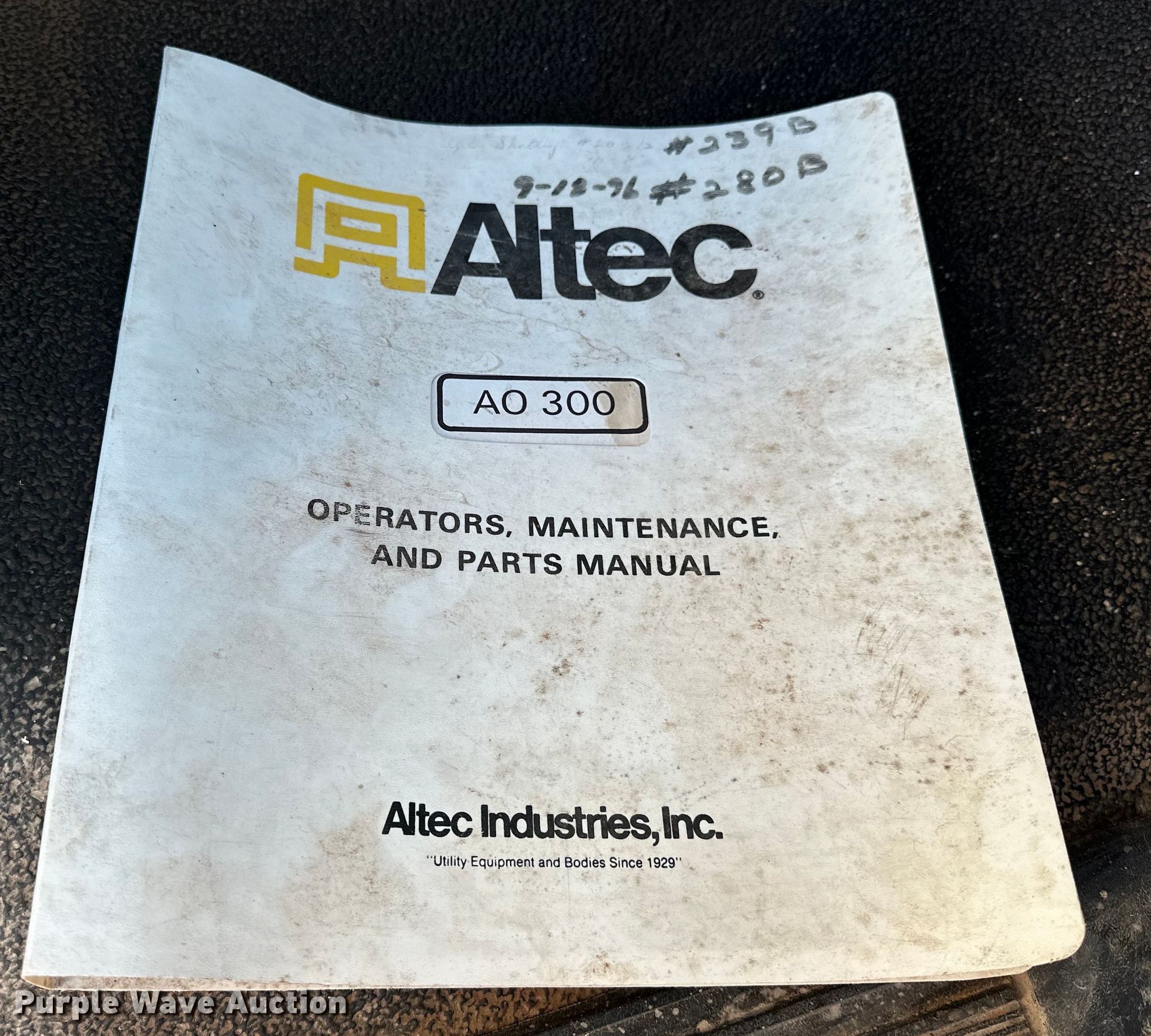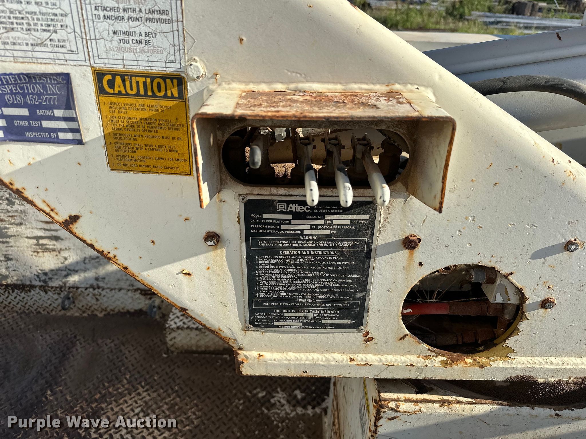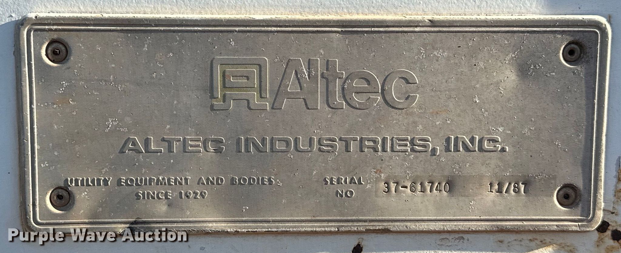 1997 Ford F800 bucket truck. Miles: 211,191 on odometer, VIN: 1FDNF80C2VVA10077. Engine Displacement: 5.9L, Cylinders: 6, Fuel type: Diesel. Transmission Manual, Speed: 5. Chassis Axles: Single, Suspension: Spring, Brakes: Hydraulic, PTO, Wet kit, GVWR: 26,000 lbs. Interior AC, Heat. Features Bed Altec, Serial: 37-61740, 8' 10" L x 93" W, Boom 1987 Altec AO-300, Serial: 1087-P0619, Mast height: 36', Maximum lift capacity: 300 lbs, Boom type: Articulating, Insulated, Man basket, Boom controls Ground, Platform/ basket.. Tires Size: 11R22.5. Oklahoma classic title. McClain County. Blanchard, OK 73010