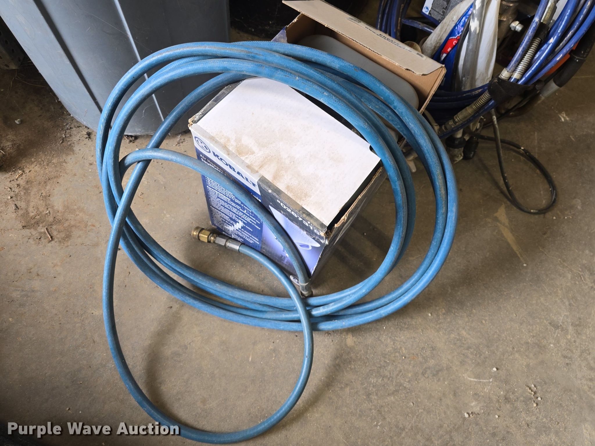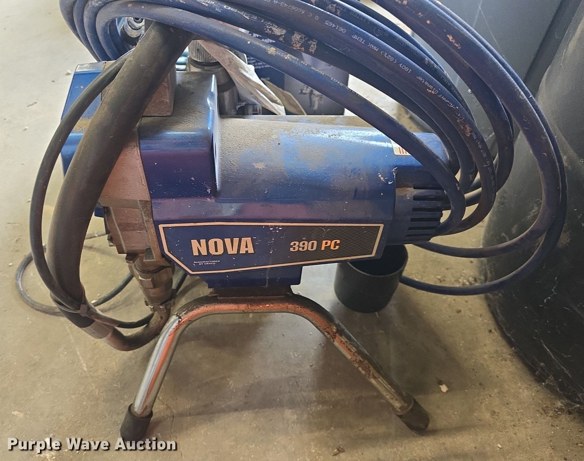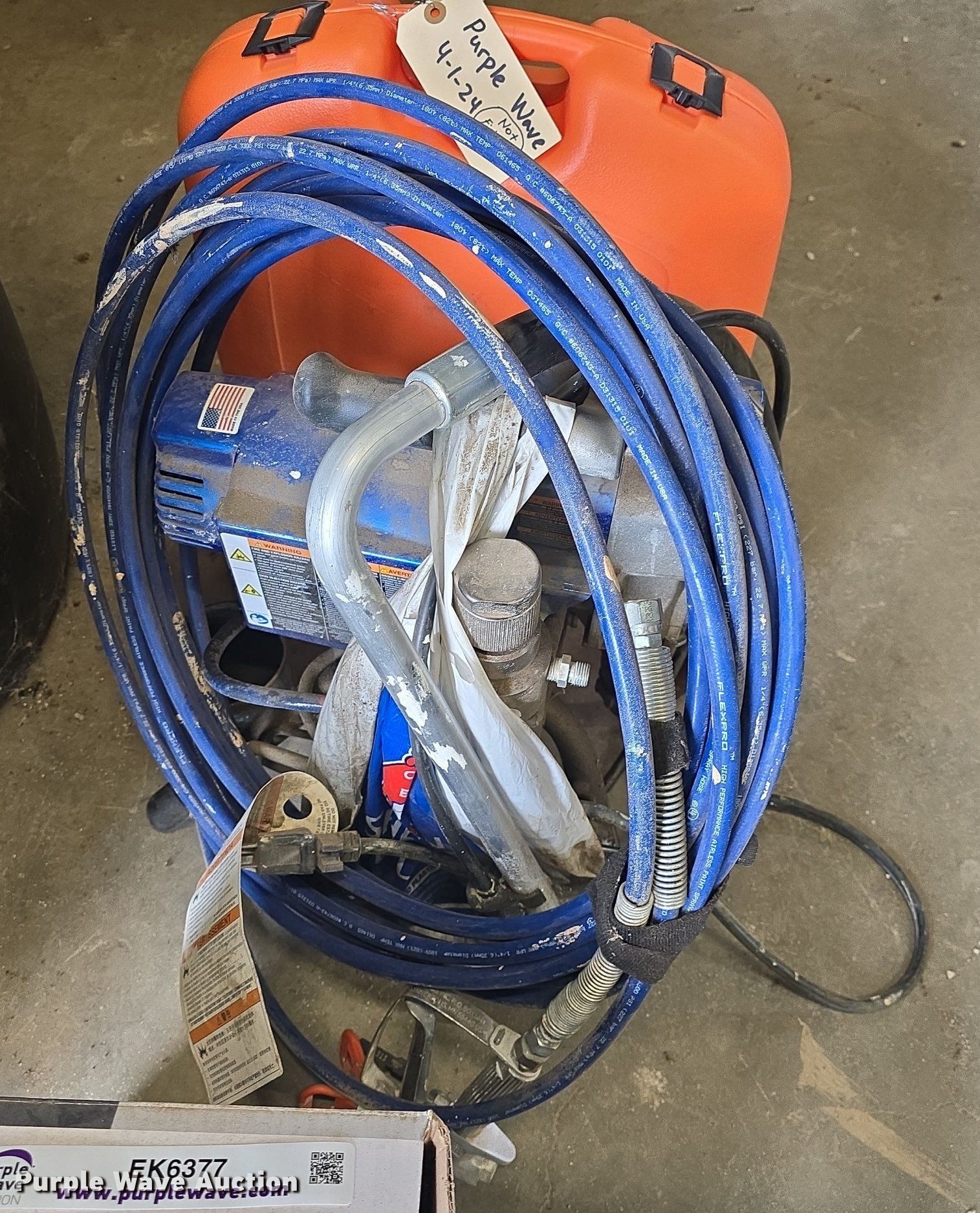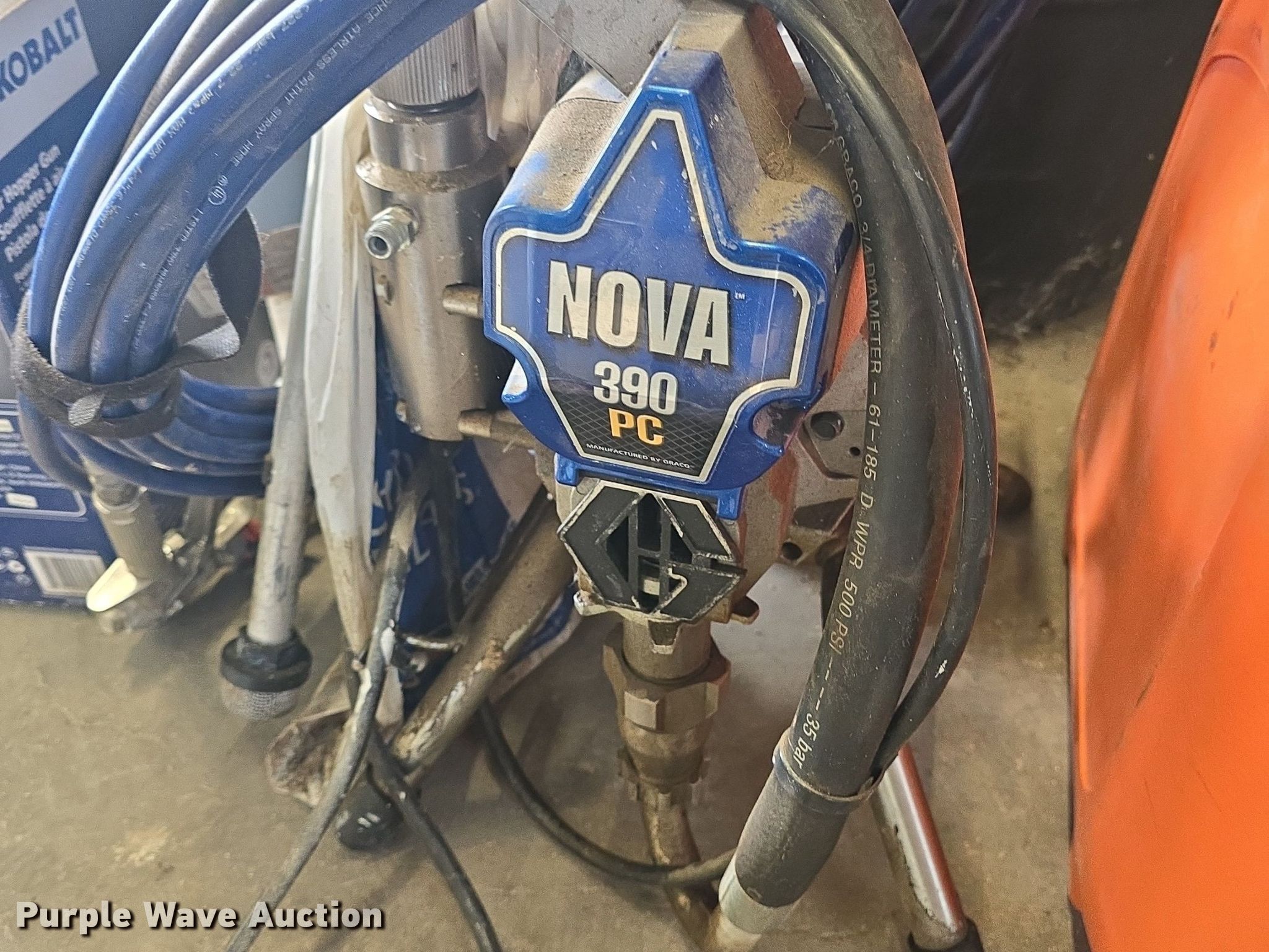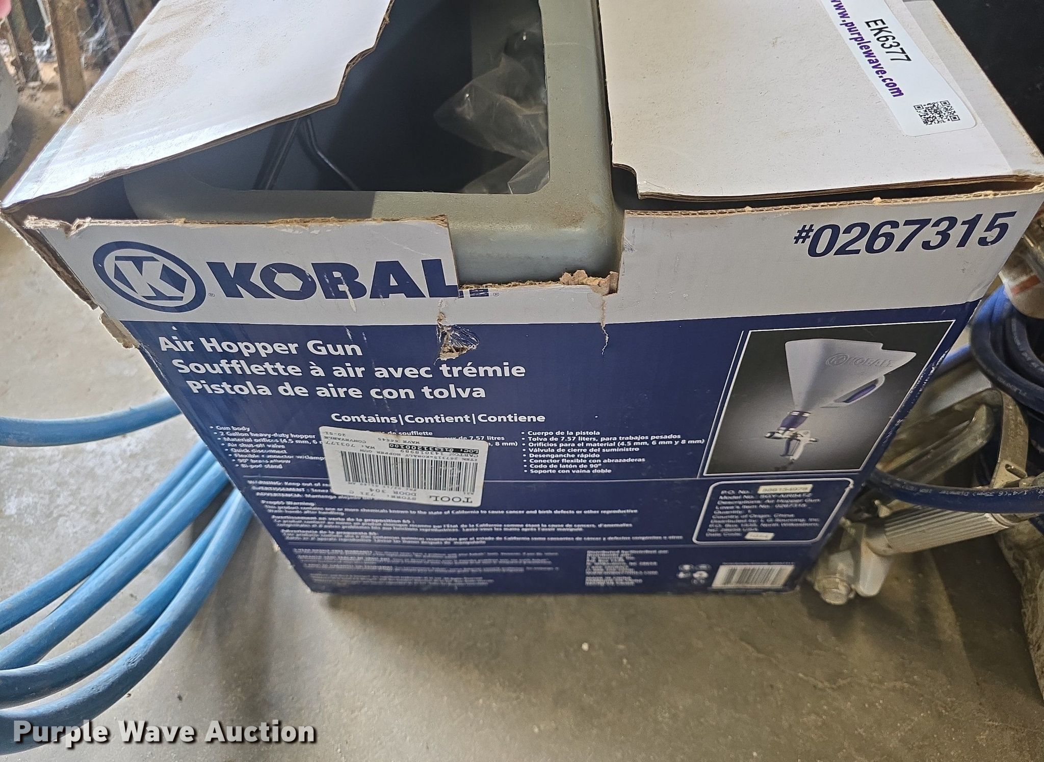 Purple Wave is selling a used Tools in Kansas. This item is a Tools with the following: Kobalt air hopper gun, Unused, Air hose, Nova 390PC paint sprayer, Gun and hose, Paslode nail gun, Non-operational