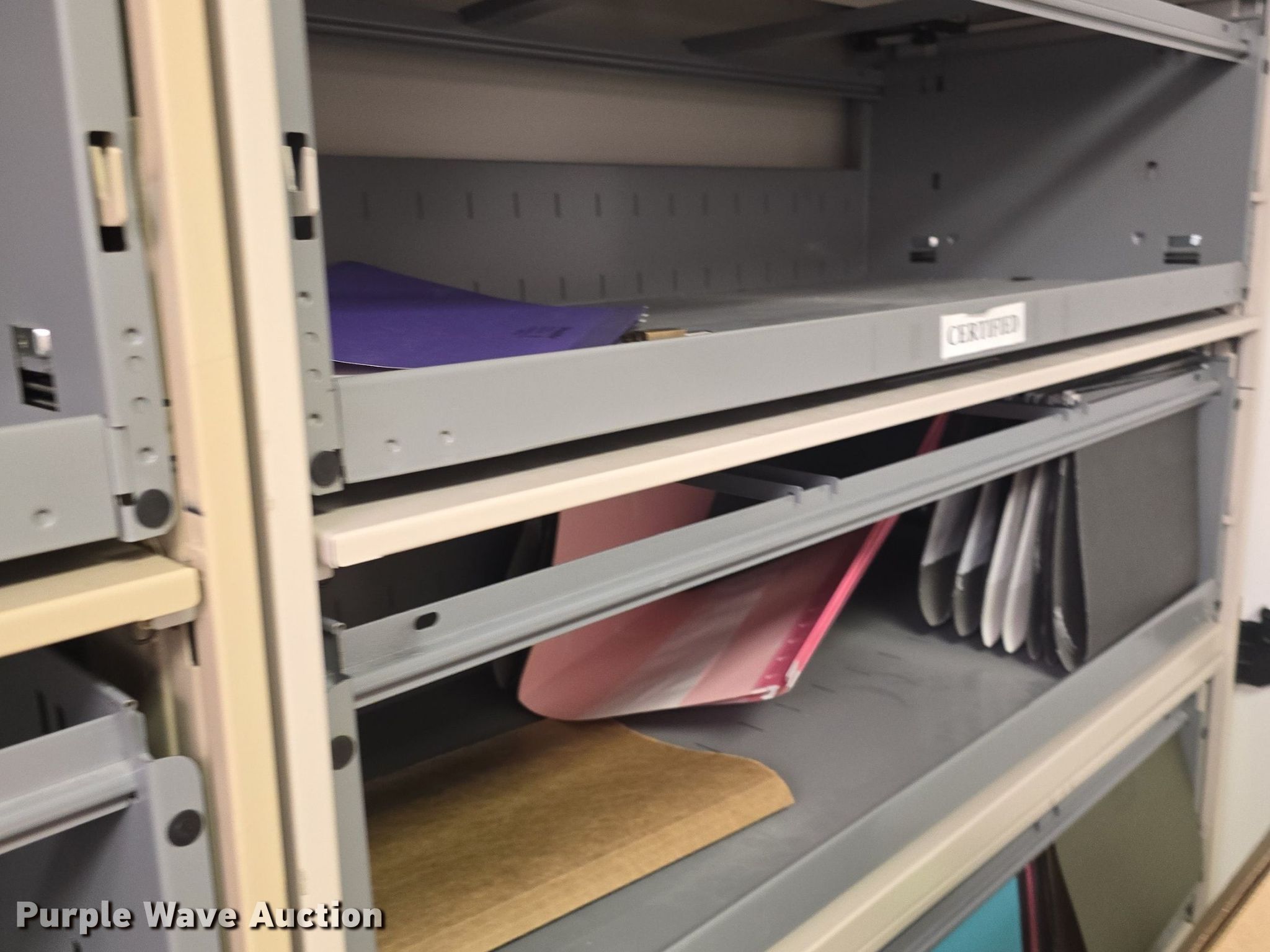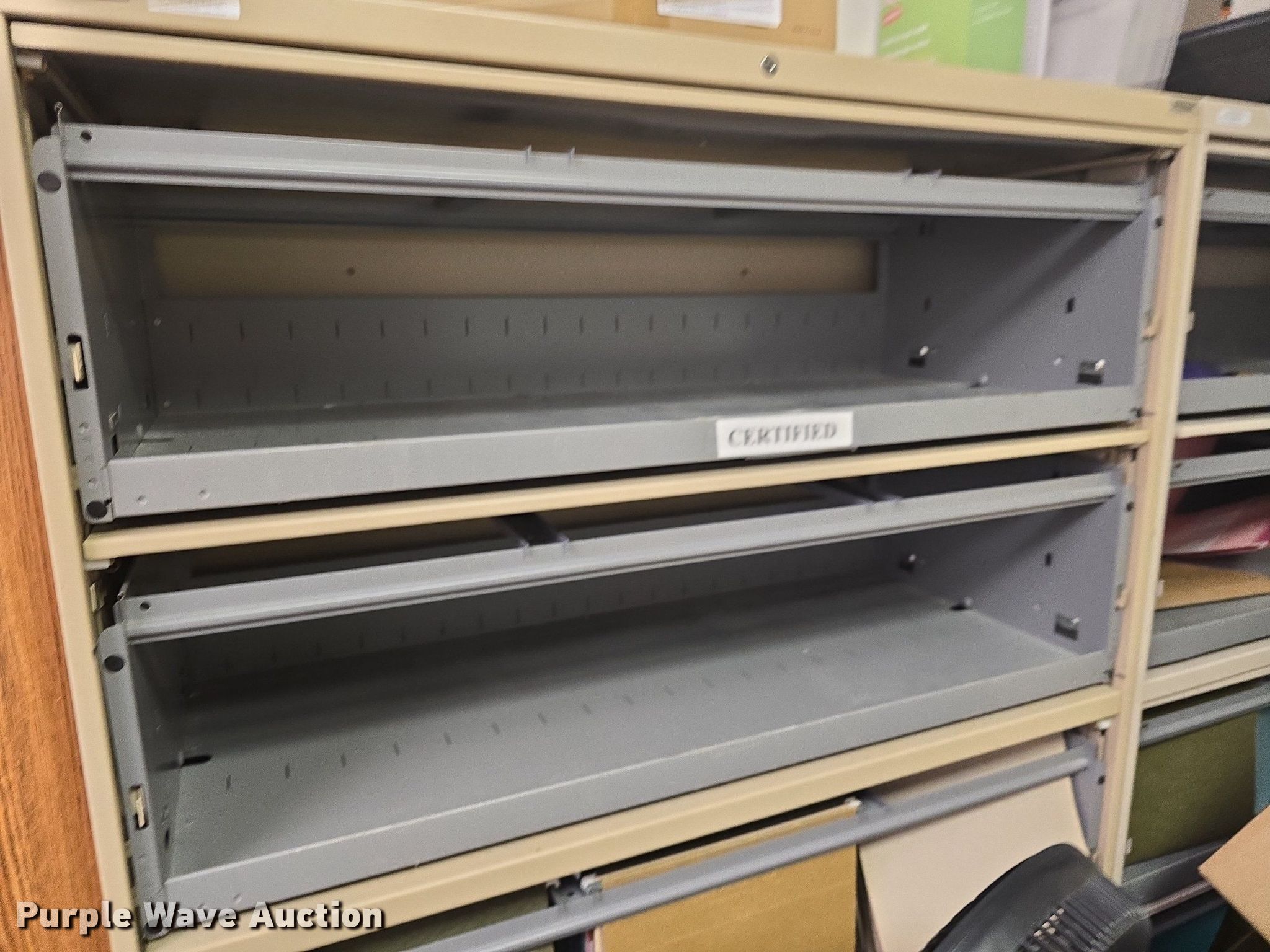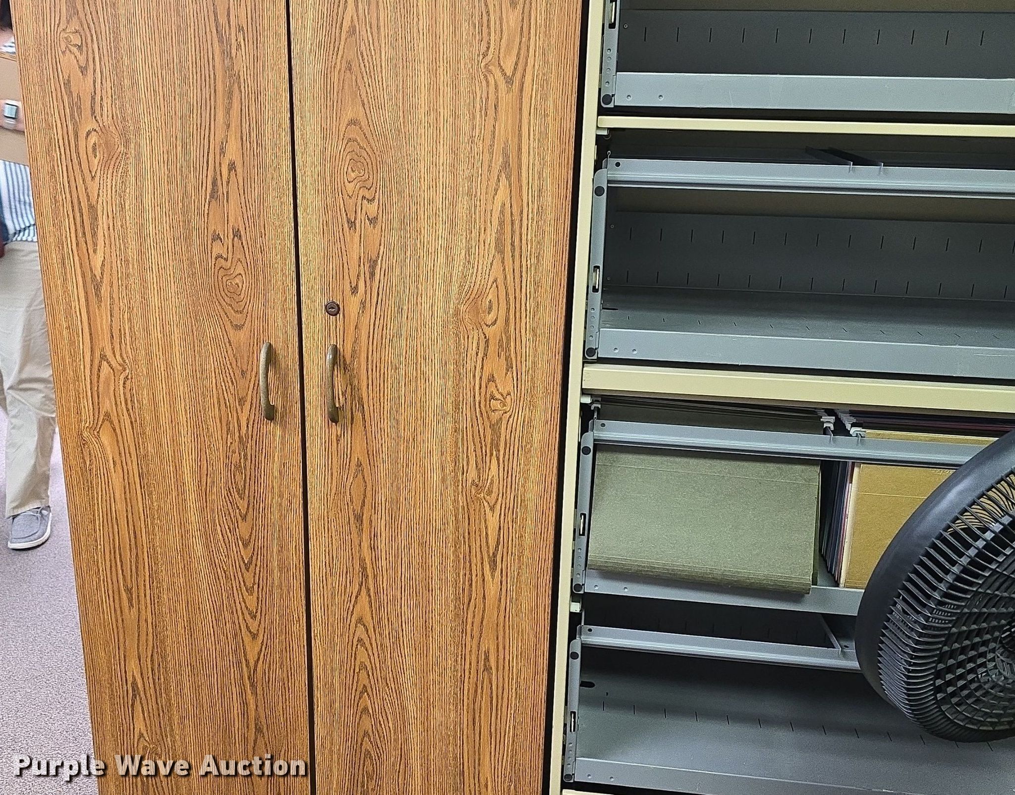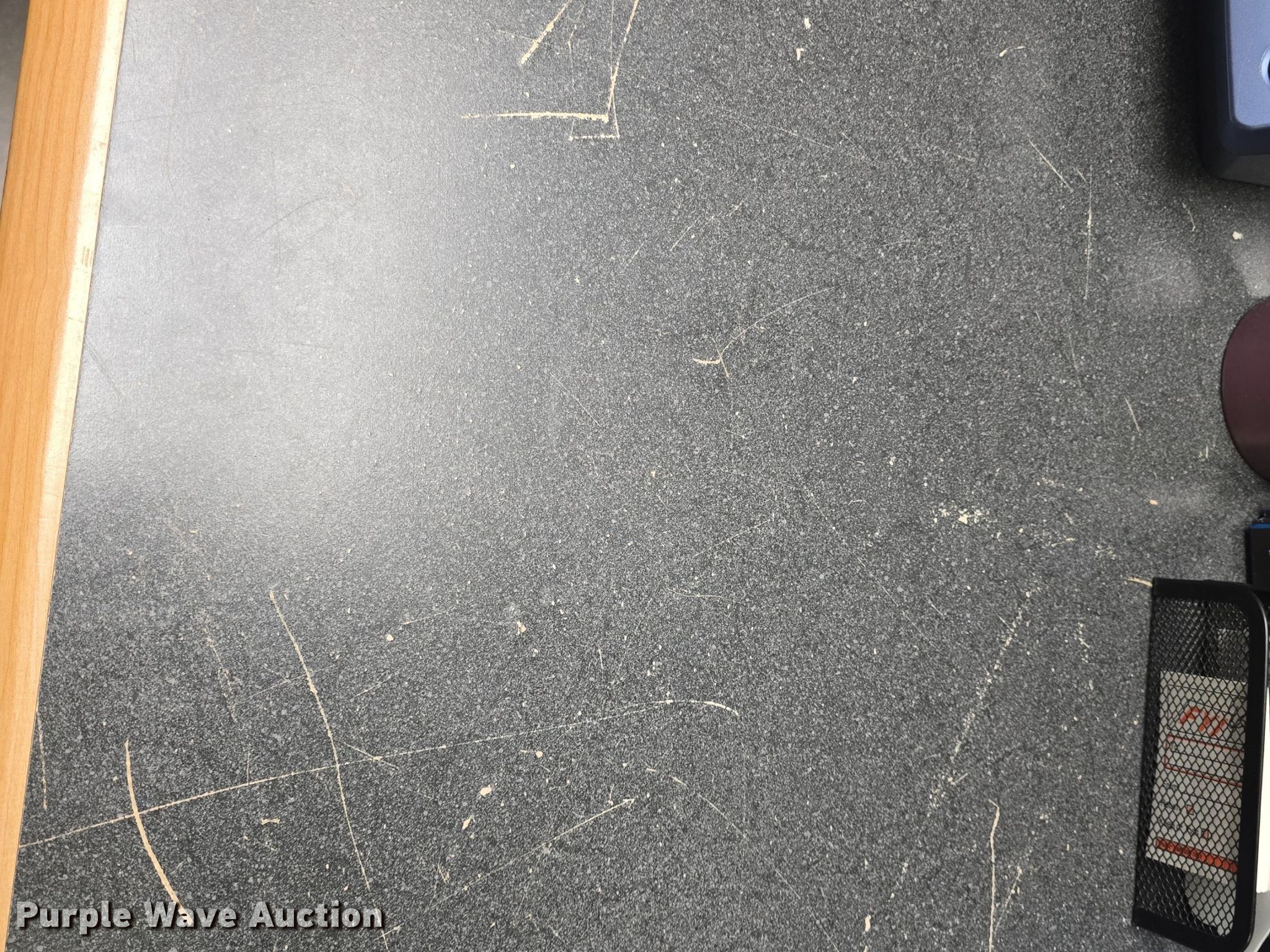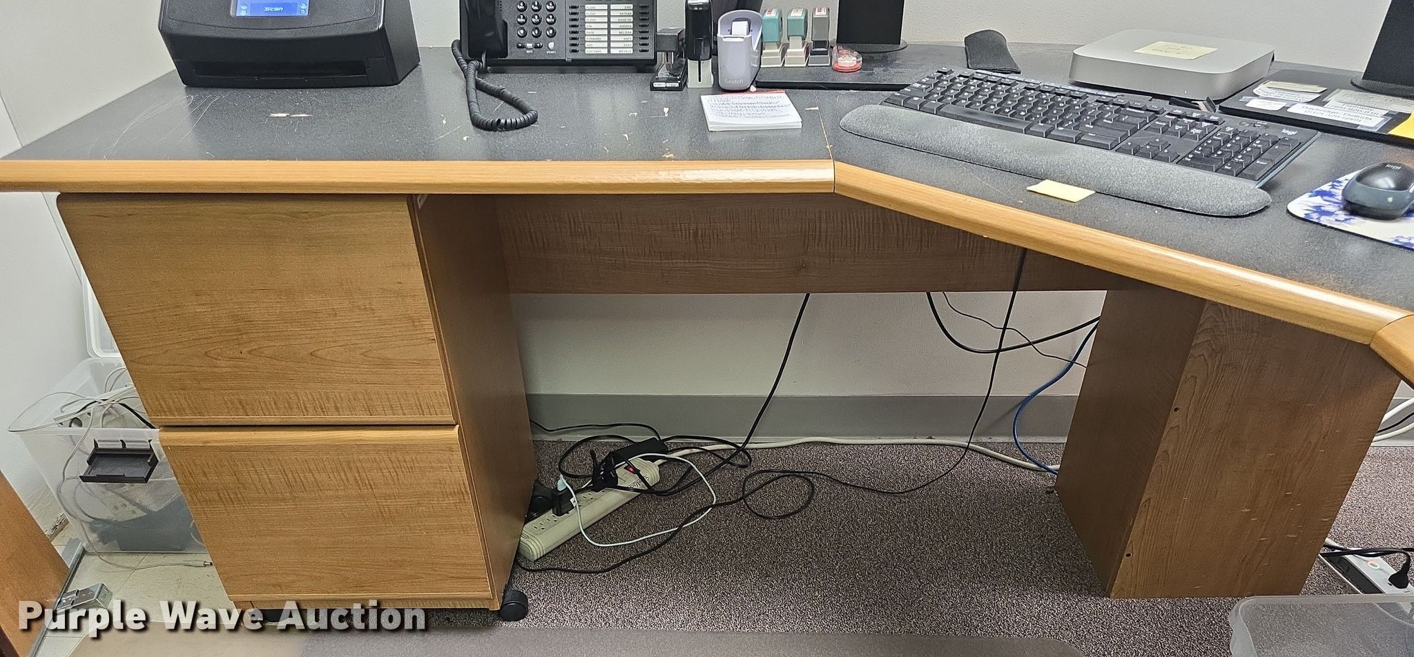 Purple Wave is selling a used Furniture in Kansas. This item is a Furniture with the following: Chairs: 1, Desks: 1, Filing cabinets: 4, Shelves: 1
