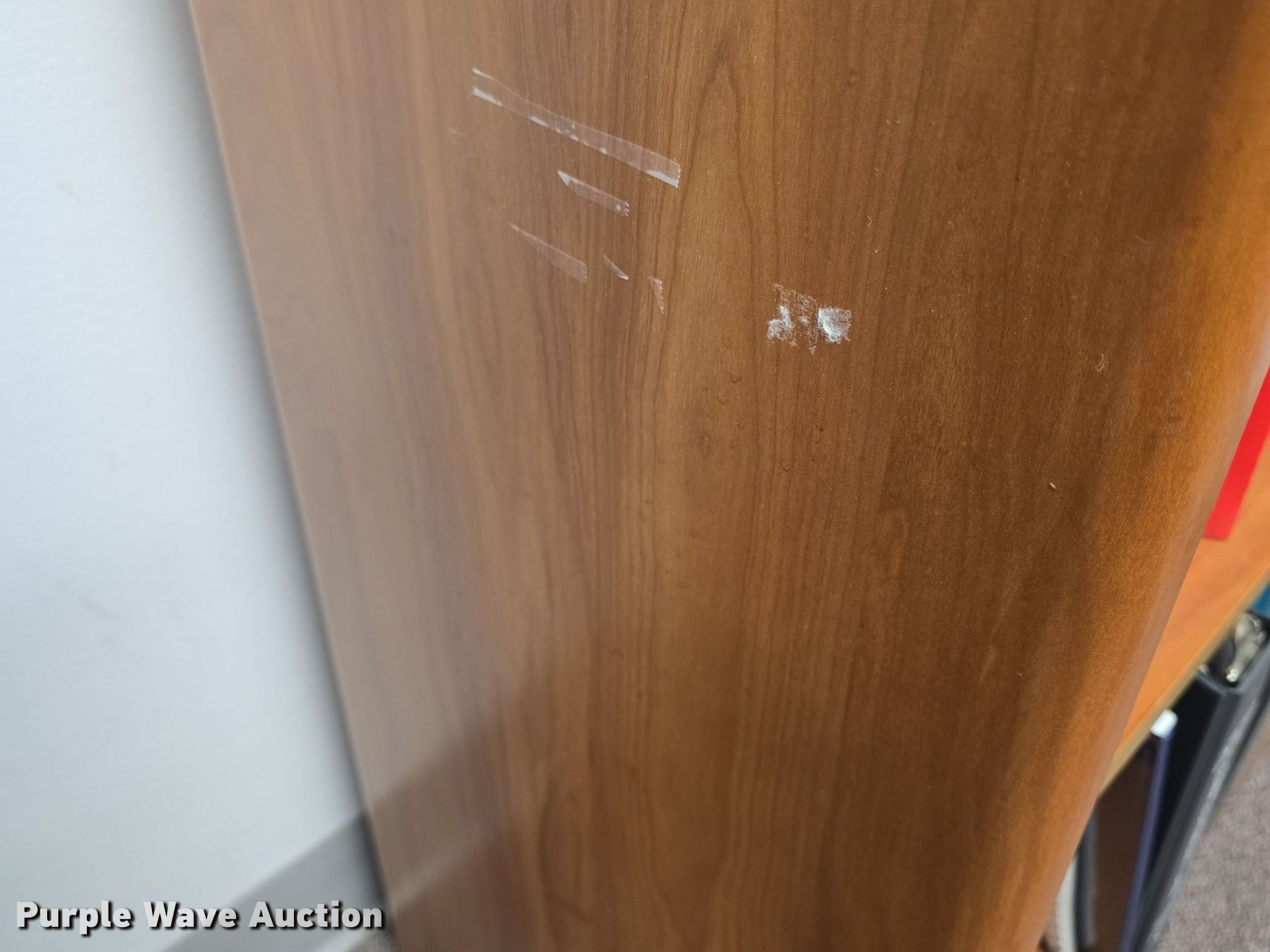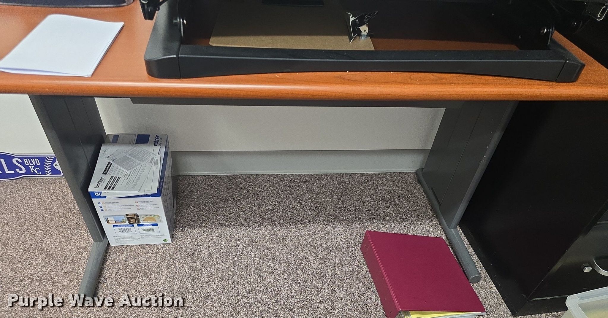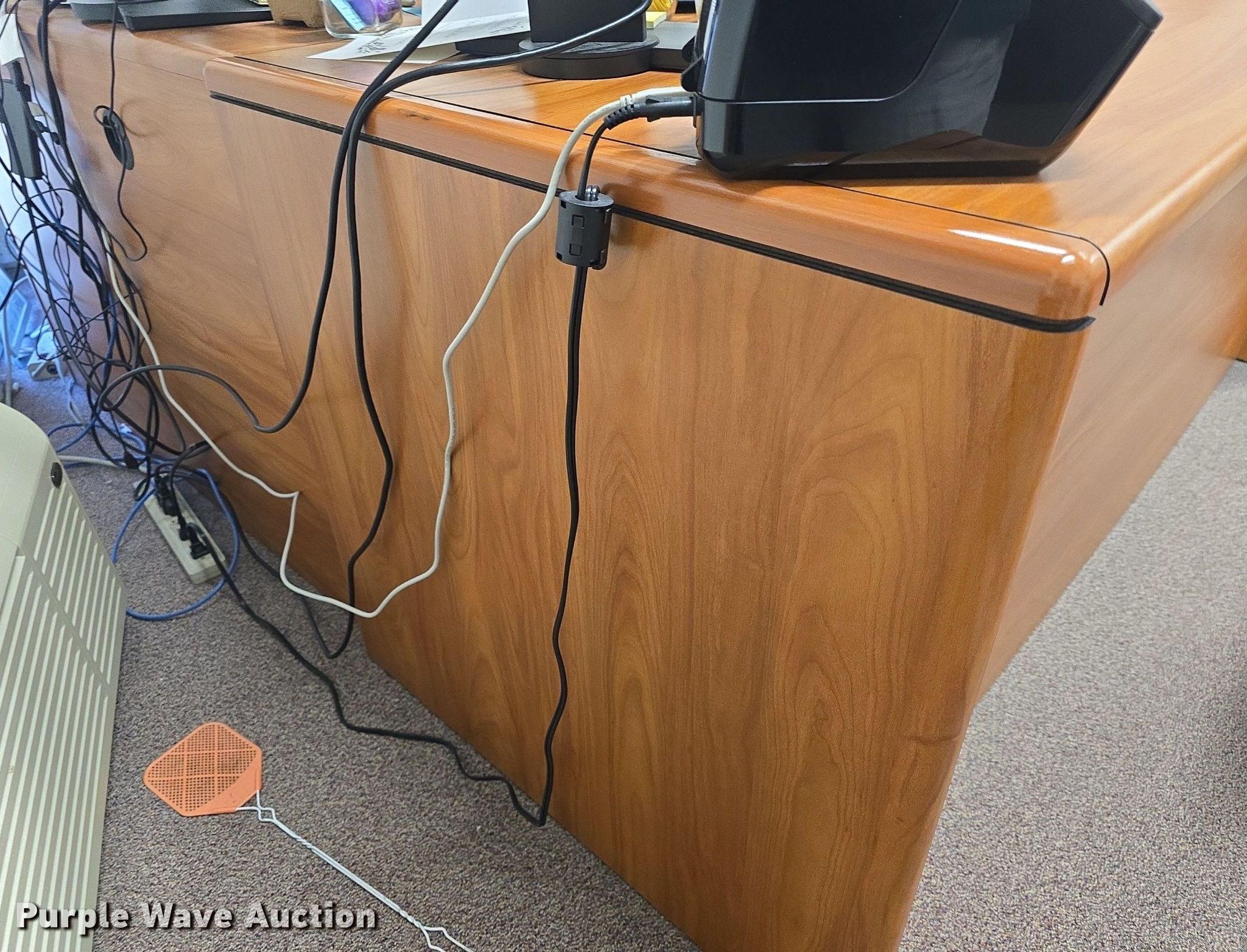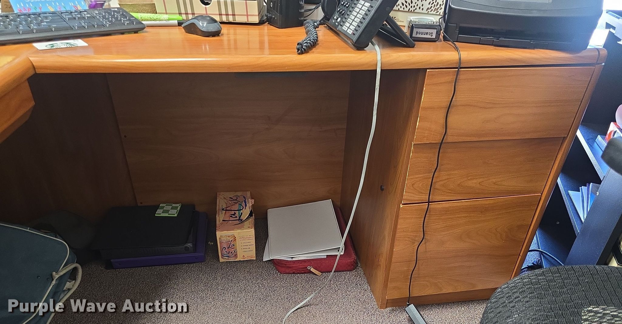 Purple Wave is selling a used Furniture in Kansas. This item is a Furniture with the following: Desks: 1, Filing cabinets: 1, Tables: 1, Shelf: 1