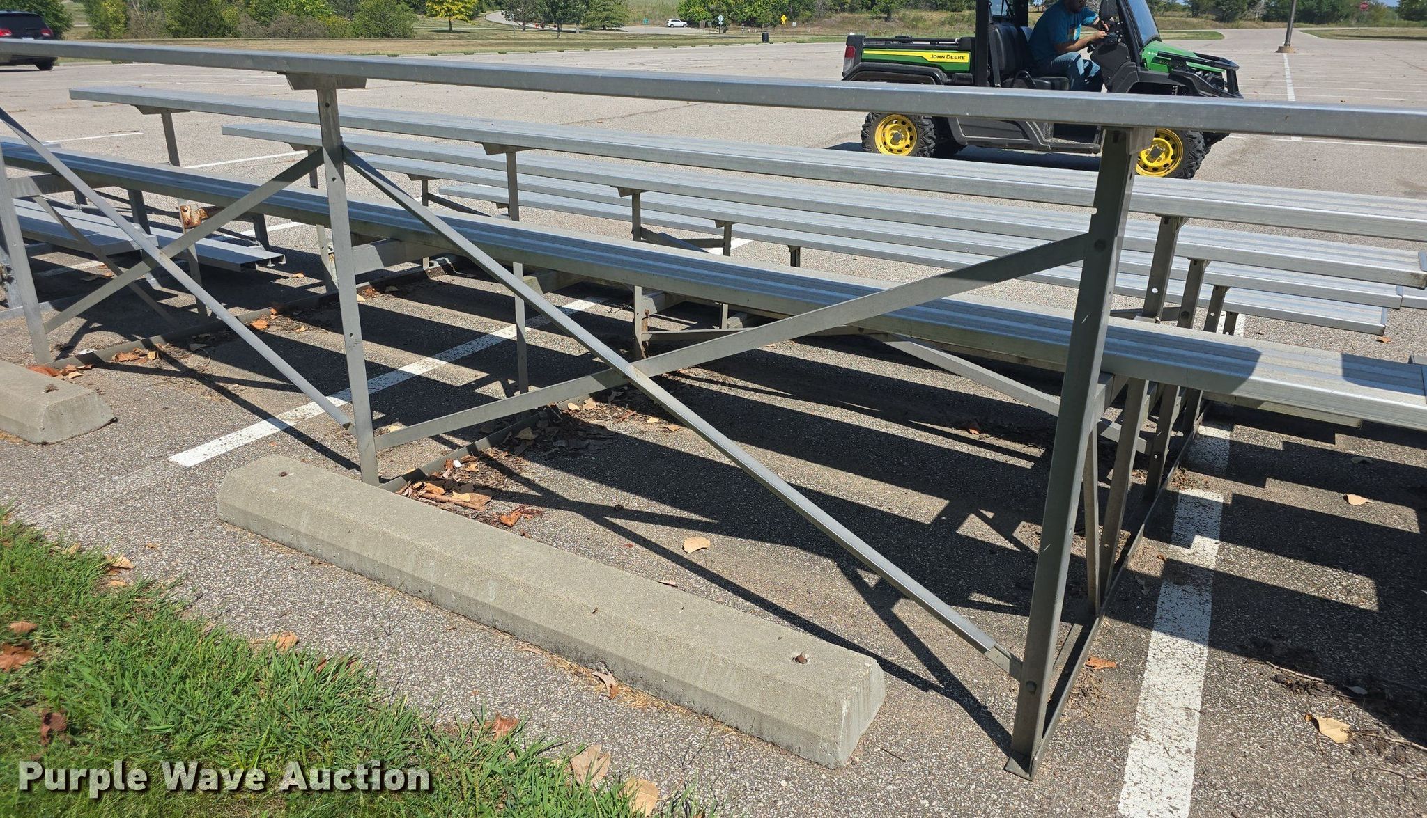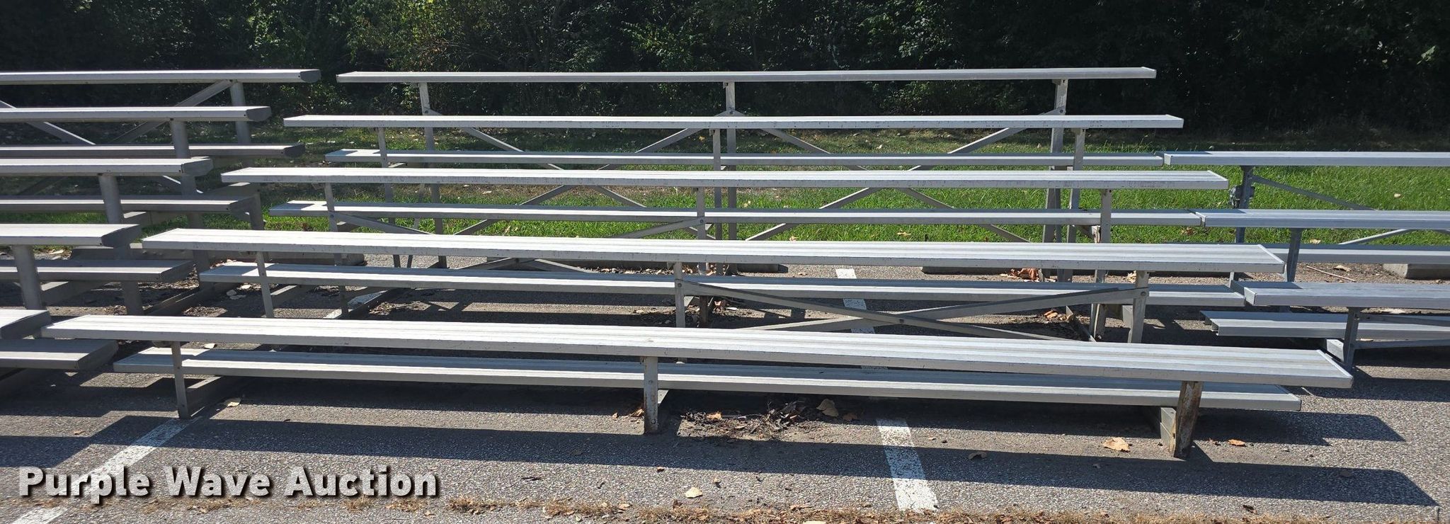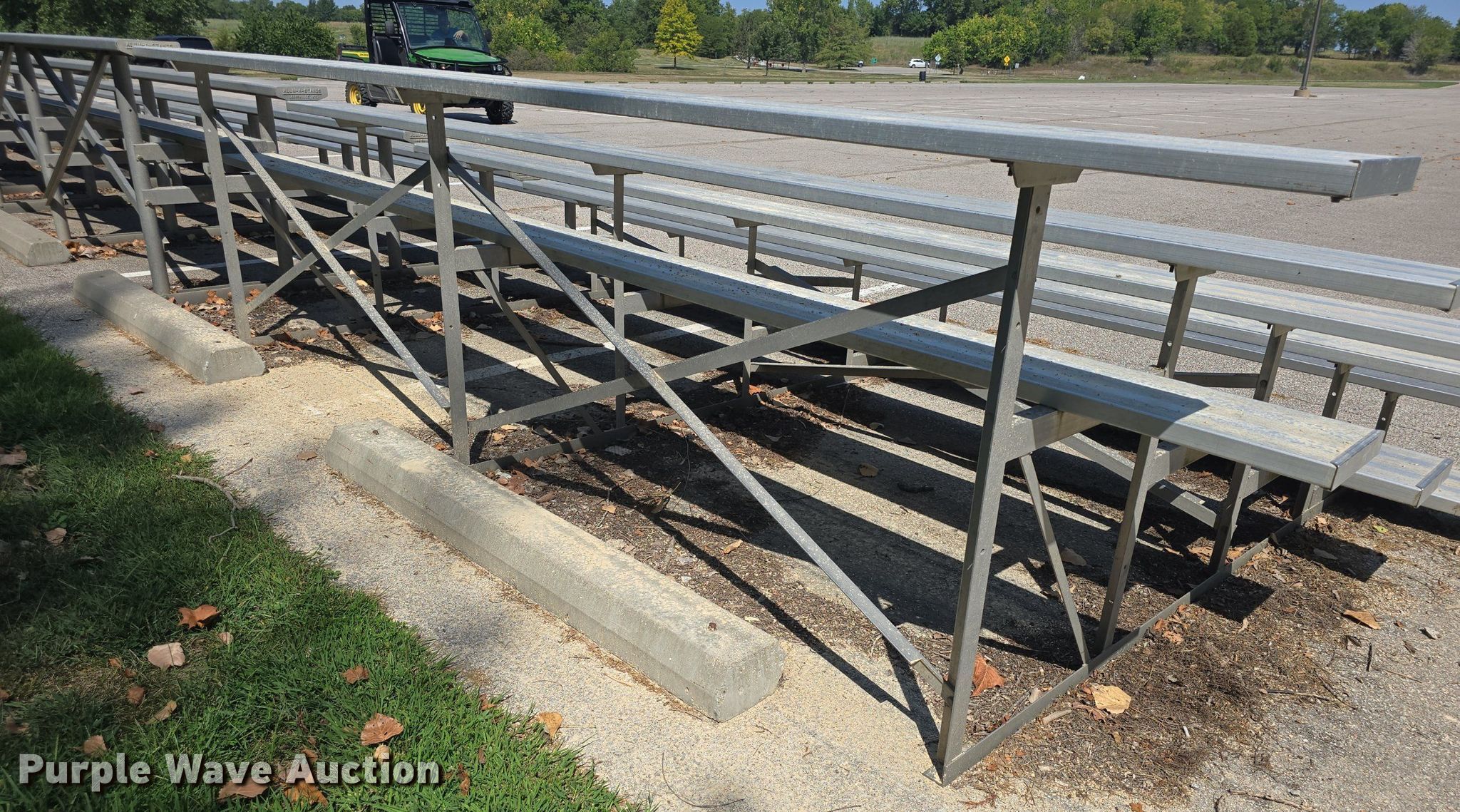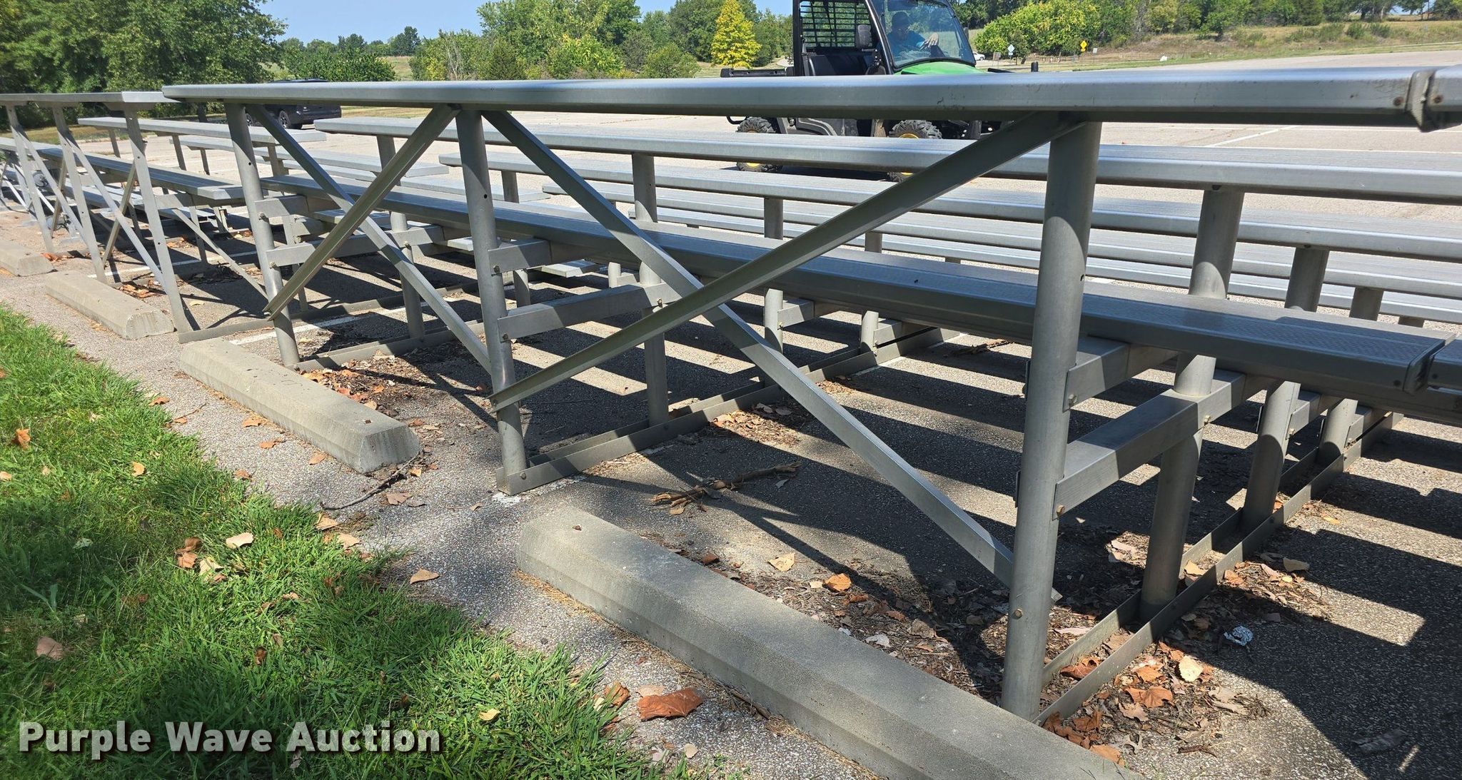 (7) sections of aluminum bleachers. (3) 15' x 5' x 31" (3) row seats, (4) 15' x 9' x 4' (5) row seats. Johnson County Park and Recreation District. Olathe, KS 66062