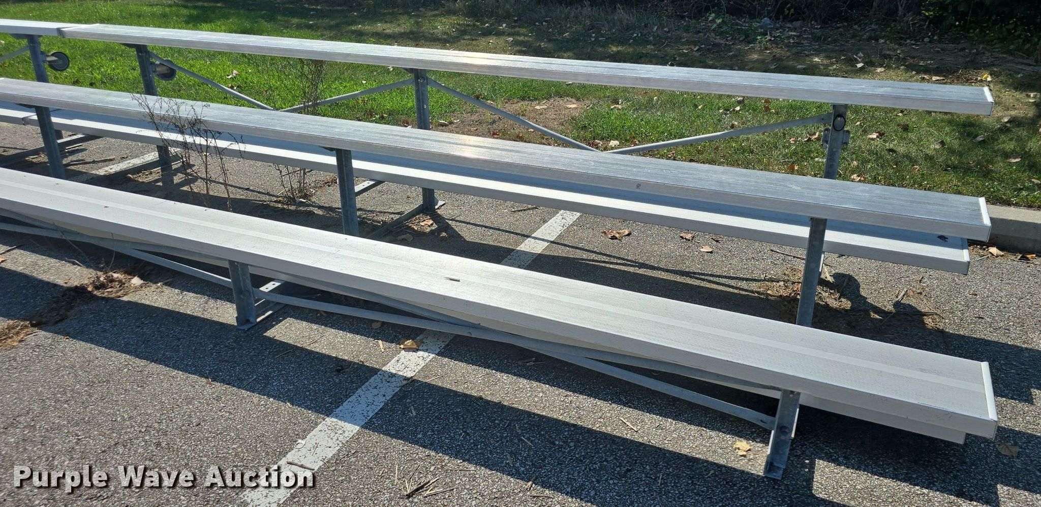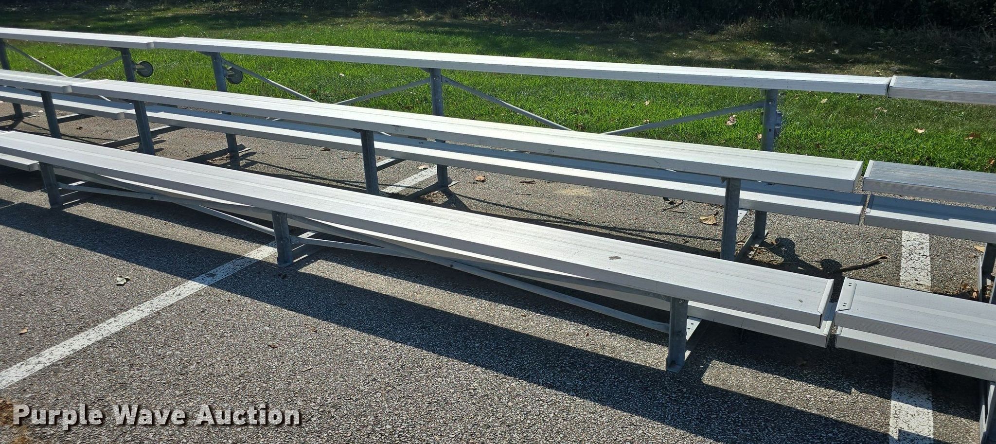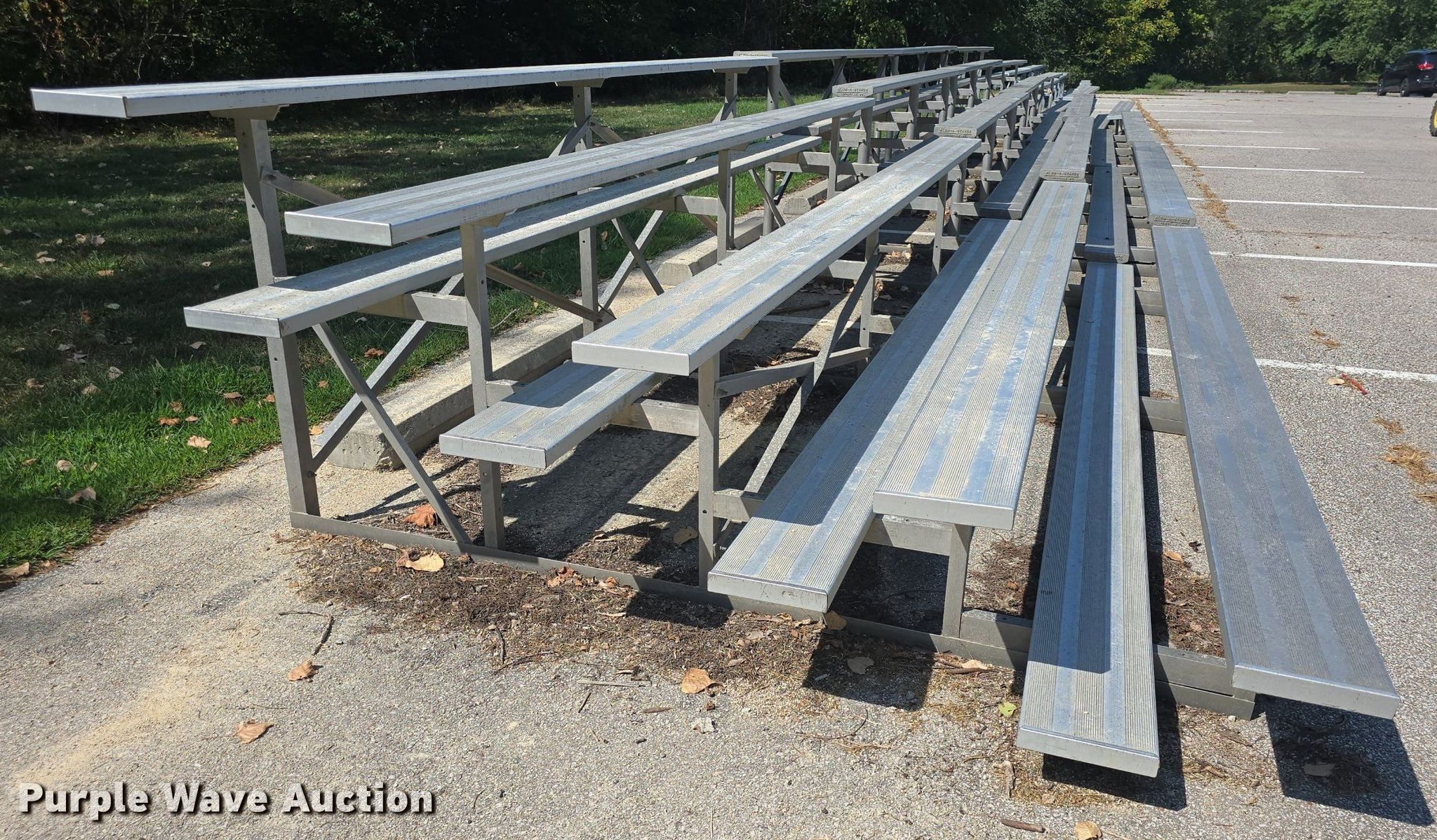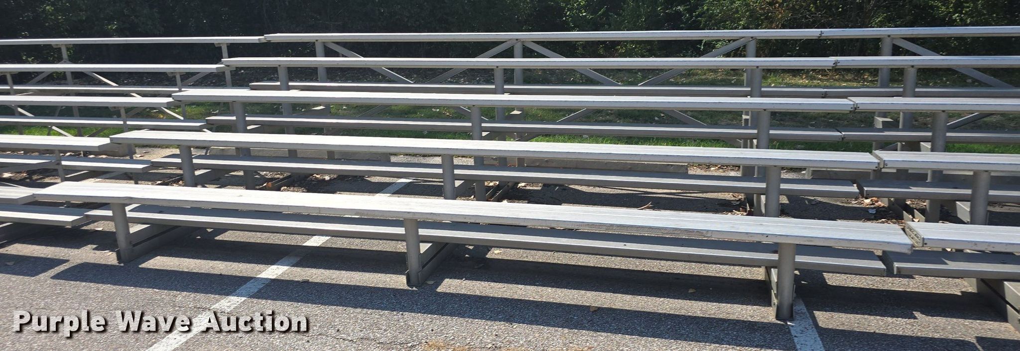 (7) sections of aluminum bleachers. (3) 15' x 5' x 31" (3) row seats, (4) 15' x 9' x 4' (5) row seats. Johnson County Park and Recreation District. Olathe, KS 66062