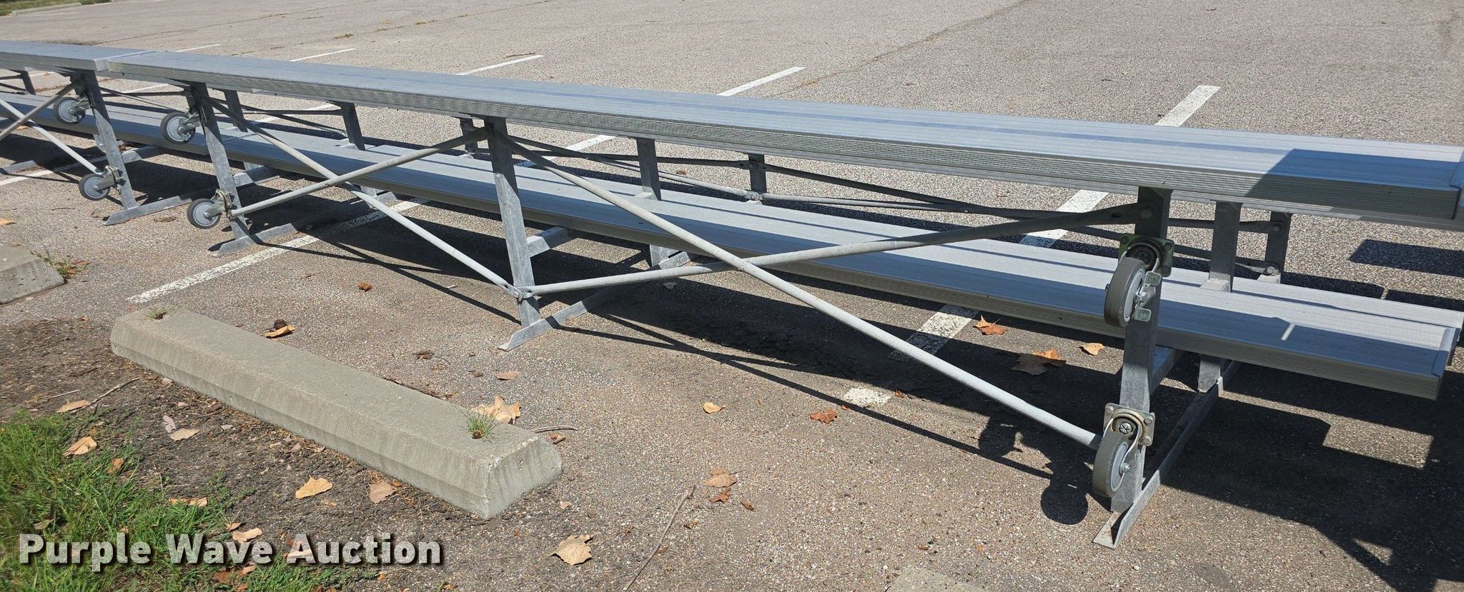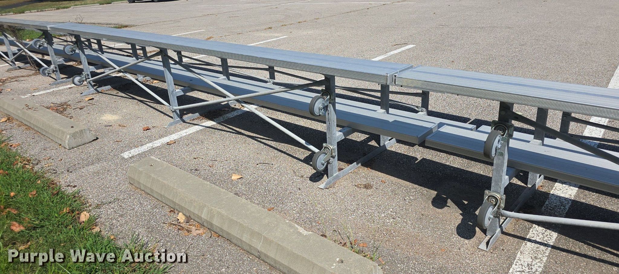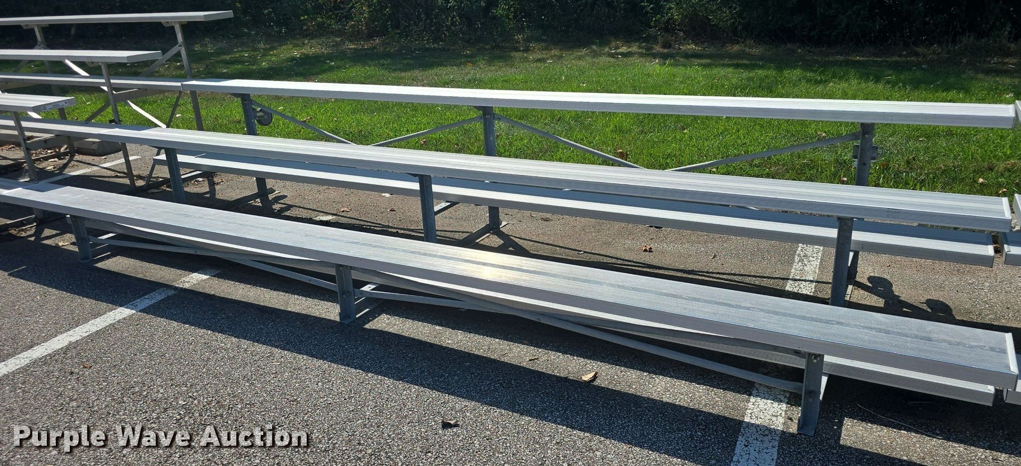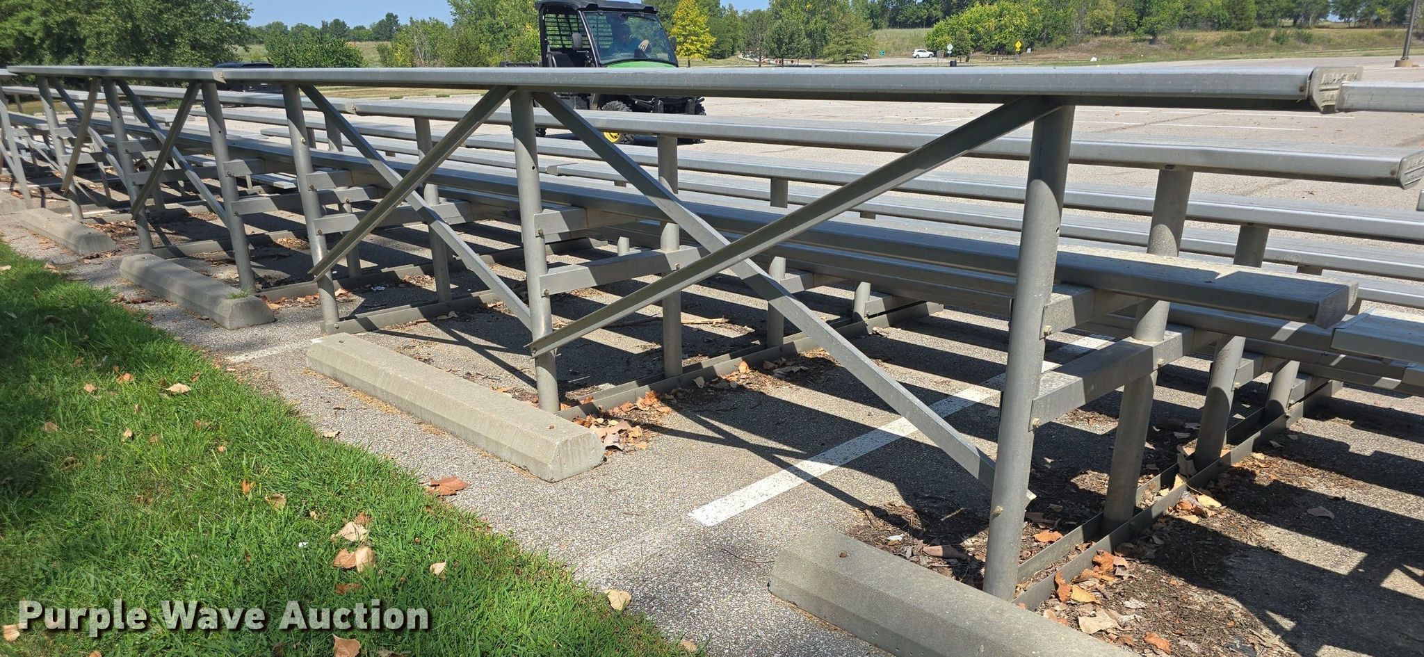 (7) sections of aluminum bleachers. (3) 15' x 5' x 31" (3) row seats, (4) 15' x 9' x 4' (5) row seats. Johnson County Park and Recreation District. Olathe, KS 66062