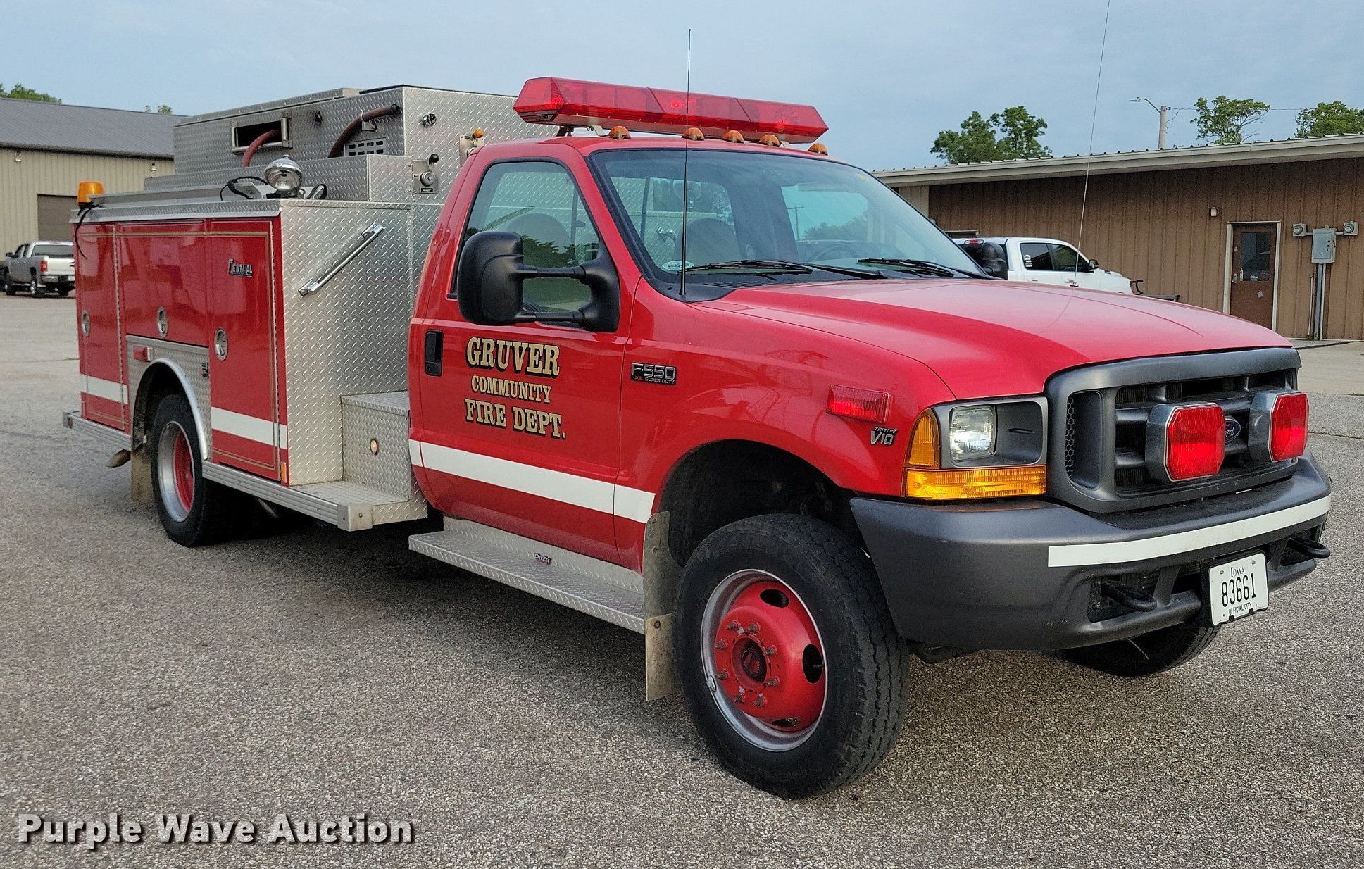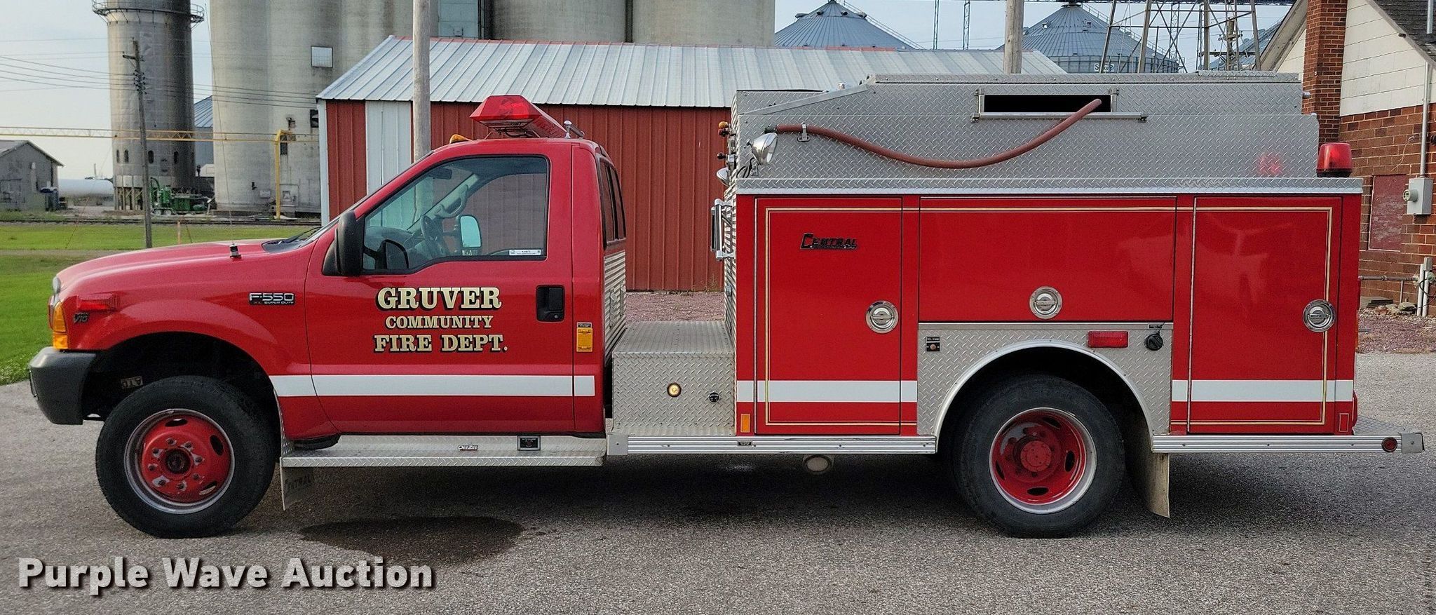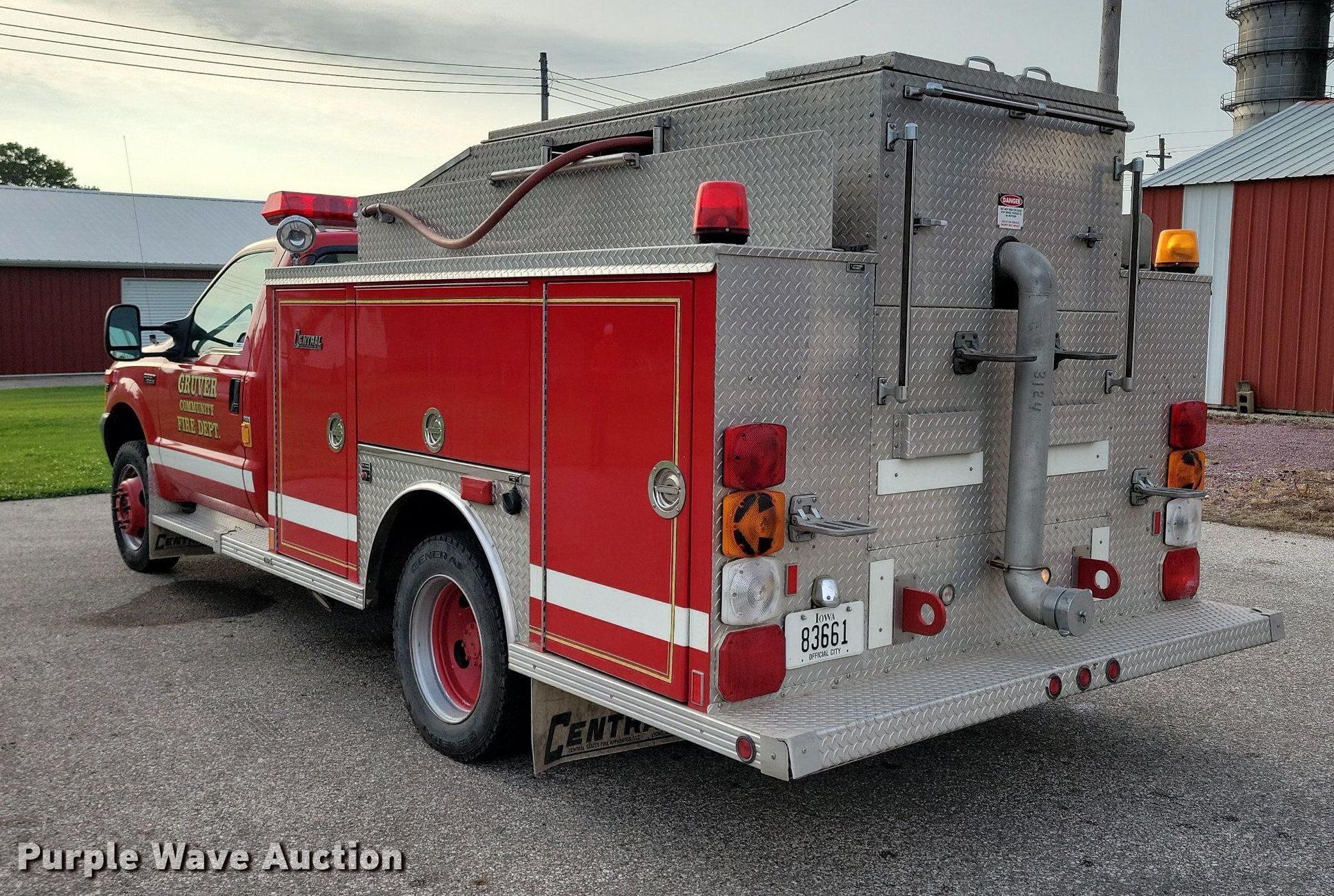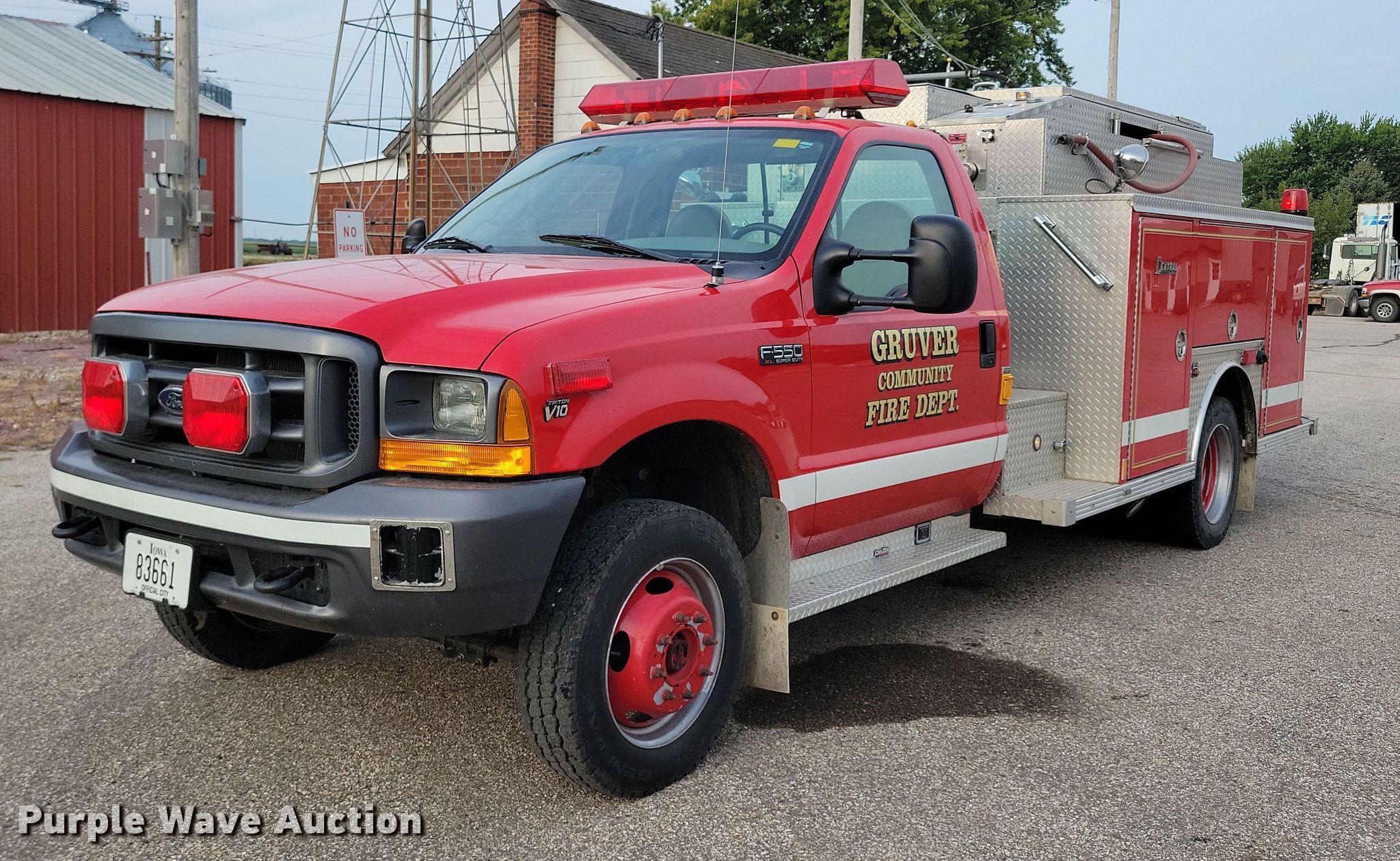 Purple Wave is selling a used Fire Truck or Emergency Vehicle in Iowa. This item is a 2000 Ford F550 Super Duty XL brush fire truck with the following: Miles: 6,824 on odometer, VIN: 1FDAF57S7YED09885