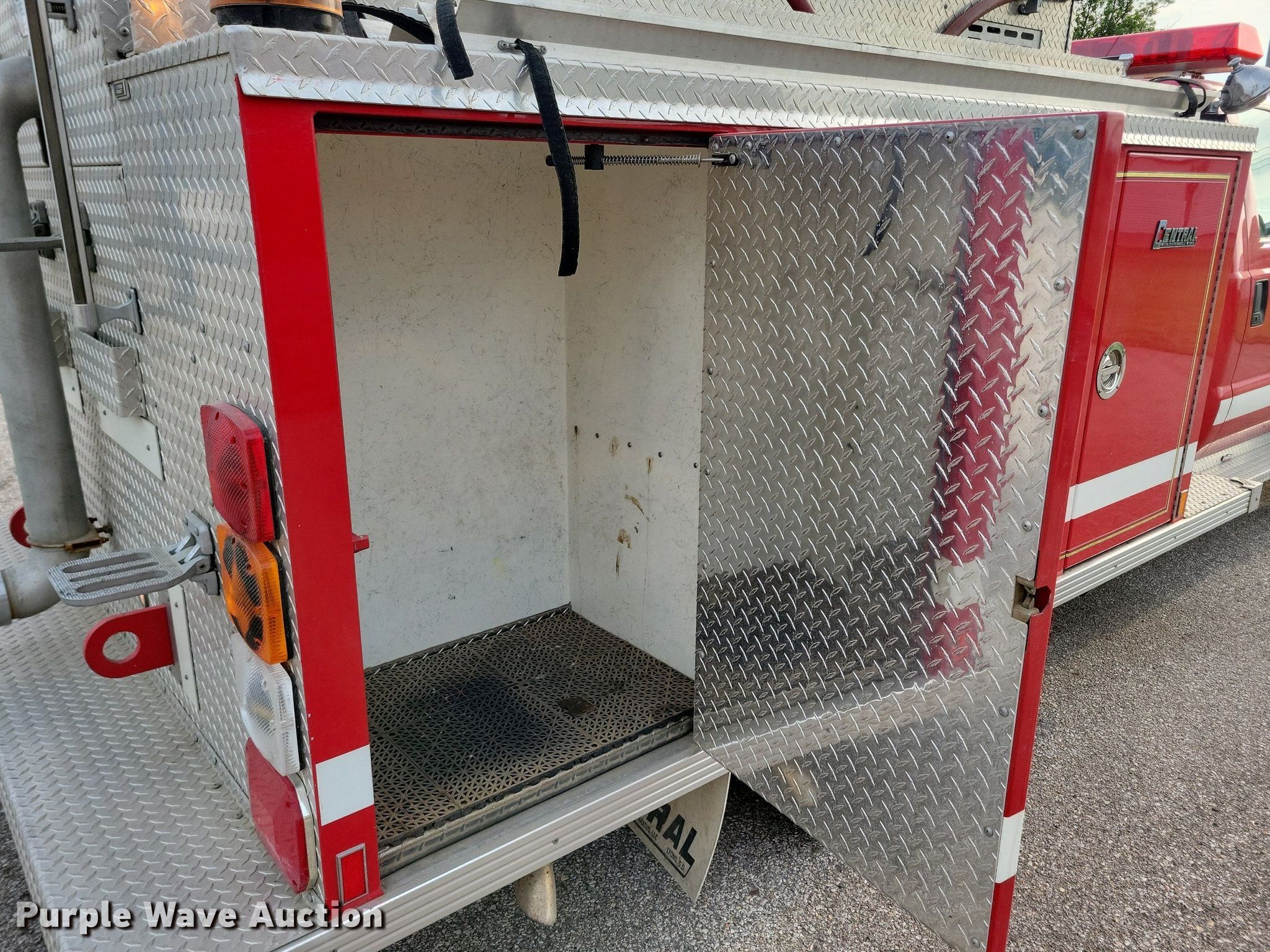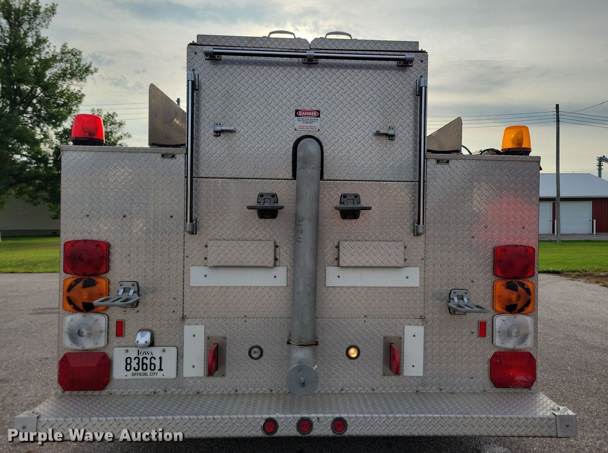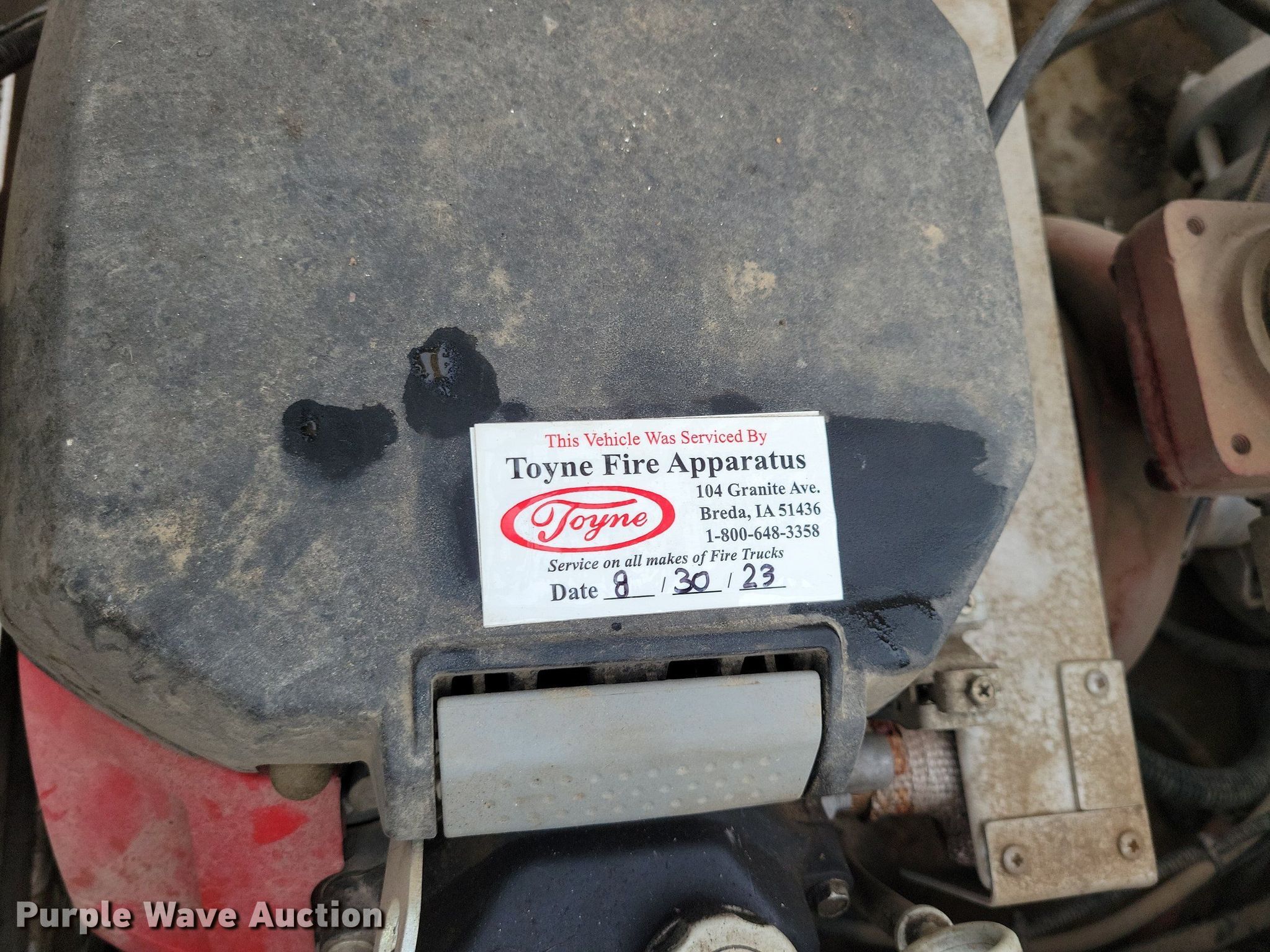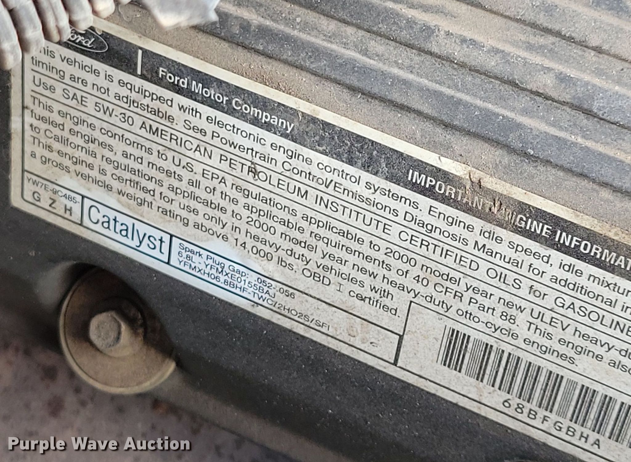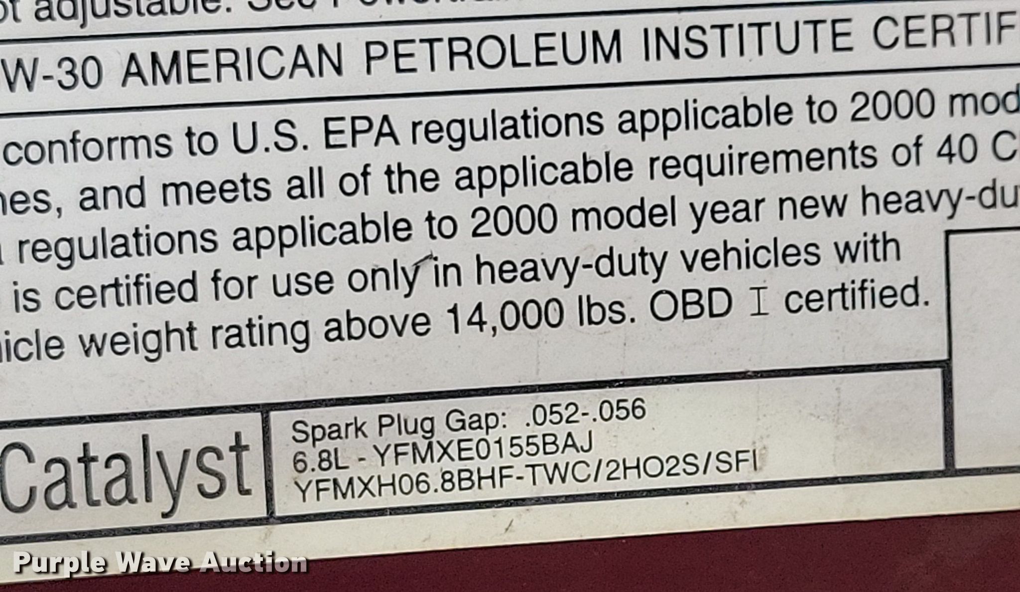 2000 Ford F550 Super Duty XL brush fire truck. Miles: 6,824 on odometer, VIN: 1FDAF57S7YED09885. Engine Displacement: 6.8L, Cylinders: 10, Fuel type: Gas. Transmission Automatic. Chassis Four wheel drive, Axles: Single, Suspension: Spring, Brakes: Hydraulic, GVWR: 17,500 lbs, Wheelbase: 165". Interior Heat. Features Fire truck body Central, Tank Capacity: 500 gallons, Pump 250 gpm, Honda GX660 engine Displacement: 688cc, Fuel type: Gas, PA/ siren controls. Tires Size: 225/70R19.5. Iowa title. Seller is a government entity who will be assigning and distributing the title. Please contact the seller for distribution questions. City of Gruver. Gruver, IA 51334