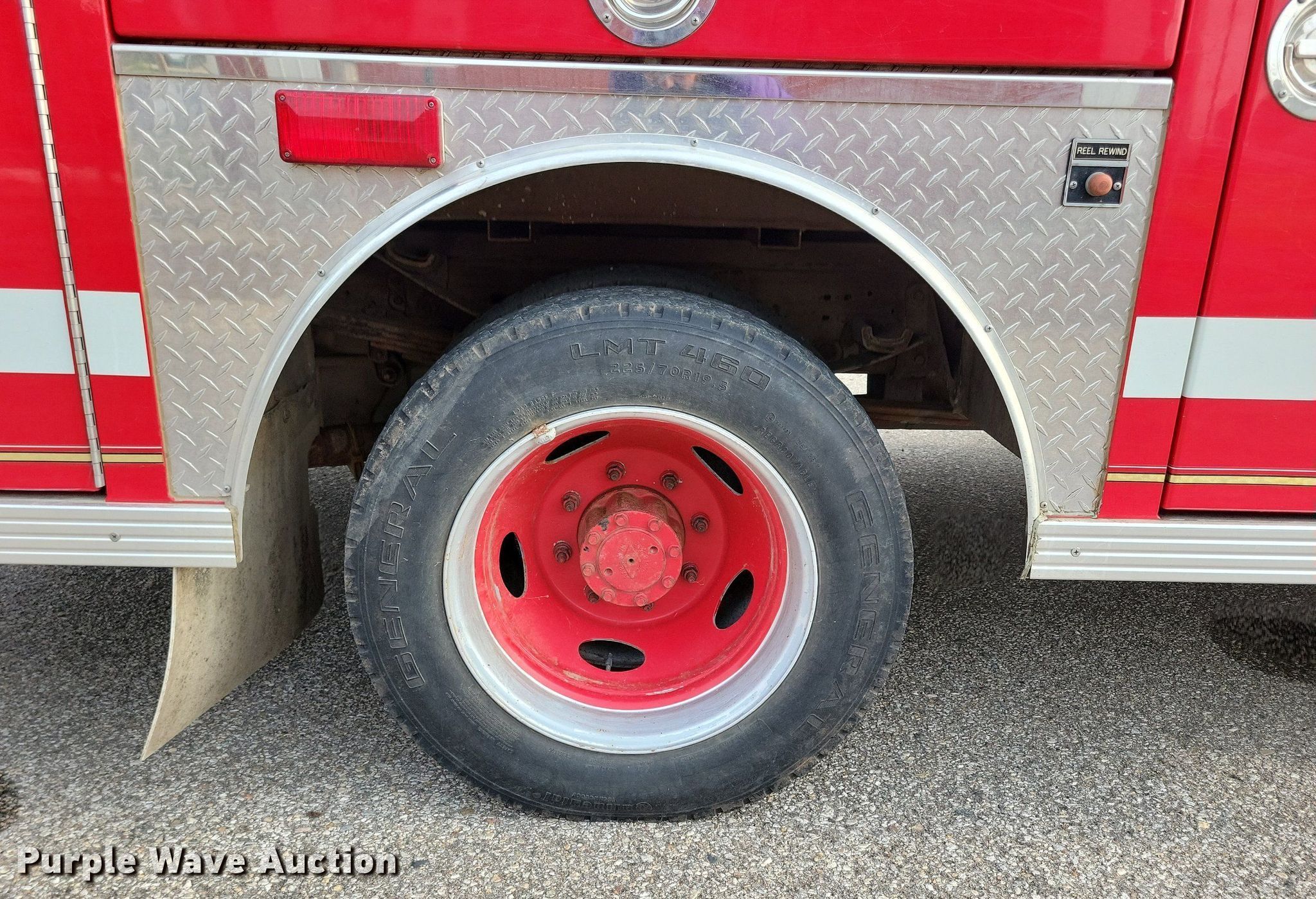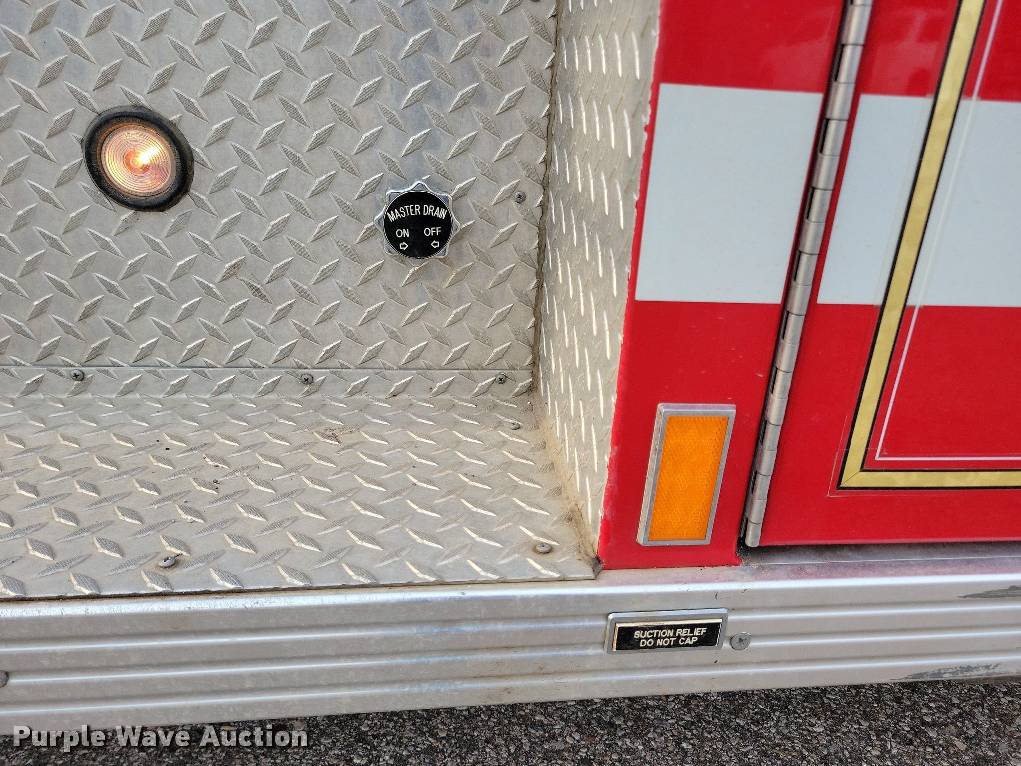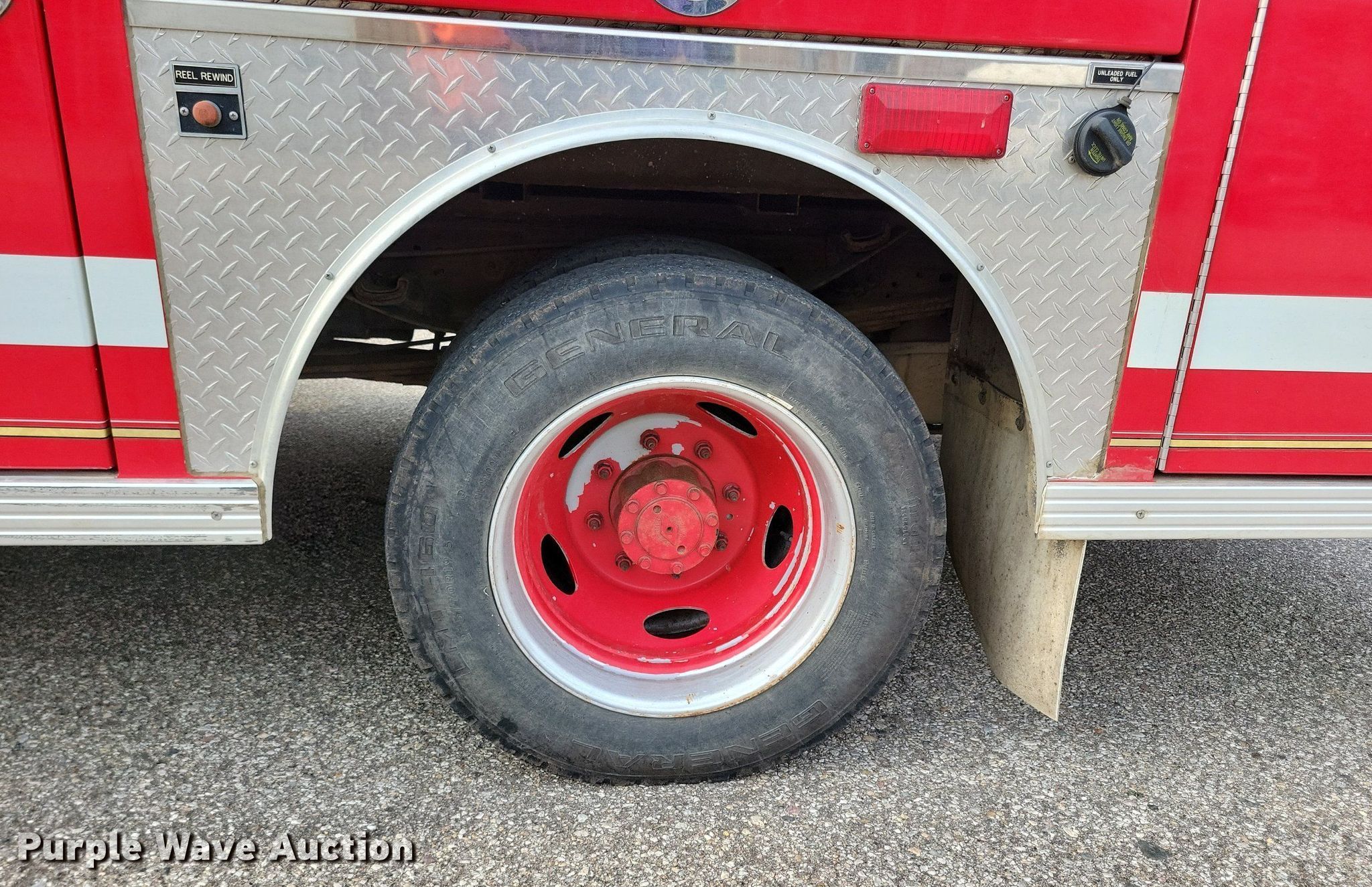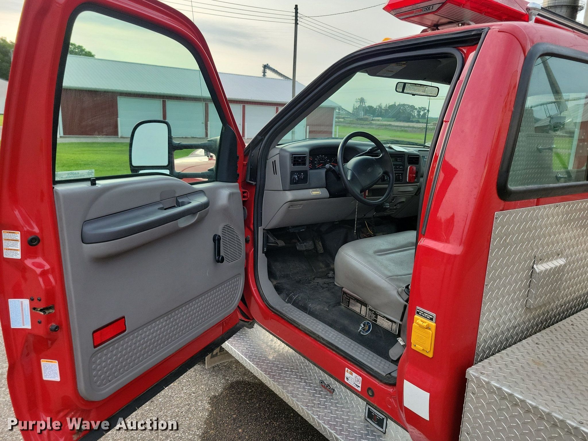 2000 Ford F550 Super Duty XL brush fire truck. Miles: 6,824 on odometer, VIN: 1FDAF57S7YED09885. Engine Displacement: 6.8L, Cylinders: 10, Fuel type: Gas. Transmission Automatic. Chassis Four wheel drive, Axles: Single, Suspension: Spring, Brakes: Hydraulic, GVWR: 17,500 lbs, Wheelbase: 165". Interior Heat. Features Fire truck body Central, Tank Capacity: 500 gallons, Pump 250 gpm, Honda GX660 engine Displacement: 688cc, Fuel type: Gas, PA/ siren controls. Tires Size: 225/70R19.5. Iowa title. Seller is a government entity who will be assigning and distributing the title. Please contact the seller for distribution questions. City of Gruver. Gruver, IA 51334