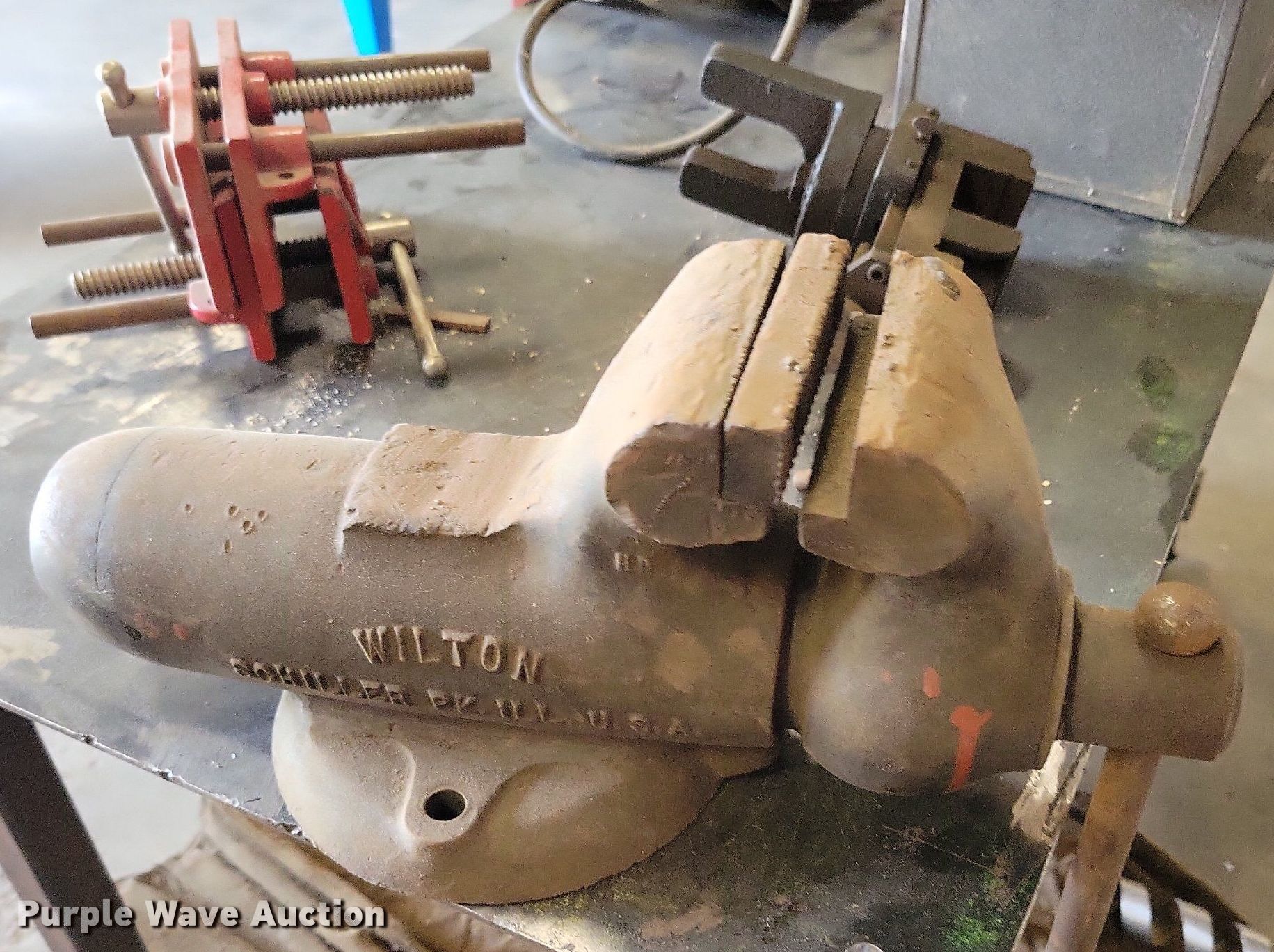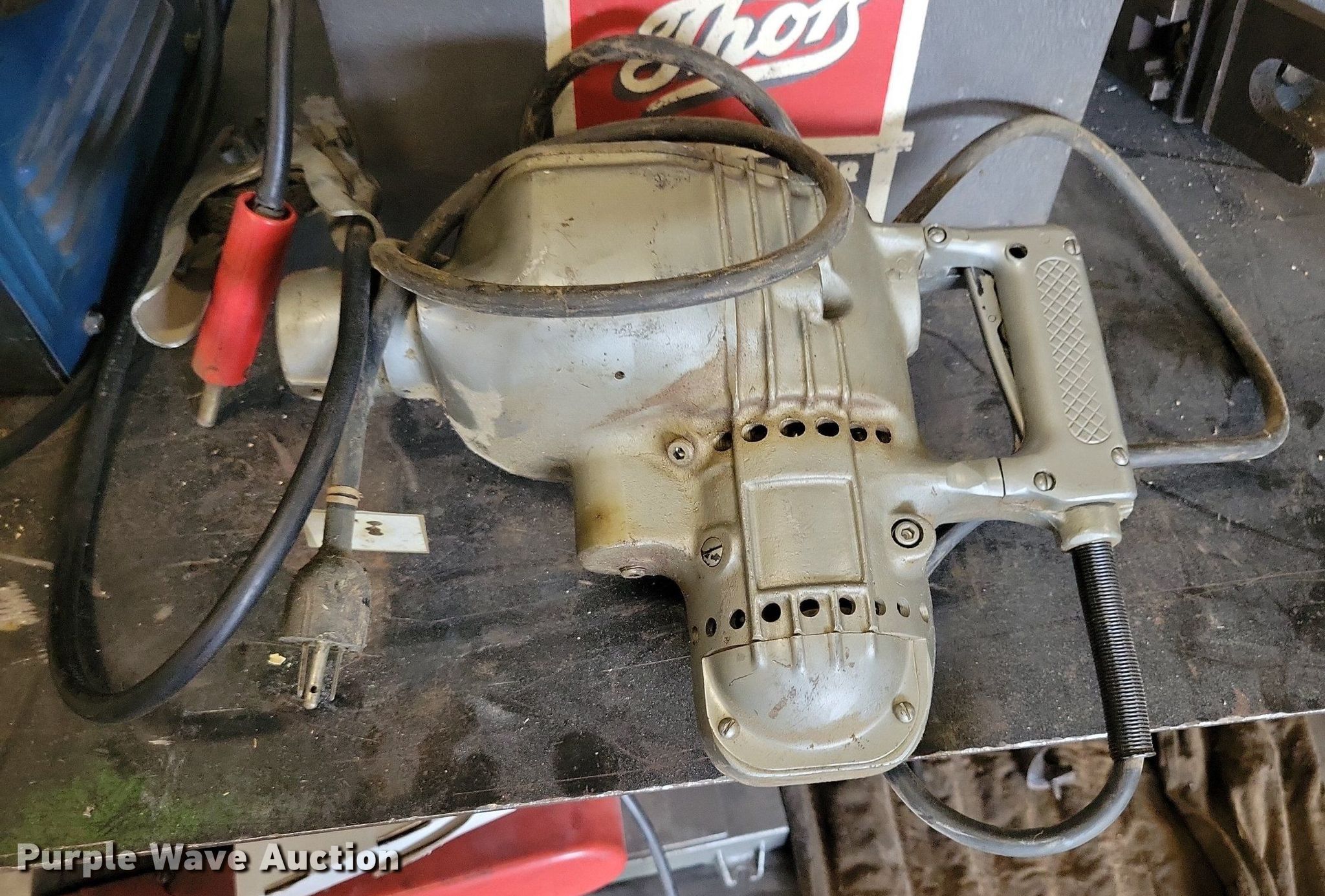 Purple Wave is selling a used Tools in South Dakota. This item is a Tools with the following: Miller Thunderbolt welder, Internal stripped rod, Capabilities: AC, Arc, Leads included, Unknown operating condition, Thor hammer drill, (3) clamps and vises, Rigid cutoff saw, Serial: F781, 10" Exter blade, Baldor electric motor, Volts: 230/460, Phase: Three, HP: 3,, (8) wood drill bits