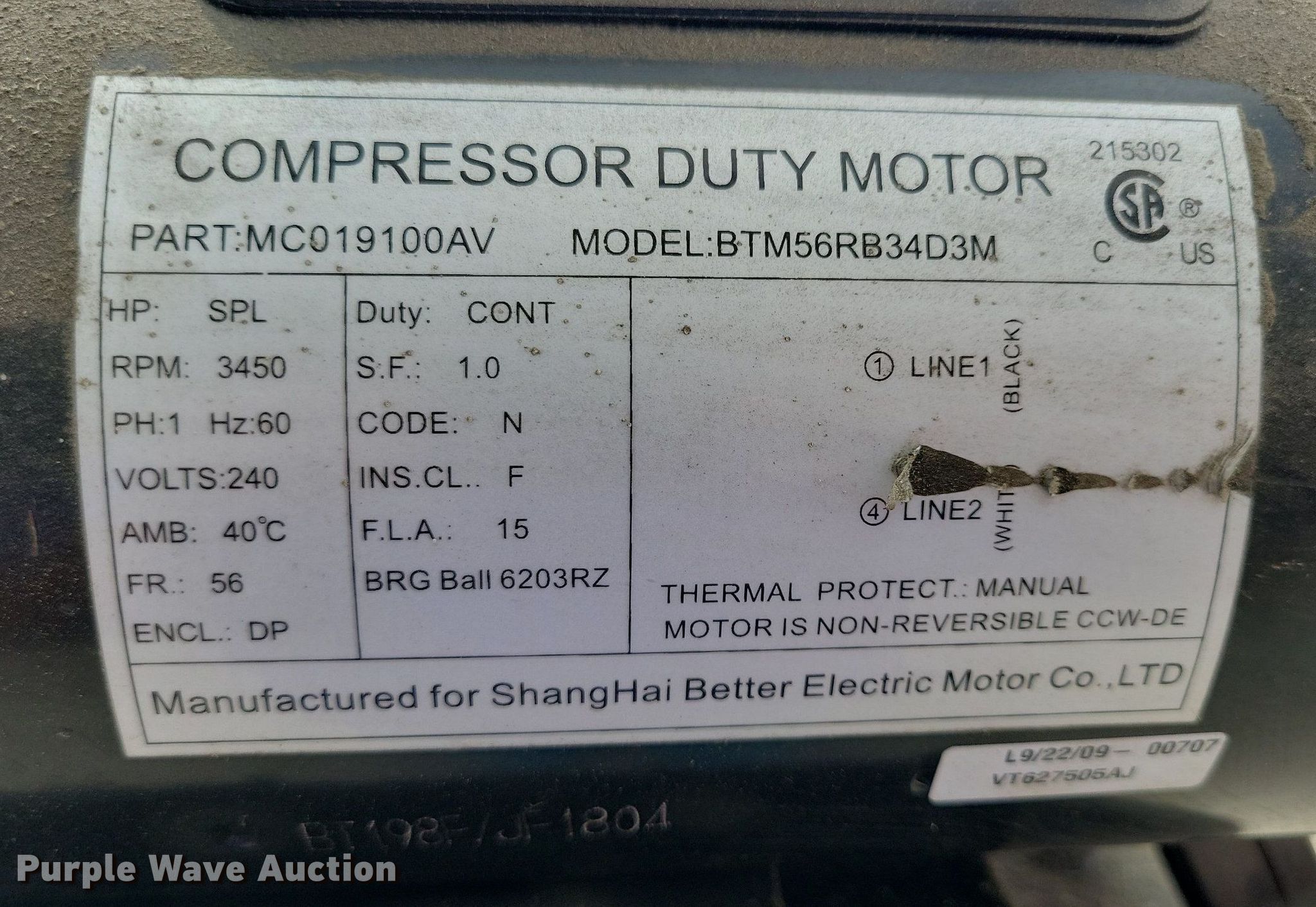 Purple Wave is selling a used Air Compressor in South Dakota. This item is a 2009 Campbell Hausfeld VT627505AJ air compressor with the following: Serial: L9/22/09-00707