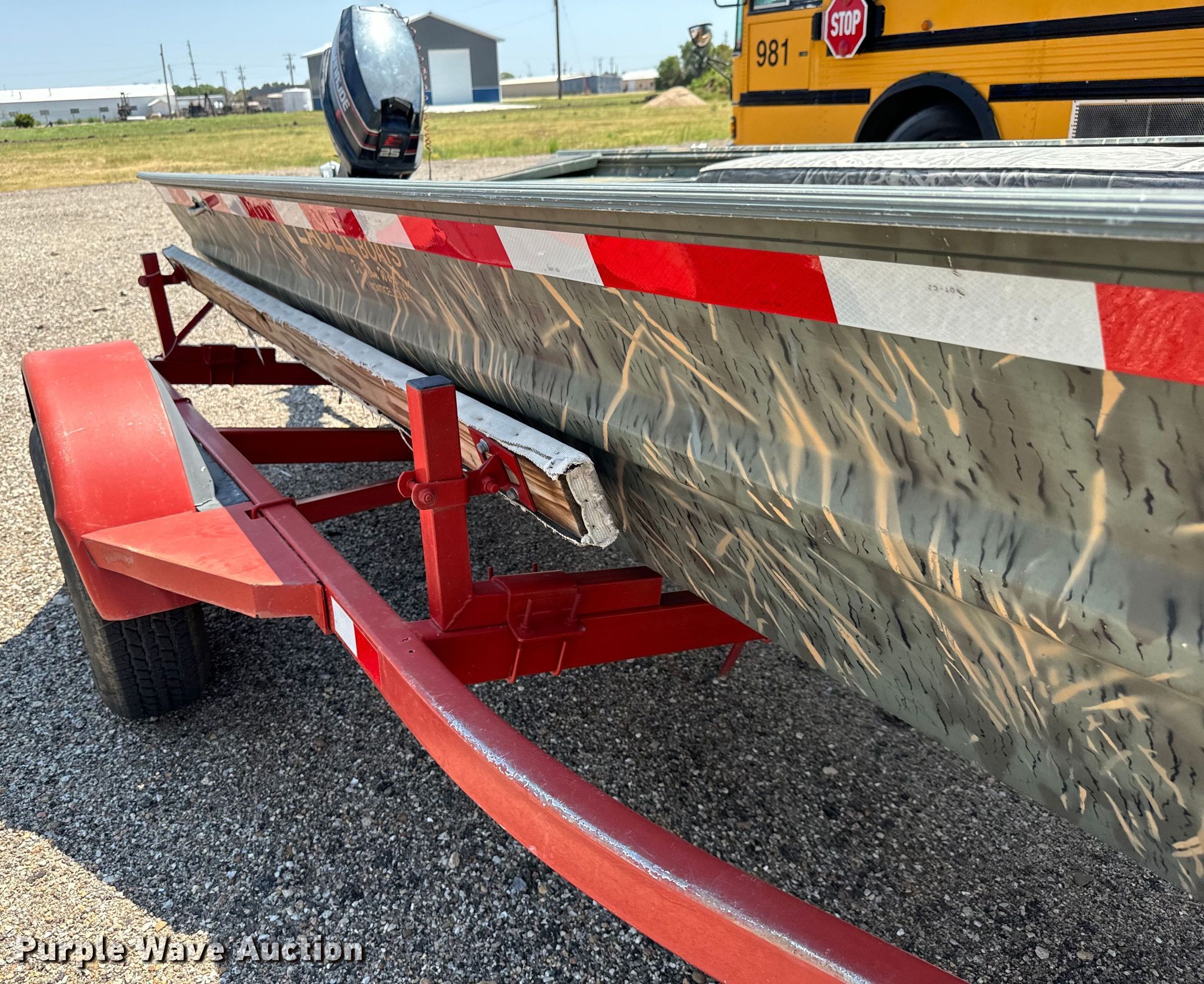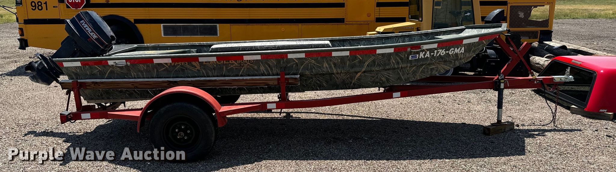War Eagle 642 boat. Length: 16', Hull ID MTW13193F102, Unit #: KA-176-GMA. Engine Evinrude 25, Cylinders: 2, Fuel type: Gas. Operators station Capacity Person: 4, 550 lbs. Shop built trailer Overall length: 18.5', Overall width: 94", Ball hitch size: 2", Axles: Single, Tire size: 195/75R14. Notes Damaged taillight. Boat - transfer of ownership will be a bill of sale. Outboard motor - transfer of ownership will be a bill of sale. Trailer - transfer of ownership will be a bill of sale. City of Great Bend, KS. Great Bend, KS 67530