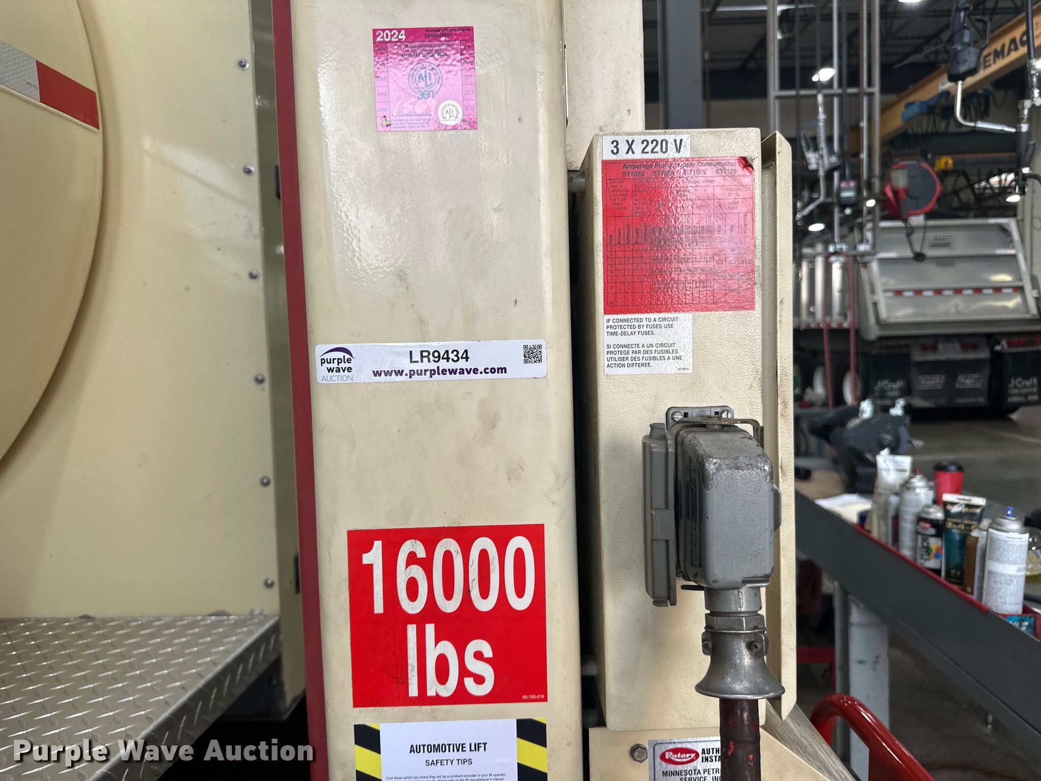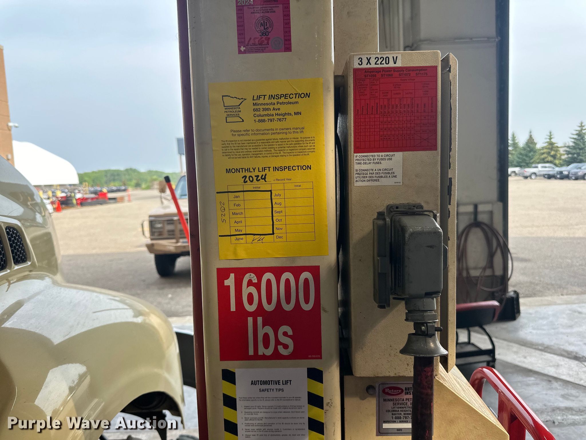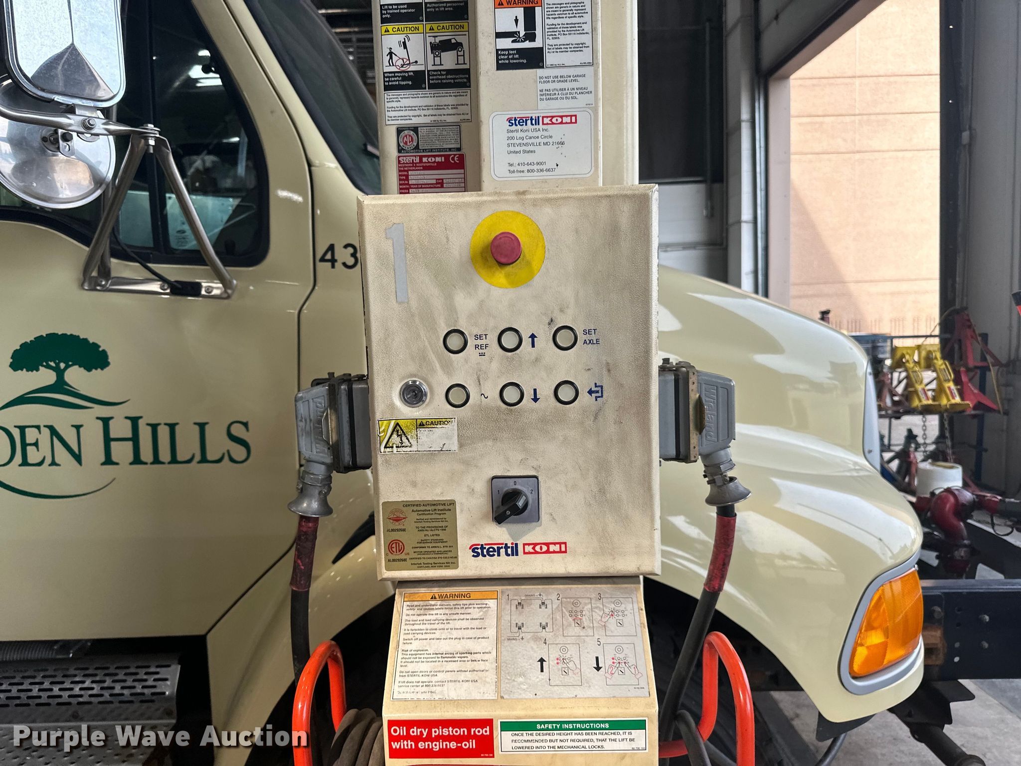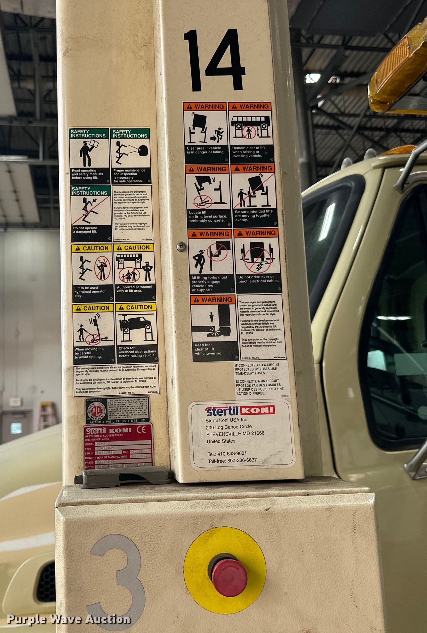 Purple Wave is selling a used Tools in Minnesota. This item is a Stertil Koni four post lift with the following: Unit #: 14, Volts: 240, Phase: Single, Capacity: 16,000 lbs each, Total capacity 64,000, Truck not included