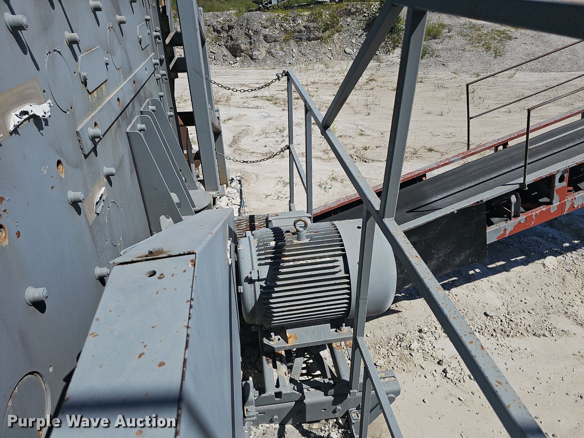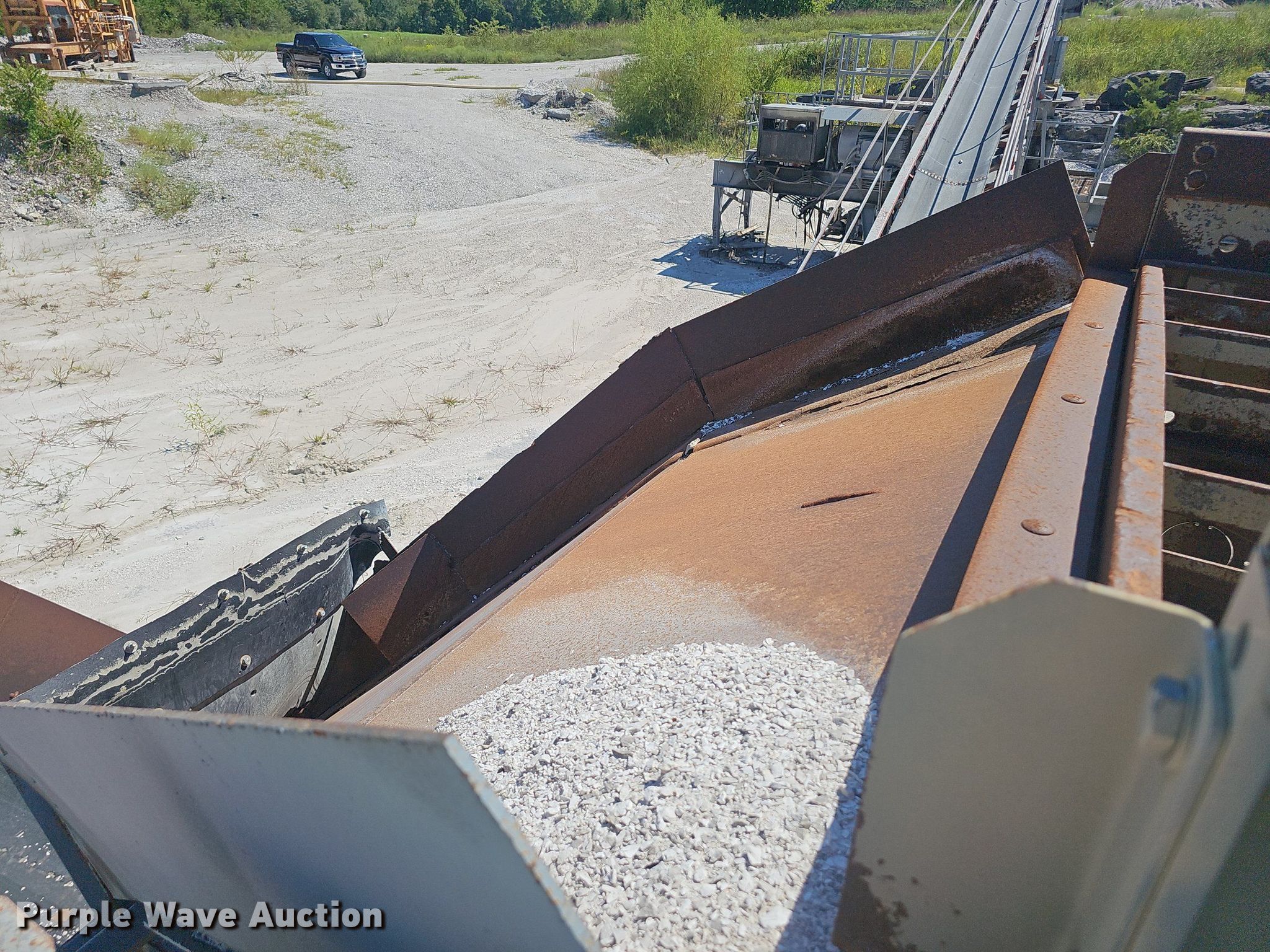 Screening plant. Electric Motor. HP: 50, Volts: 230/460, Phase: Three. Features Screen deck Length: 20', Width: 81", Decks: Triple, Screen size Top: 4.5", Bottom: 2", Vibrating, Discharge: 32' L x 48" W. Notes Axles missing. All aspects of disassembly and removal are the sole responsibility of the purchaser. Washington County, AR. Canehill, AR 72717