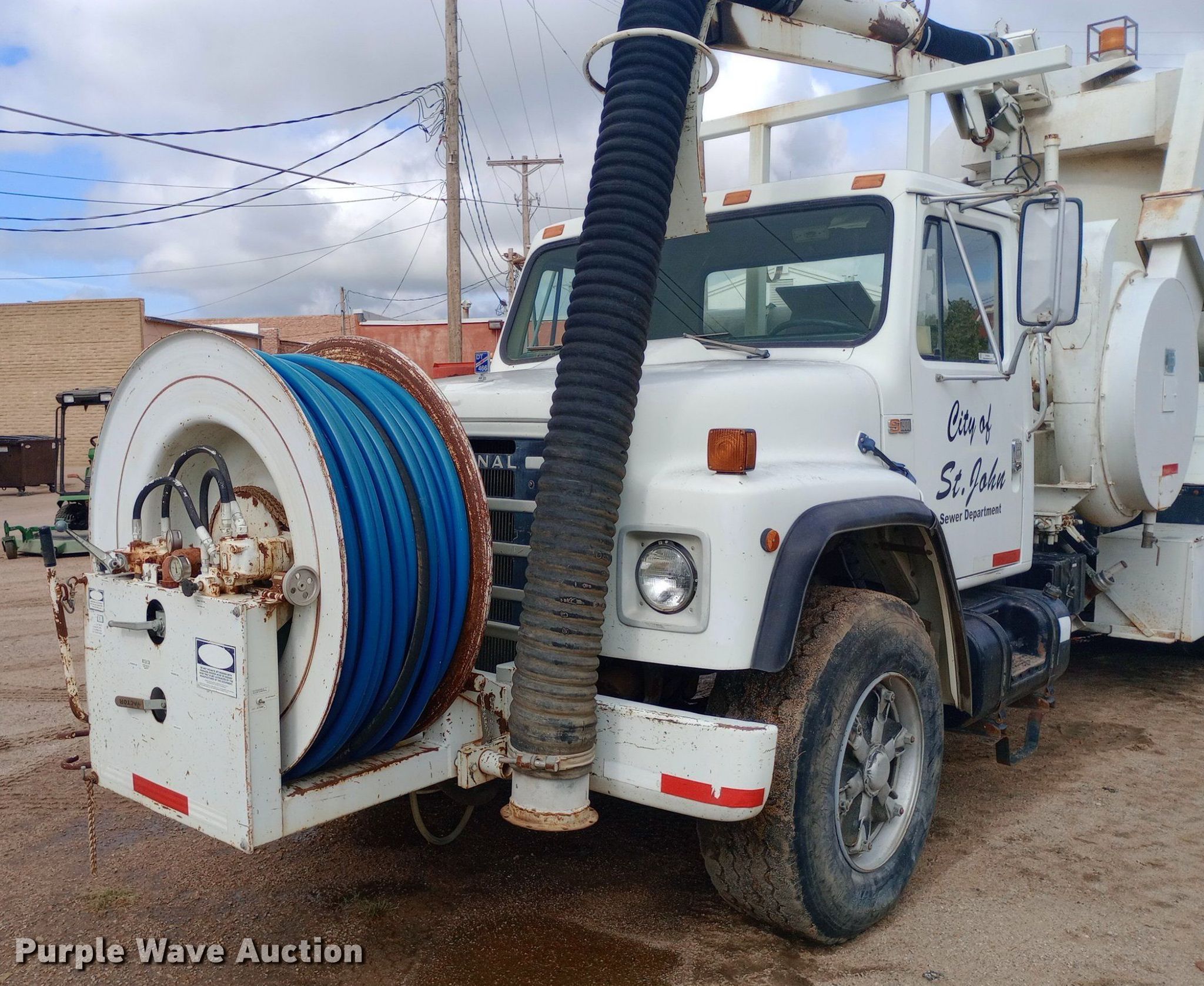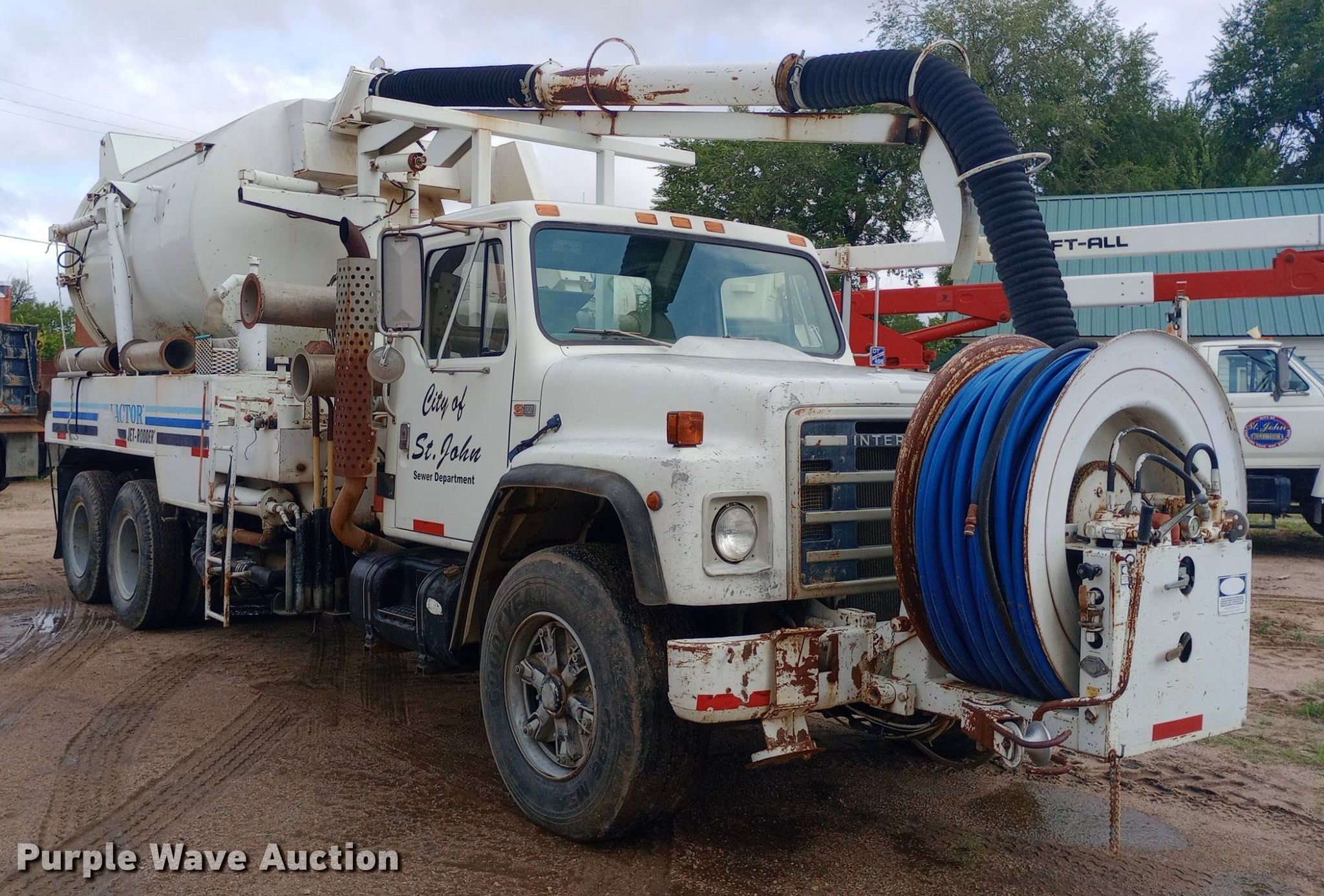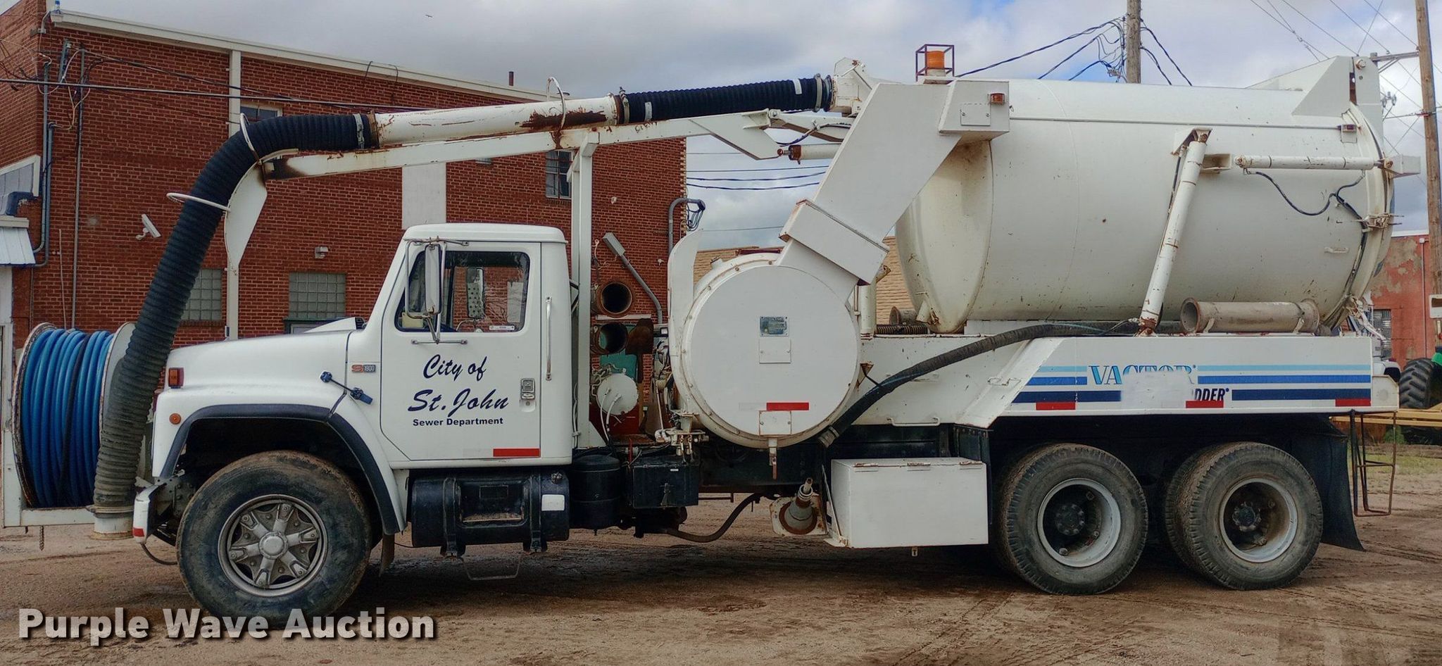 1985 International F1954 vacuum truck. Miles: 32,163 on odometer Actual mileage unknown, Hours: 4,376 on meter, VIN: 1HTLKTVR2FHA48843. Engine Displacement: 7.6L, Cylinders: 6, Fuel type: Diesel. Transmission Manual, Speed: 13. Chassis Axles: Tandem, Suspension: Spring over walking beam, Brakes: Air, PTO, Wheelbase: 224". Interior Heat. Features Tank bed Vactor 810-00, Serial: 85-6-2717, Capacity: 800 gallons, Rear outlet: 3.5", Hose reel Front, Hydraulic, Diameter: 1". Tires Front: 385/65R22.5, Rear: 10.00-20. Notes Hydraulic leaks, Non-operational hose reel, Non-operational vacuum unit. Kansas title. Mileage has not been verified. Exempt will be written in the odometer disclosure on the title. City of St. John. St. John, KS 67576