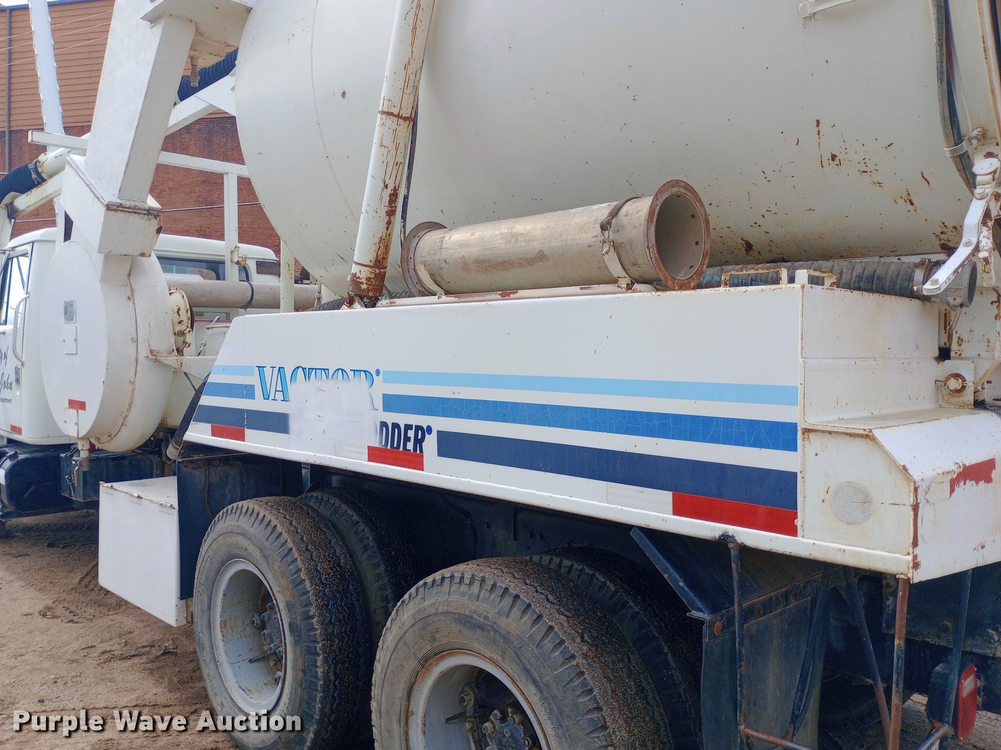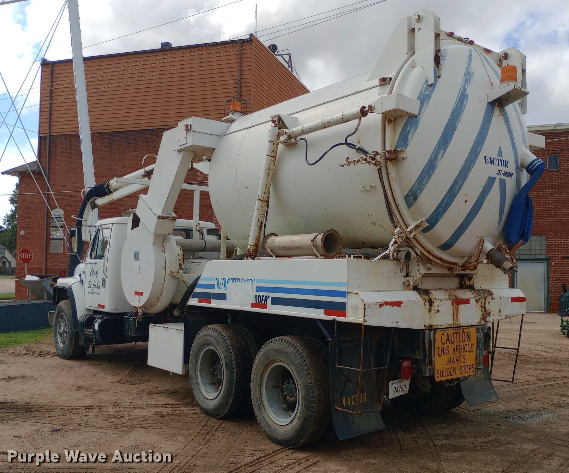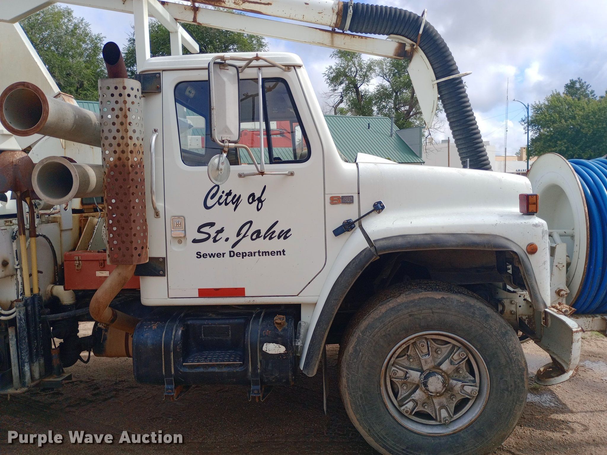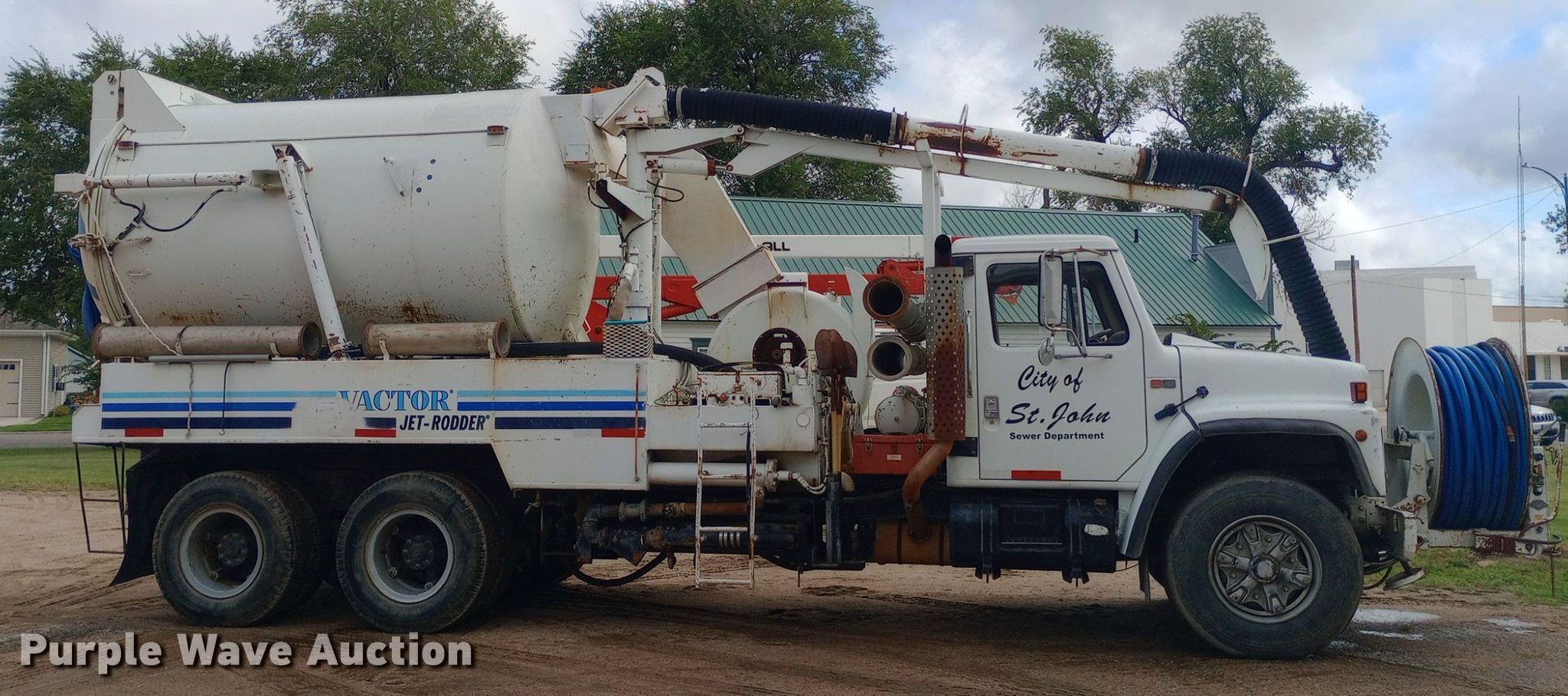 1985 International F1954 vacuum truck. Miles: 32,163 on odometer Actual mileage unknown, Hours: 4,376 on meter, VIN: 1HTLKTVR2FHA48843. Engine Displacement: 7.6L, Cylinders: 6, Fuel type: Diesel. Transmission Manual, Speed: 13. Chassis Axles: Tandem, Suspension: Spring over walking beam, Brakes: Air, PTO, Wheelbase: 224". Interior Heat. Features Tank bed Vactor 810-00, Serial: 85-6-2717, Capacity: 800 gallons, Rear outlet: 3.5", Hose reel Front, Hydraulic, Diameter: 1". Tires Front: 385/65R22.5, Rear: 10.00-20. Notes Hydraulic leaks, Non-operational hose reel, Non-operational vacuum unit. Kansas title. Mileage has not been verified. Exempt will be written in the odometer disclosure on the title. City of St. John. St. John, KS 67576