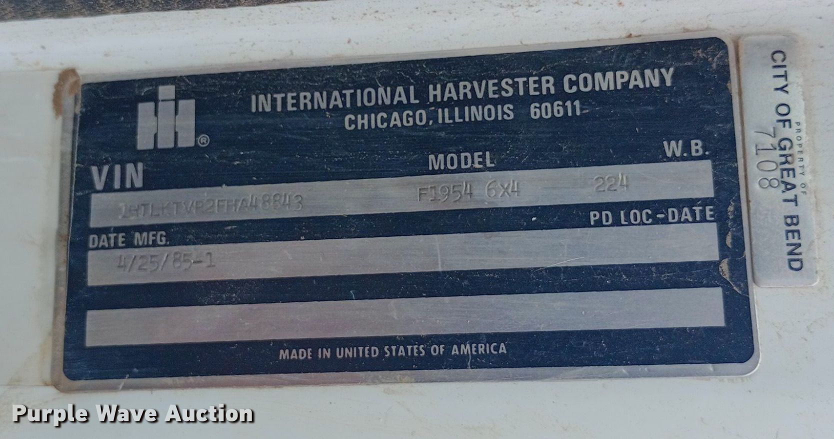 Purple Wave is selling a used Vacuum Truck in Kansas. This item is a 1985 International F1954 vacuum truck with the following: Miles: 32,163 on odometer, Actual mileage unknown, Hours: 4,376 on meter, VIN: 1HTLKTVR2FHA48843