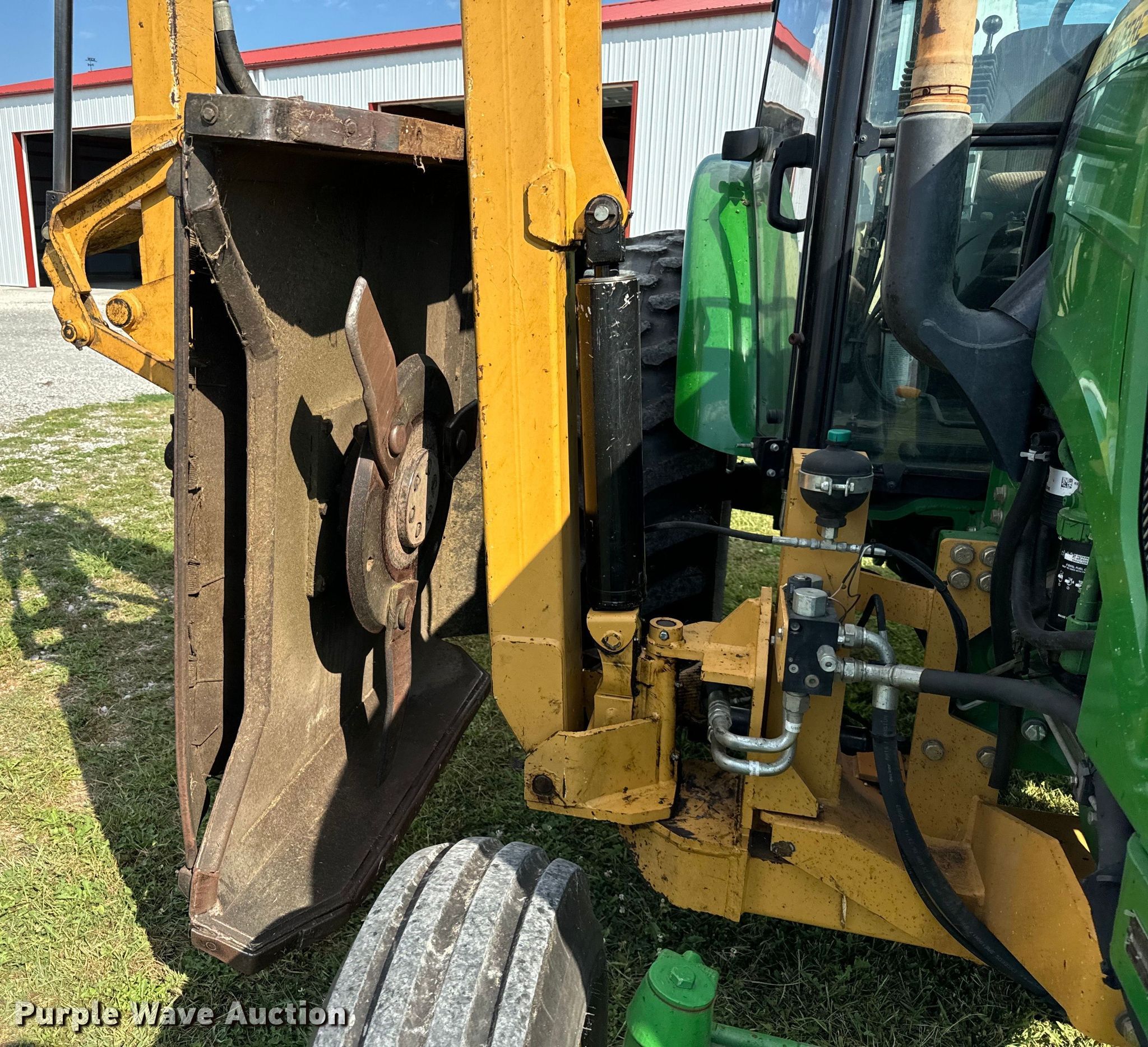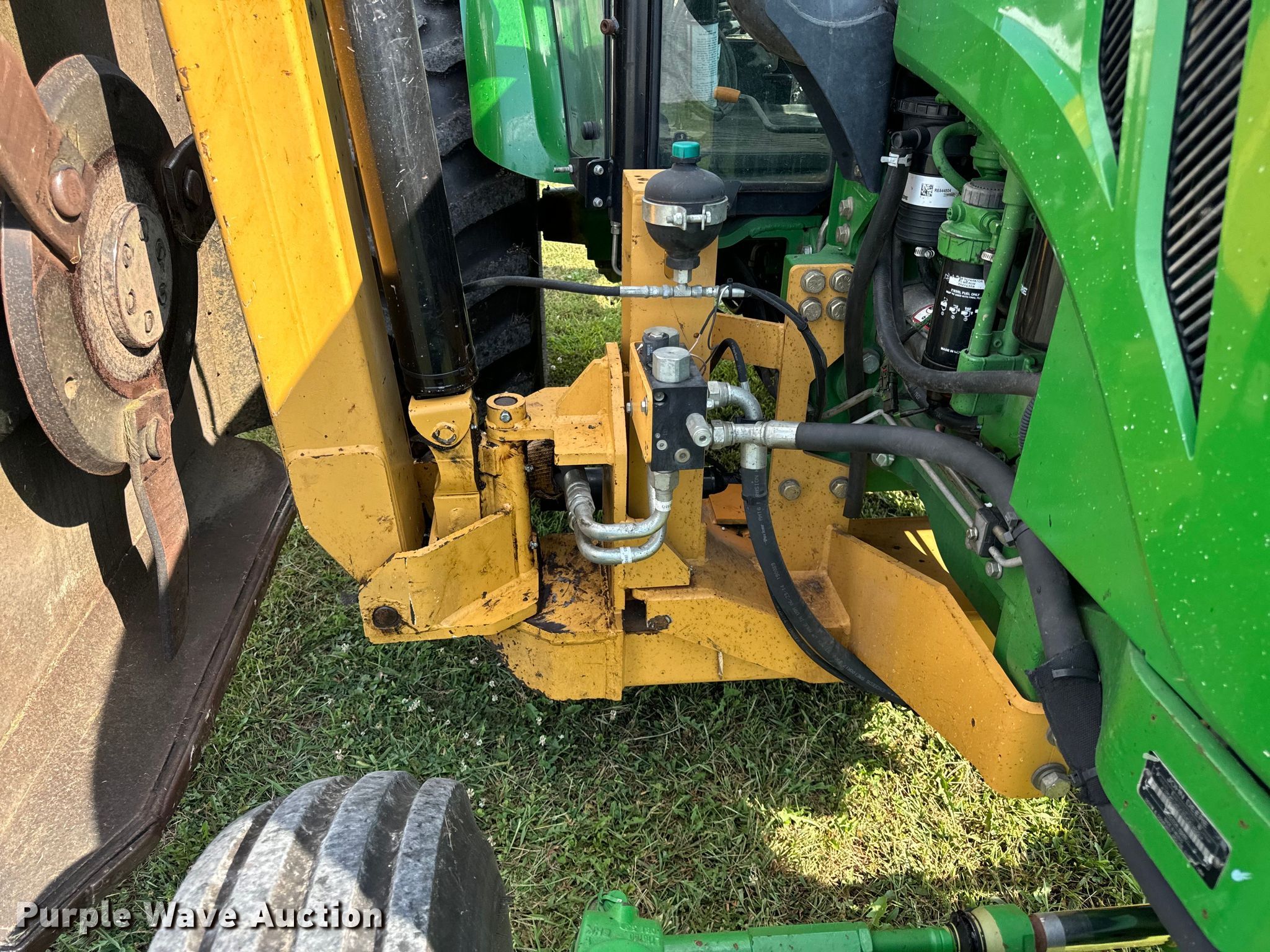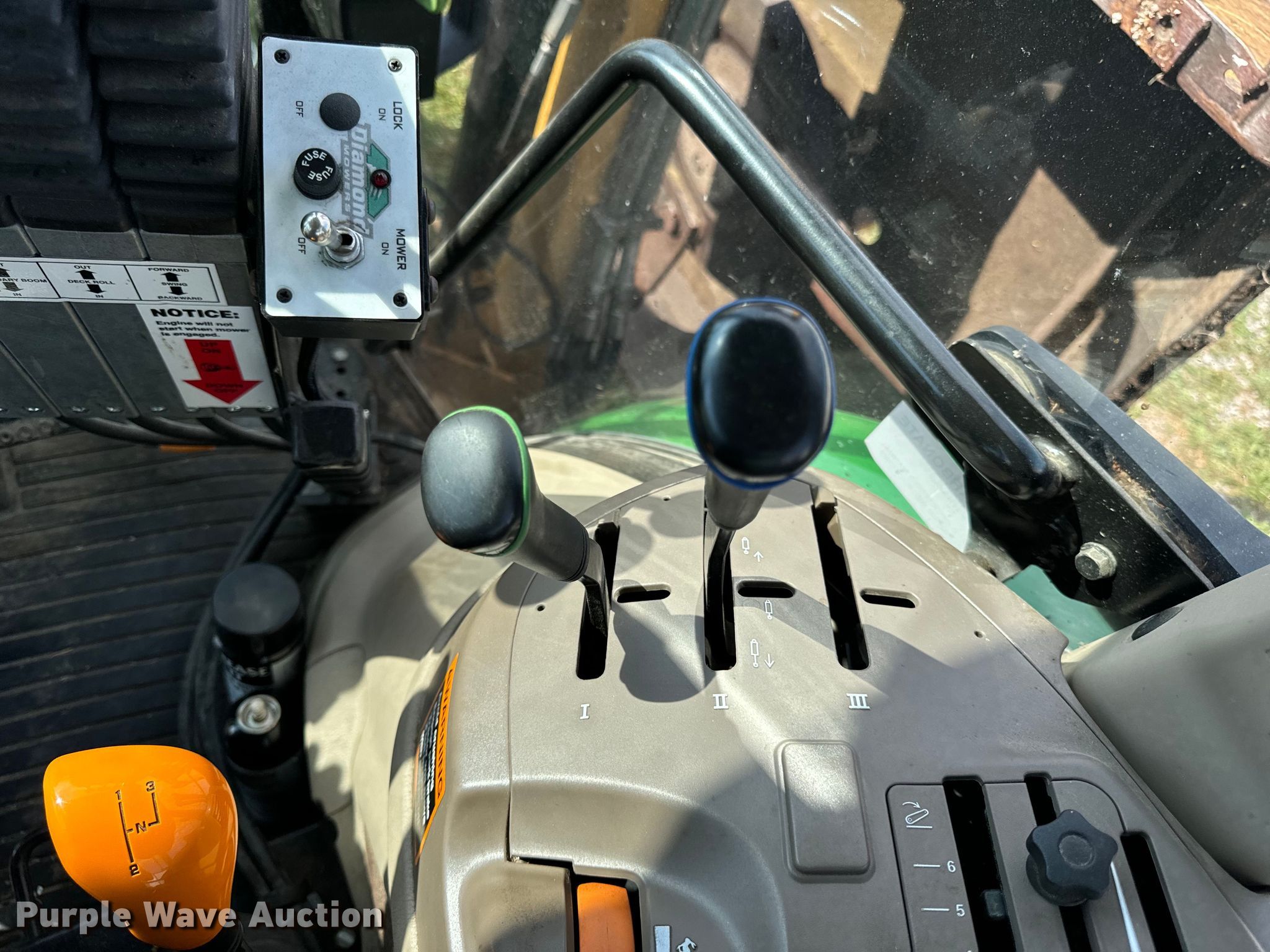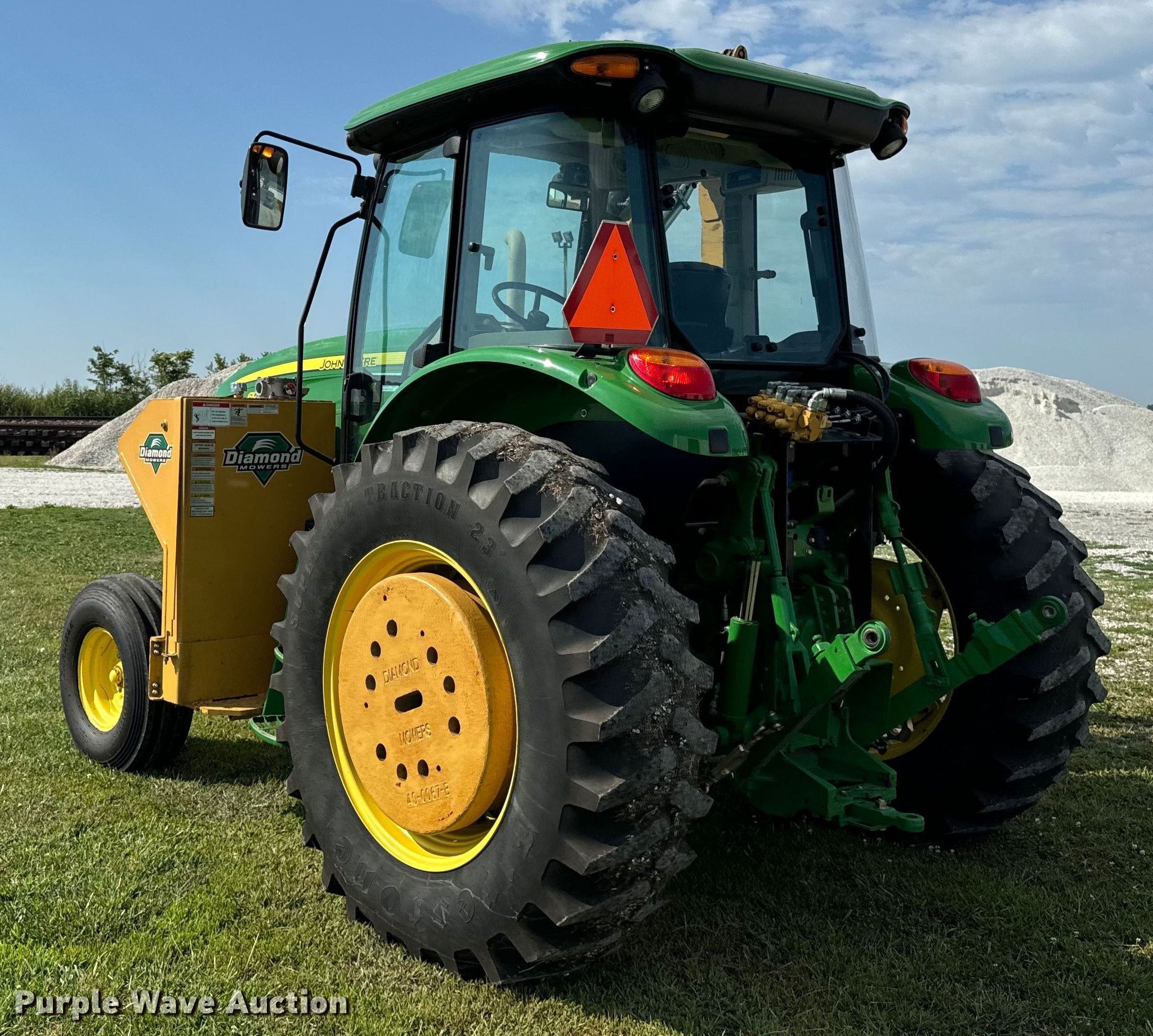 2014 John Deere 6105D tractor. Hours: 1,915 on meter, Serial: 1P06105DCEM051823. Engine John Deere 4045HP056, Cylinders: 4, Fuel type: Diesel. Transmission Synchro, 9F - 9R, Left-hand reverser, Differential lock. Operators station AC, Heat. Features PTO: 540, Three point, Seven pin outlet, Hydraulic remote sets Rear: 2, Side boom rotary mower Diamond, Serial: MF12533, Width: 50". Tires Front: 10.00-16SL, Rear: 18.4-34. Morgan Co Road District 8. Alexander, IL 62601