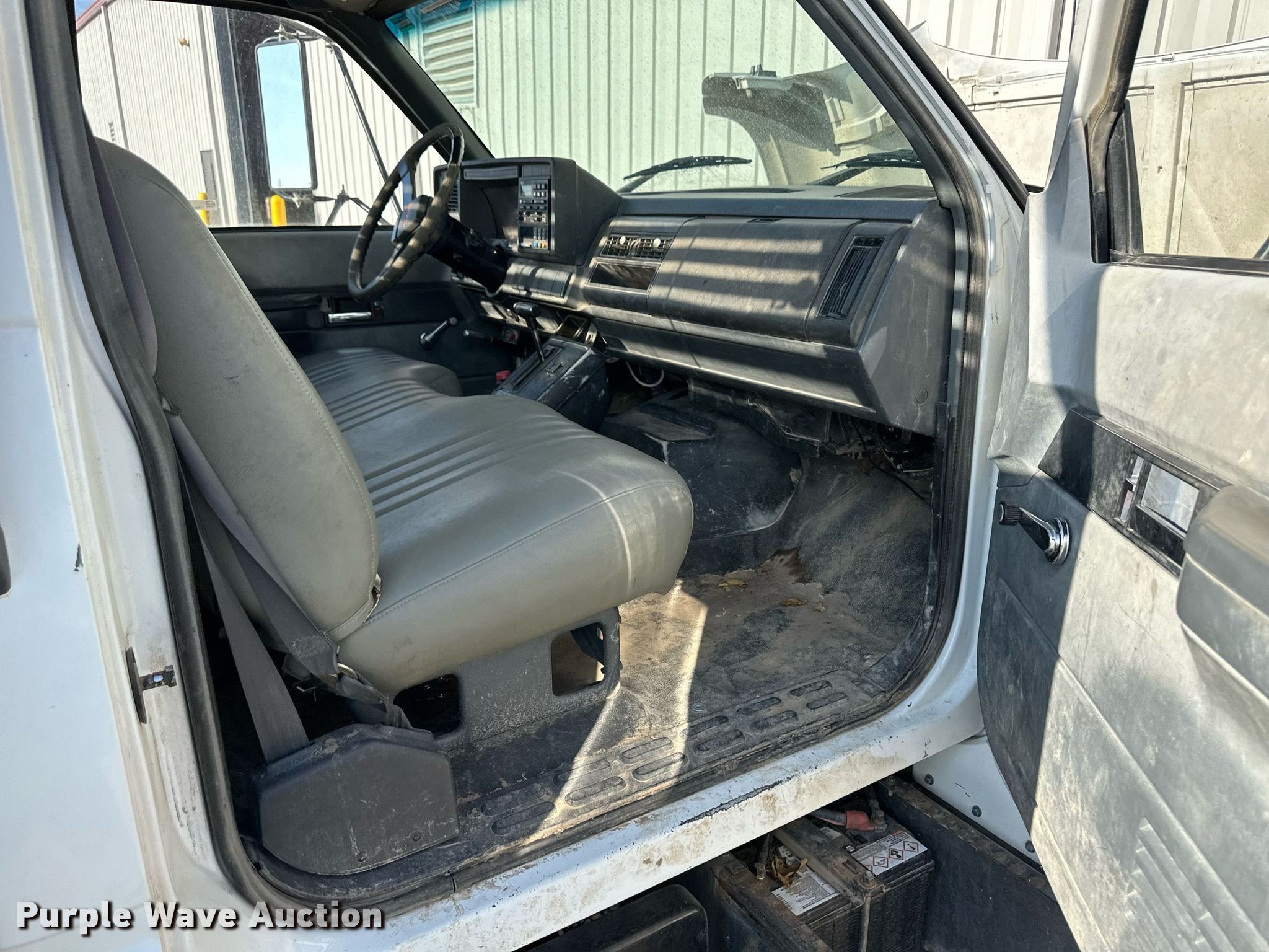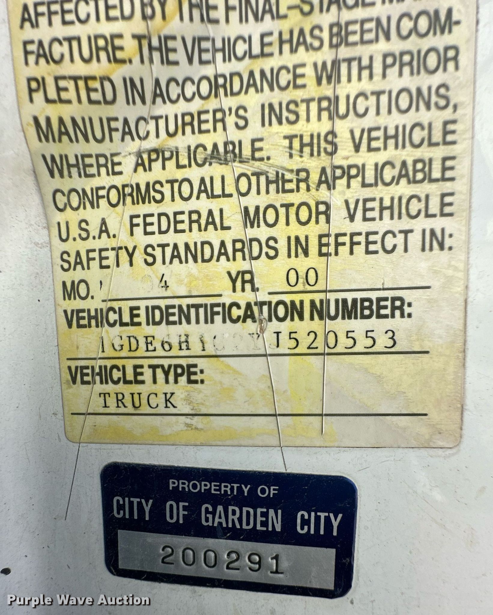 2000 GMC C6500 dump flatbed truck. Miles: 60,842 on odometer, VIN: 1GDE6H1C2YJ520553. Engine Caterpillar 3126, Displacement: 7.2L, Cylinders: 6, Fuel type: Diesel. Transmission Automatic. Chassis Axles: Single, Suspension: Spring, Brakes: Hydraulic, PTO. Interior AC, Heat. Features Dump flatbed 12' L x 92" W, Removable sides, Ram: Single. Tires Size: 225/70R19.5. Notes Dead battery. Kansas title. Garden City Utilities Department. Garden City, KS 67846