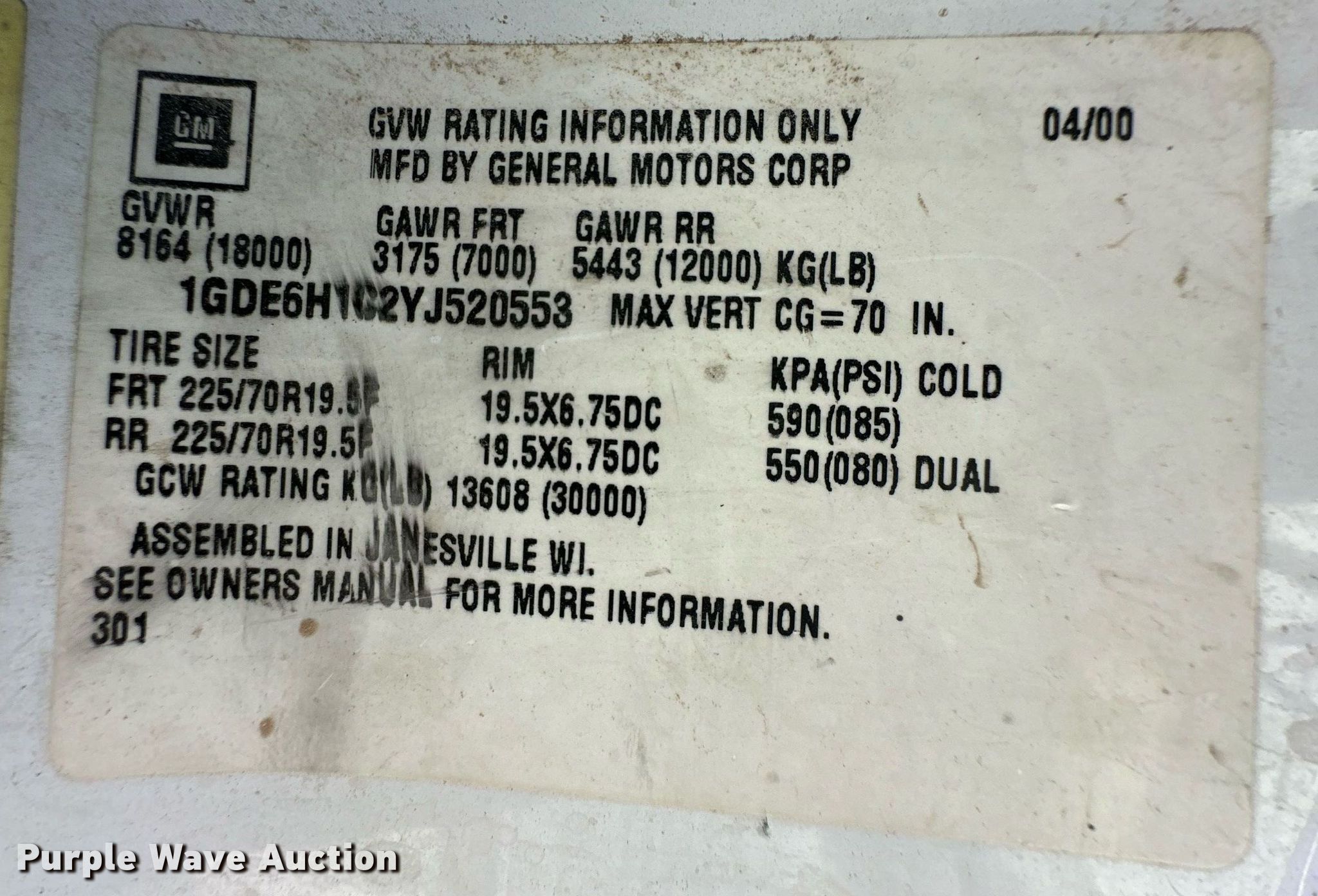 Purple Wave is selling a used Flat Bed Truck in Kansas. This item is a 2000 GMC C6500 dump flatbed truck with the following: Miles: 60,842 on odometer, VIN: 1GDE6H1C2YJ520553