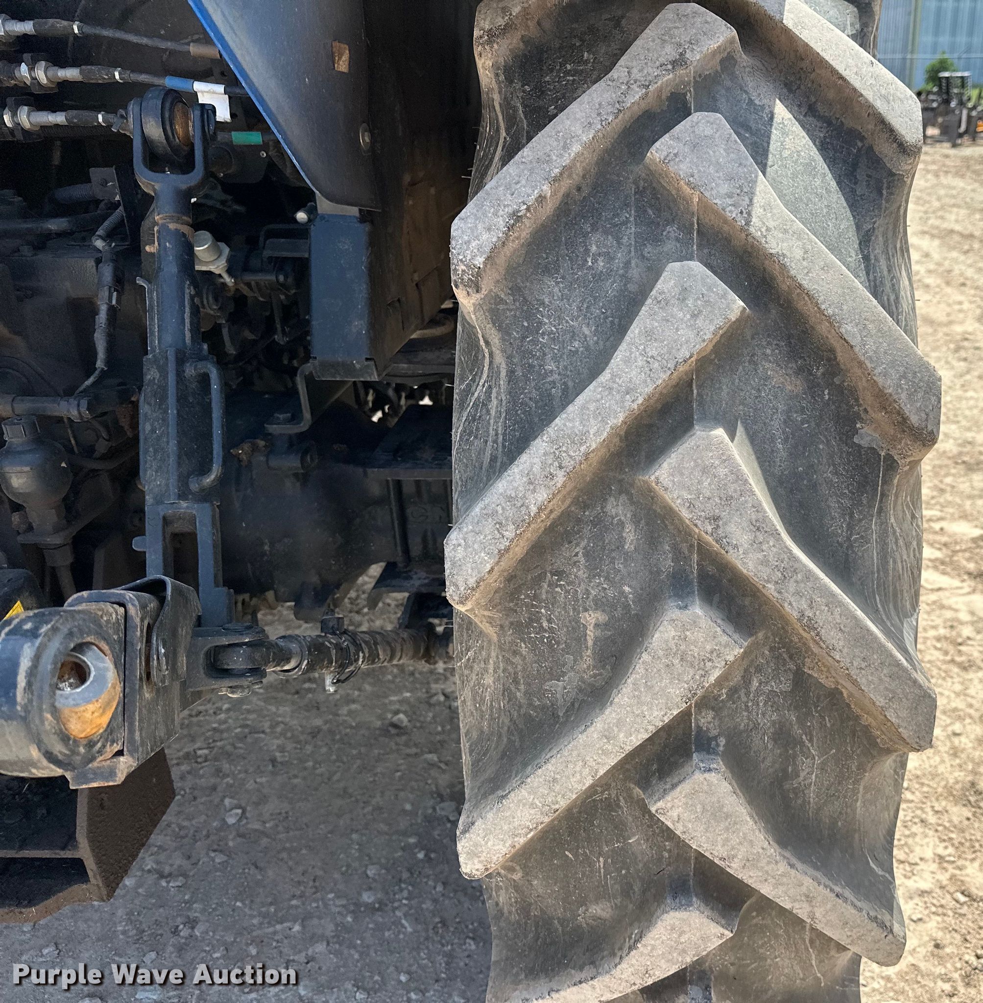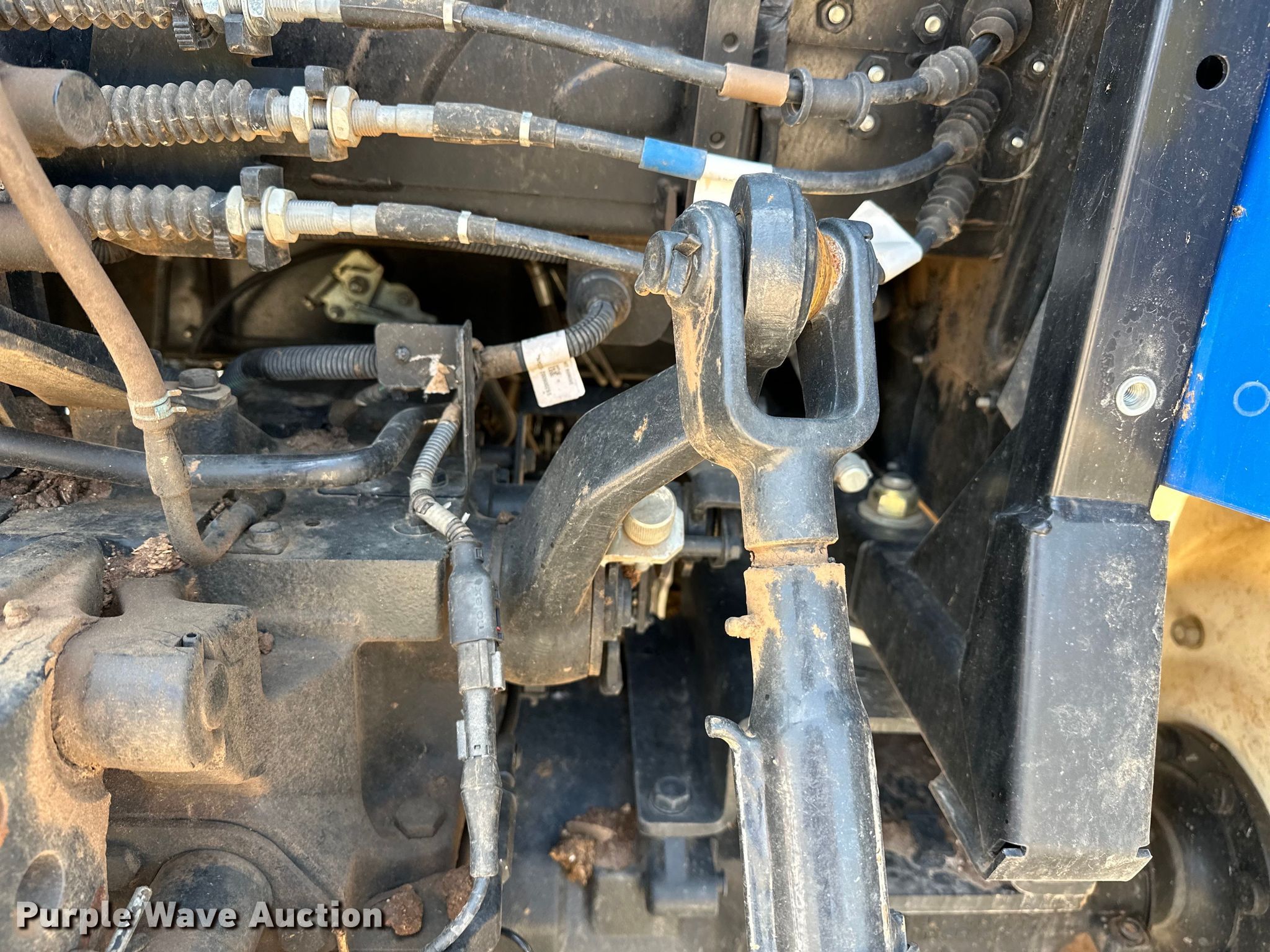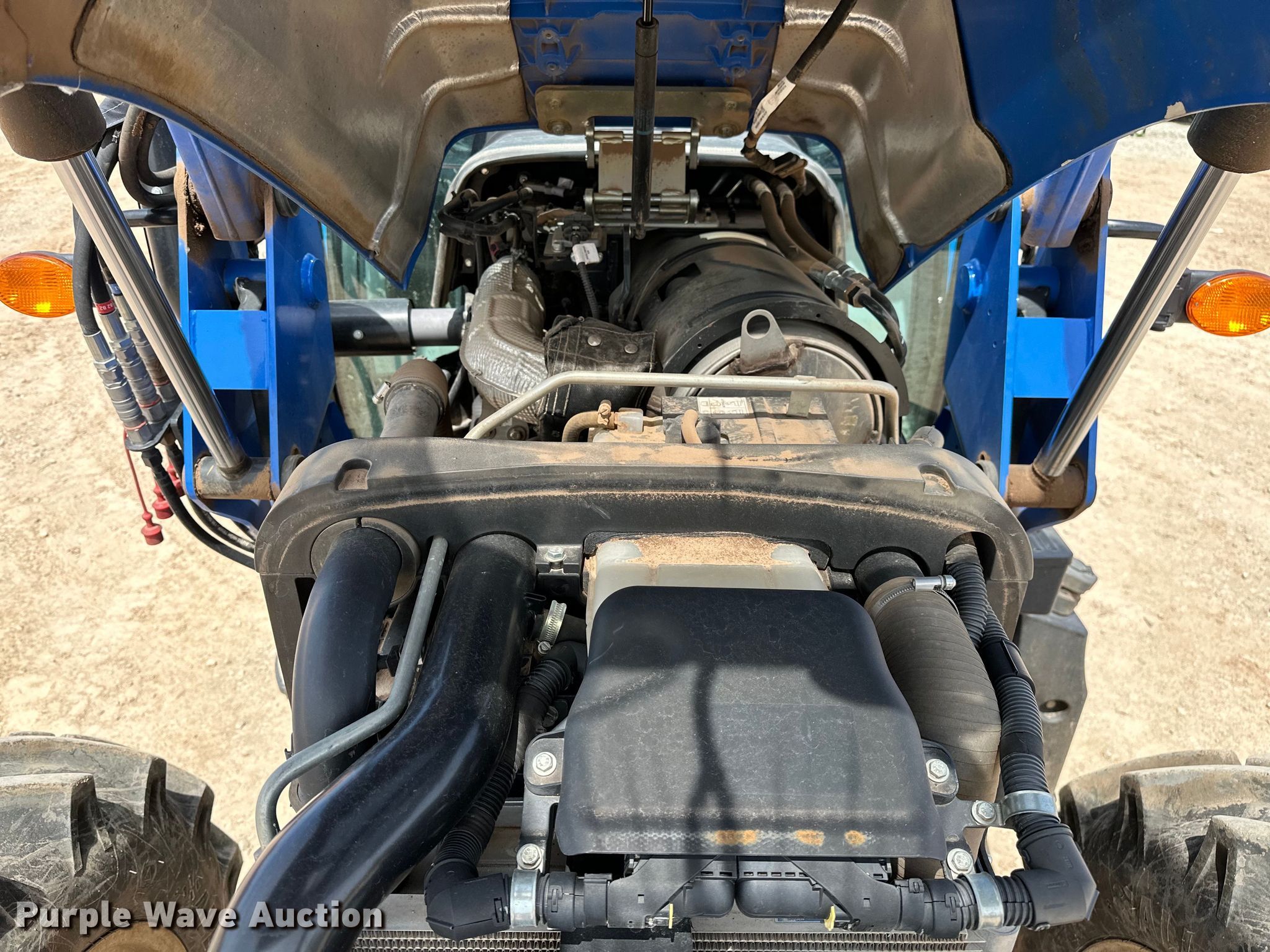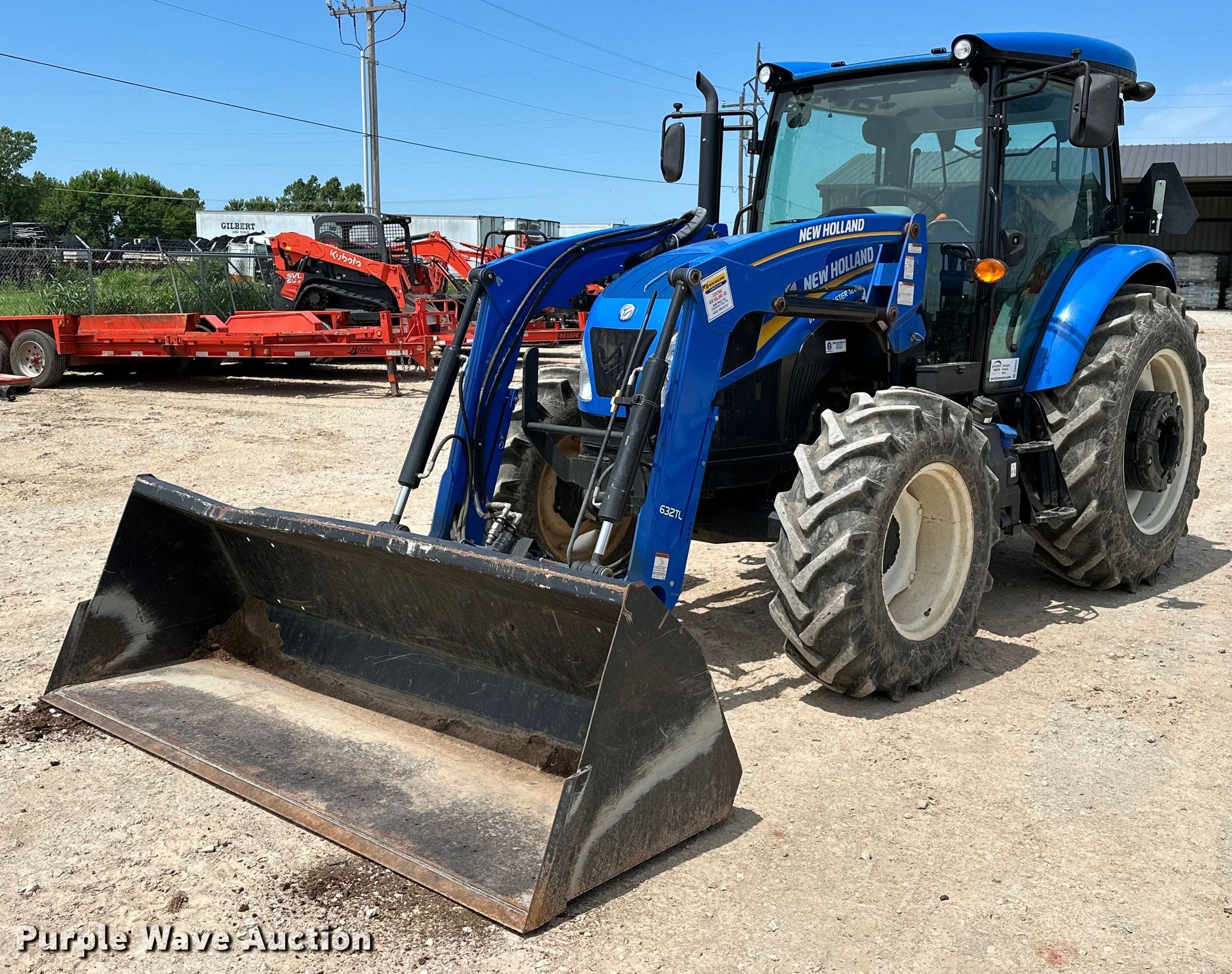 2020 New Holland Workmaster 120 MFWD tractor. Hours: 927 on meter, Serial: NH1538974. Engine FPT F5GFL413KC, Serial: 000599829, Displacement: 3.4L, Cylinders: 4, Fuel type: Diesel. Transmission Dual power, 12F - 12R, Left-hand reverser, Differential lock. Operators station AC, Heat. Features PTO: 540, Three point Top link, Seven pin outlet, Hydraulic remote sets Front: 2, Rear: 3, Loader New Holland 632TL, Quick attach, Controls: Joystick, Bucket Width: 96".. Tires Front: 13.6-24, Rear: 16.9/14-34, Wheel weights: 8. Great Plains Kubota. 14280 U.S. 177. Shawnee, OK 74804