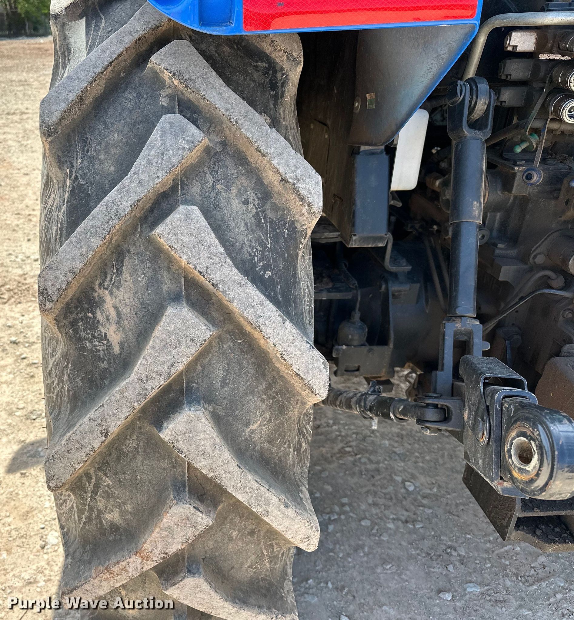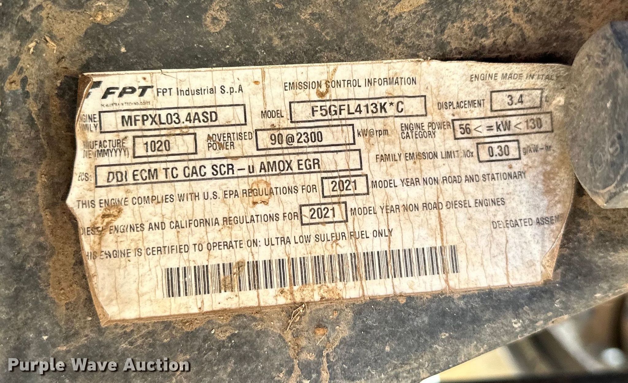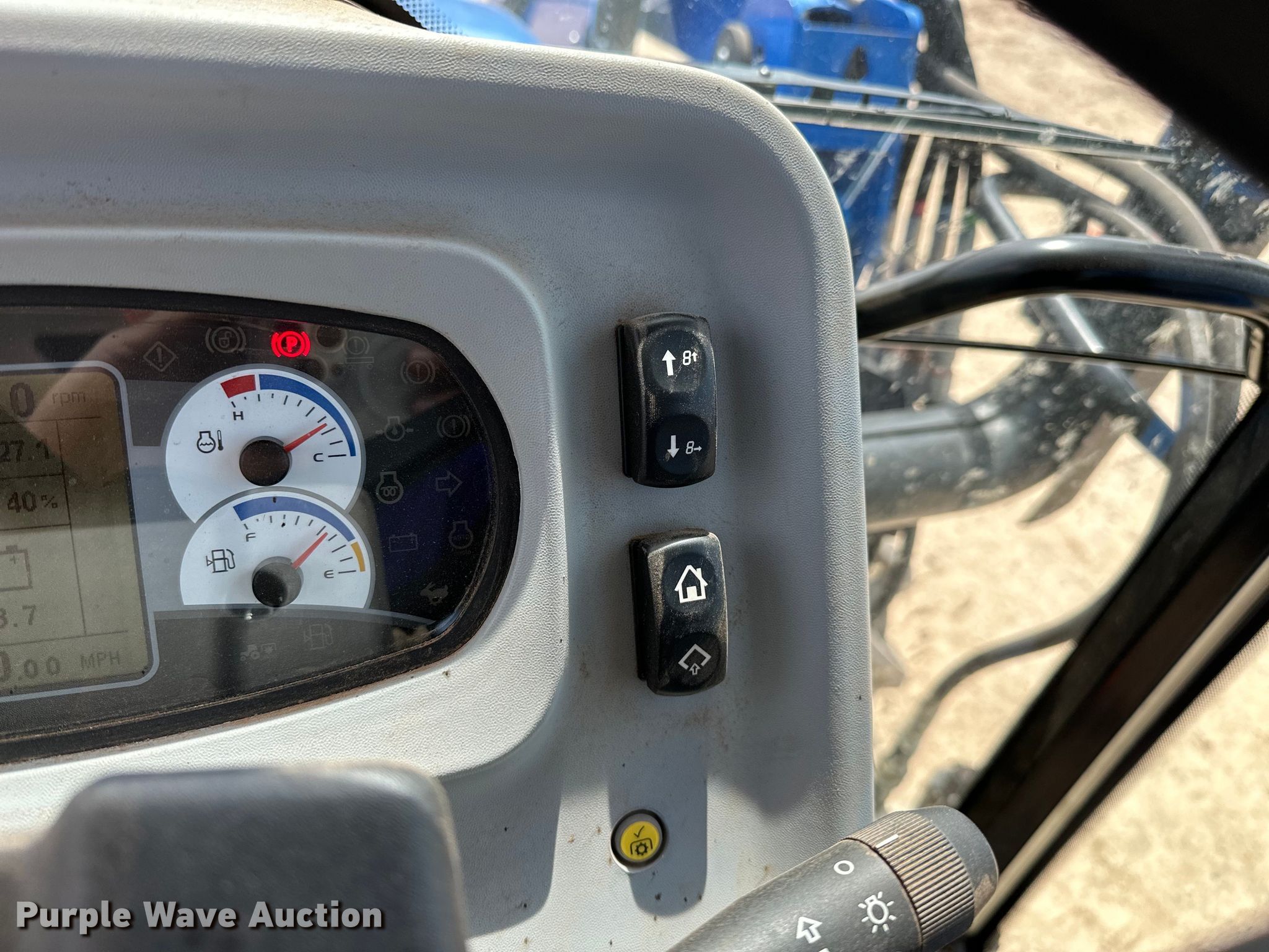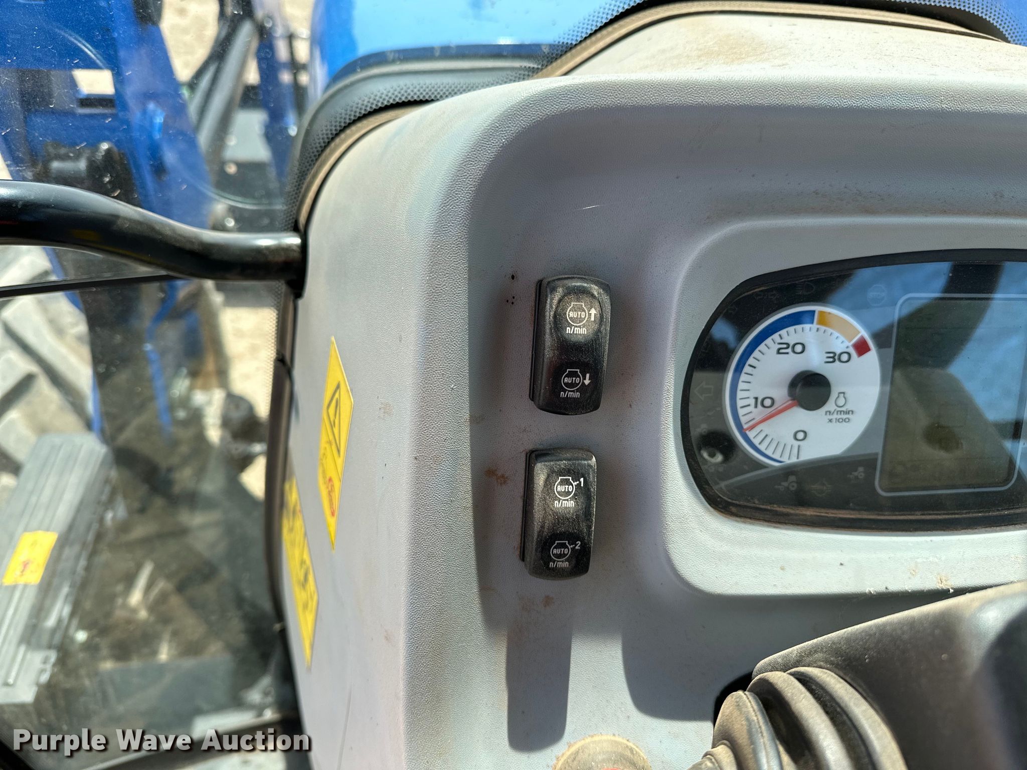 2020 New Holland Workmaster 120 MFWD tractor. Hours: 927 on meter, Serial: NH1538974. Engine FPT F5GFL413KC, Serial: 000599829, Displacement: 3.4L, Cylinders: 4, Fuel type: Diesel. Transmission Dual power, 12F - 12R, Left-hand reverser, Differential lock. Operators station AC, Heat. Features PTO: 540, Three point Top link, Seven pin outlet, Hydraulic remote sets Front: 2, Rear: 3, Loader New Holland 632TL, Quick attach, Controls: Joystick, Bucket Width: 96".. Tires Front: 13.6-24, Rear: 16.9/14-34, Wheel weights: 8. Great Plains Kubota. 14280 U.S. 177. Shawnee, OK 74804