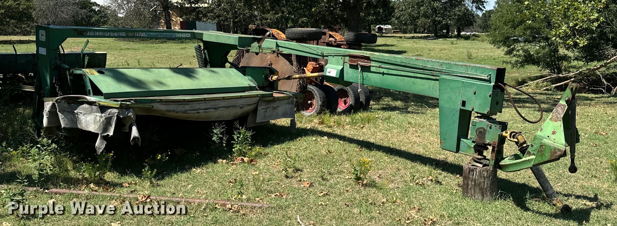 Purple Wave is selling a used Windrower Pull Type in Oklahoma. This item is a 1988 John Deere 1460 windrower with the following: Serial: 001460X33040