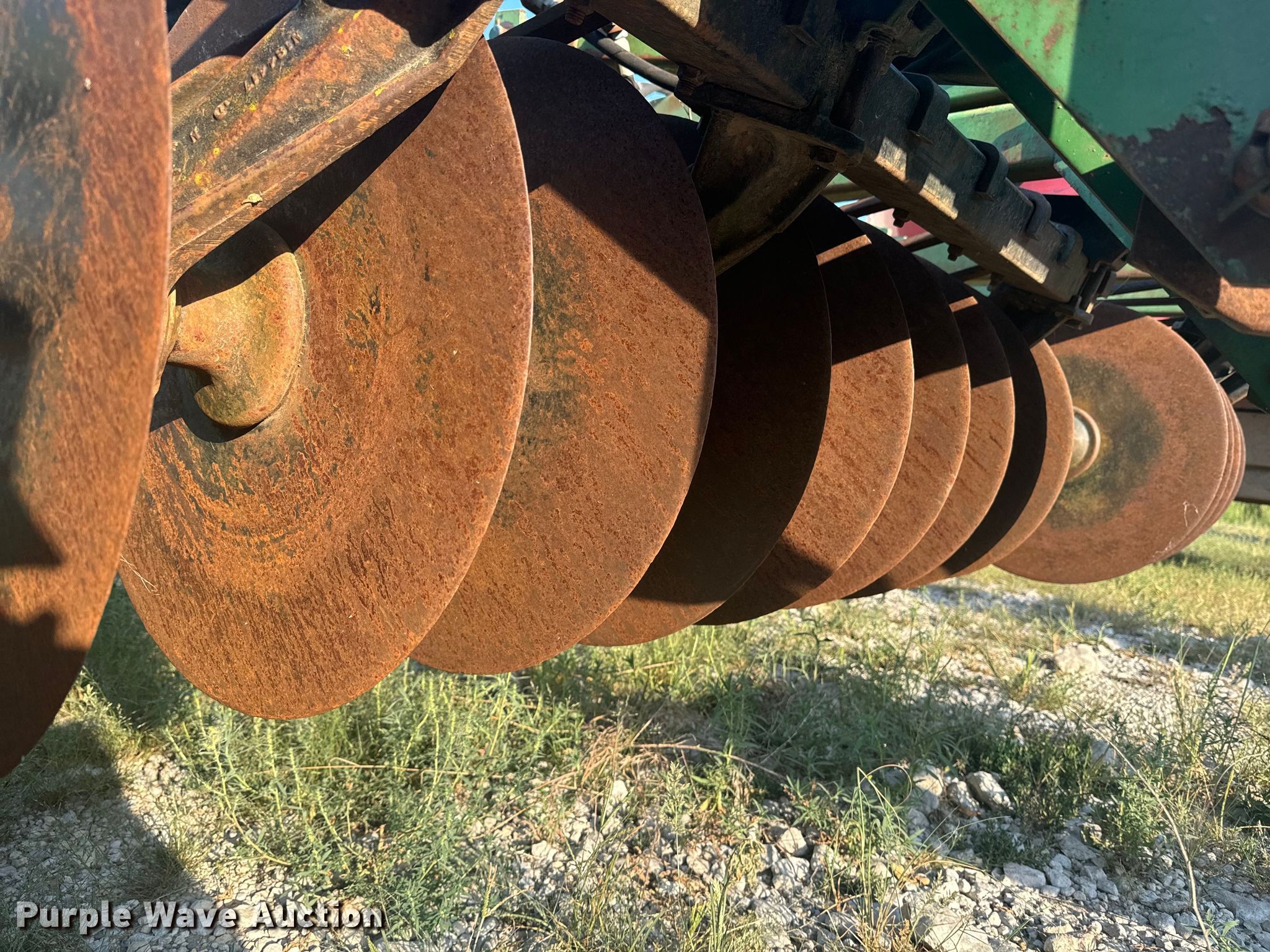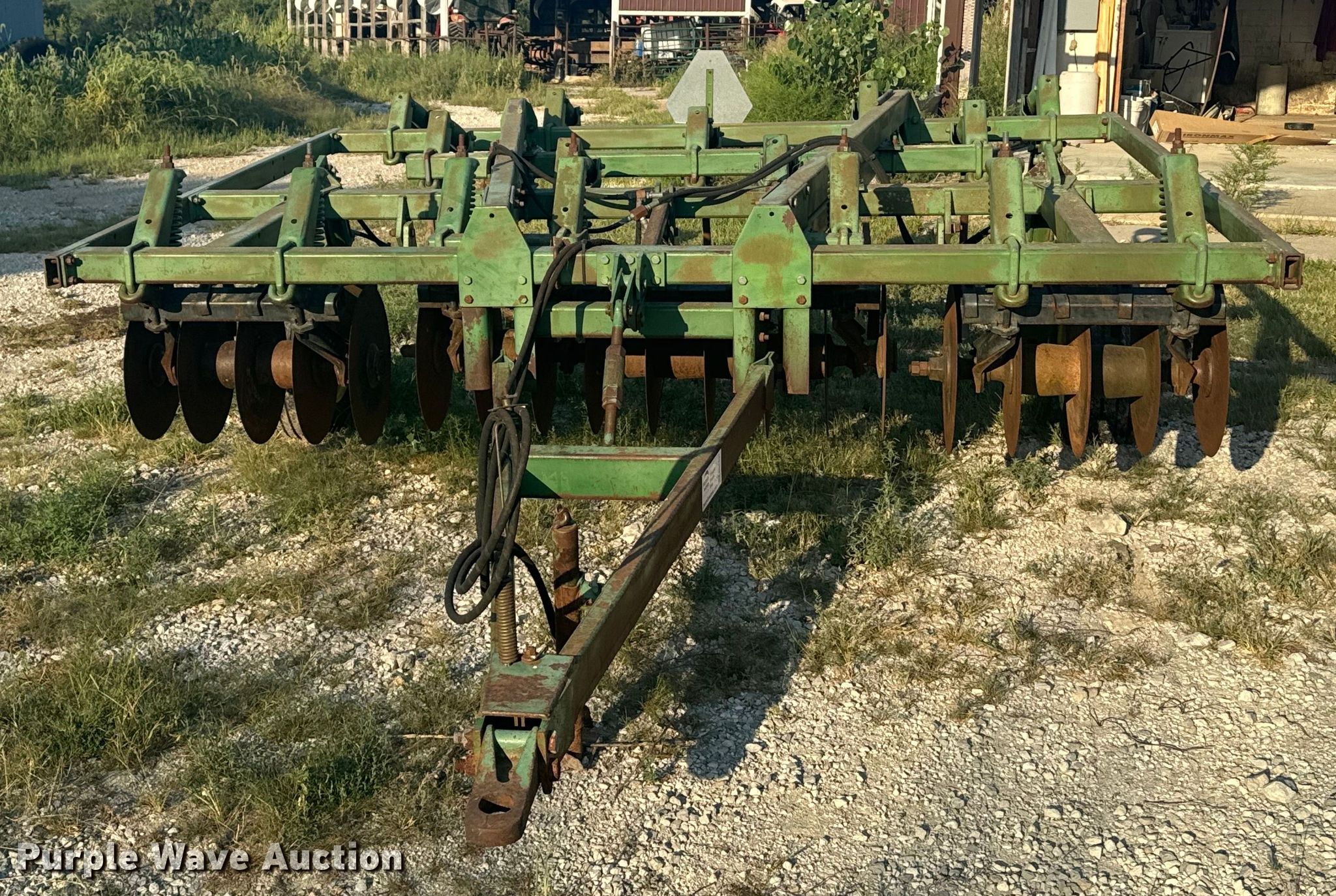 John Deere 712 disk ripper. Overall width: 12', Serial: N00712X001730. Features Blade diameter Front: 20", Spacing: 7.5", Drum scrapers, Rippers: 9 Length: 24", Spacing: 16", Operation Hydraulic lift, Leveler: Manual. Ryan Phillips Farm. Mayetta, KS 66509