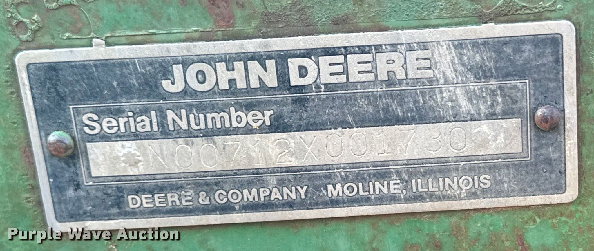 Purple Wave is selling a used Disk Ripper in Kansas. This item is a John Deere 712 disk ripper with the following: Overall width: 12', Serial: N00712X001730