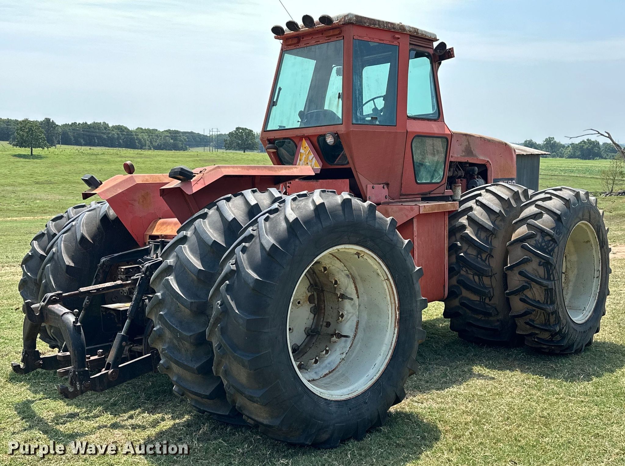 1978 Allis-Chalmers 7580 4WD tractor. Hours: 3,236 on meter, Hours: Unknown, Serial: 1851. Engine Cummins 6TA-830, Serial: 44459133, Cylinders: 6, Fuel type: Diesel, HP: 185. Transmission Power director, 20F - 4R, Differential lock. Features PTO: 1 3/4" 1000, Three point Top link, Quick attach, Hydraulic remote sets Rear: 3. Tires Outside size: 18.4-38, Inside size: 24.5-32, Duals, Front duals. Notes Pivot hydraulic cylinder issues, leaks. Keokuk Falls, OK 74864