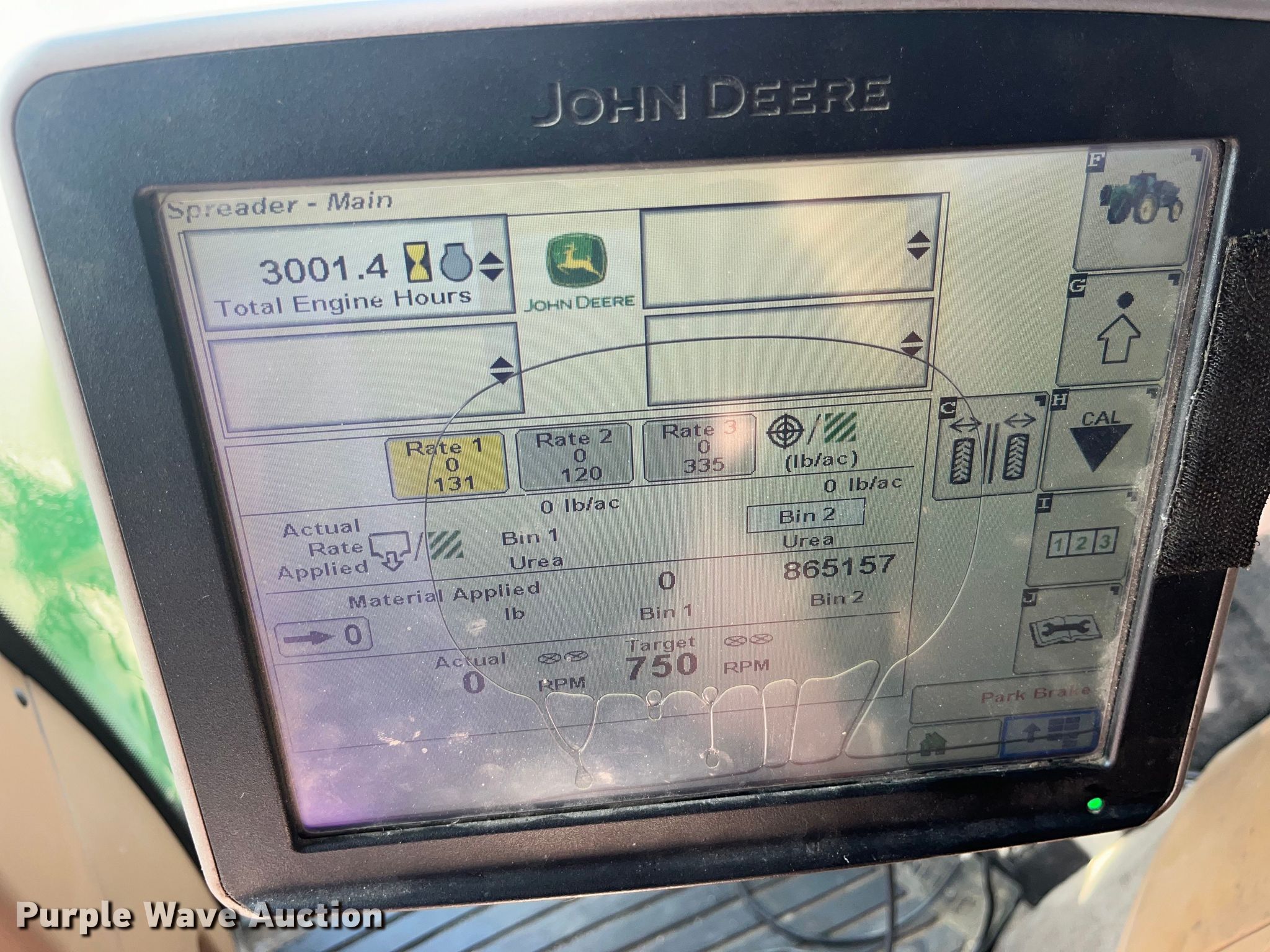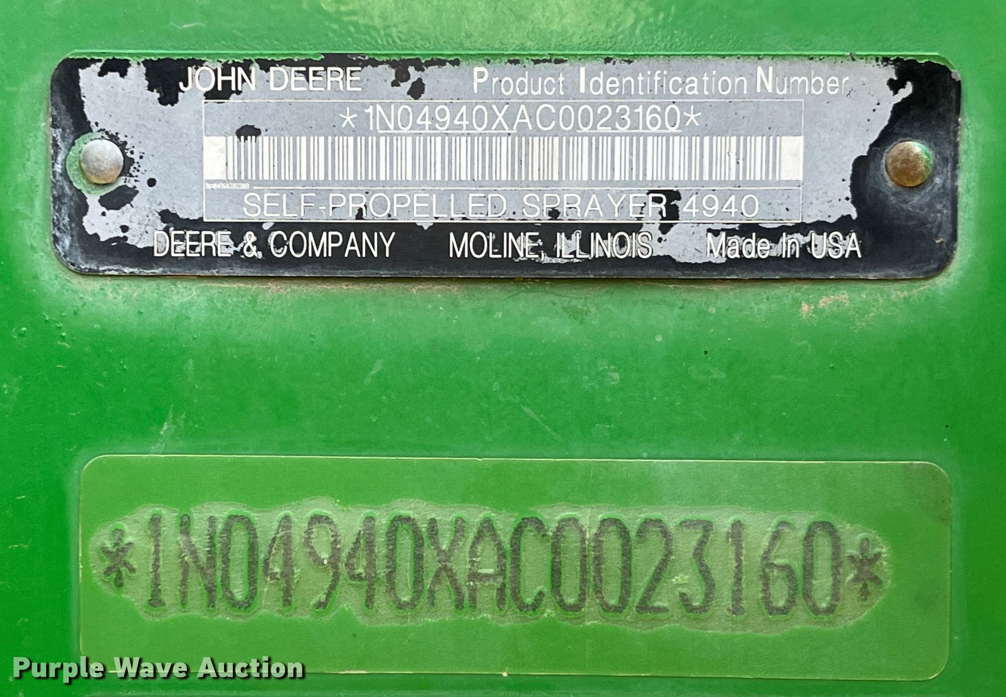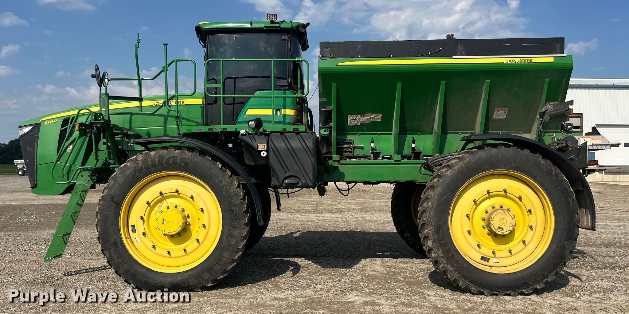 Purple Wave is selling a used Applicator Self Propelled in Missouri. This item is a 2013 John Deere 4940 spreader with the following: Engine hours: 3,001 on meter, Actual hours unknown