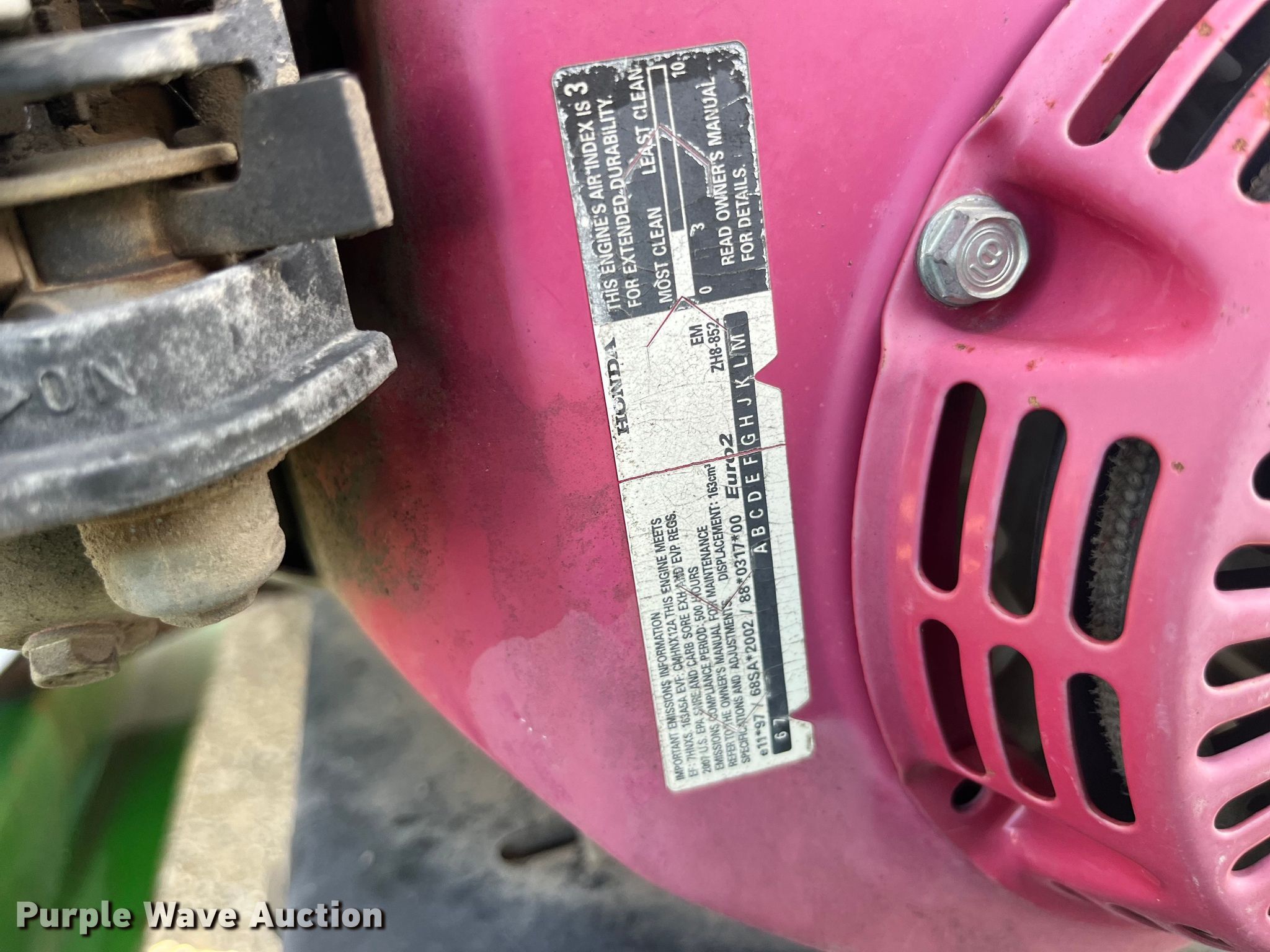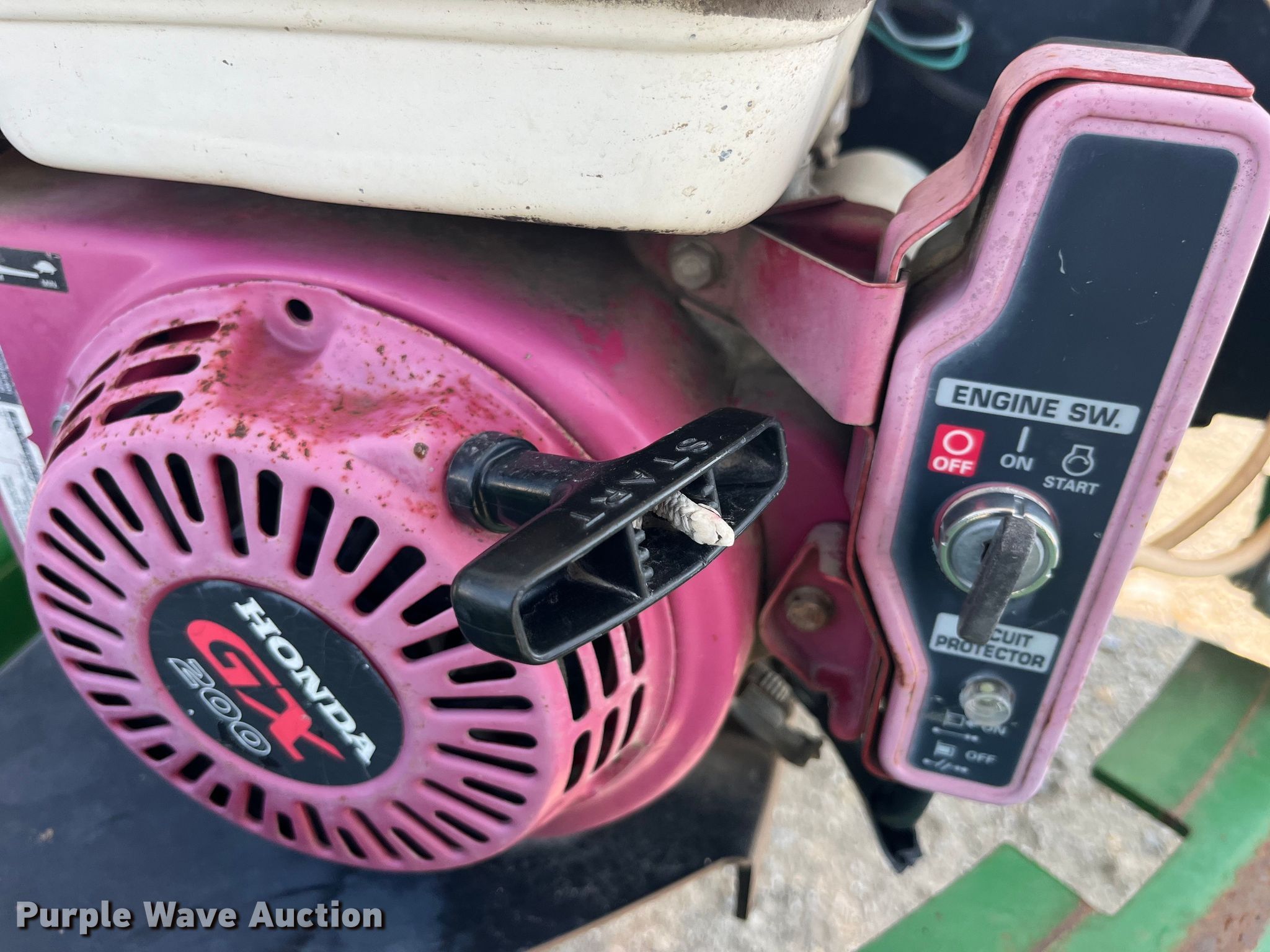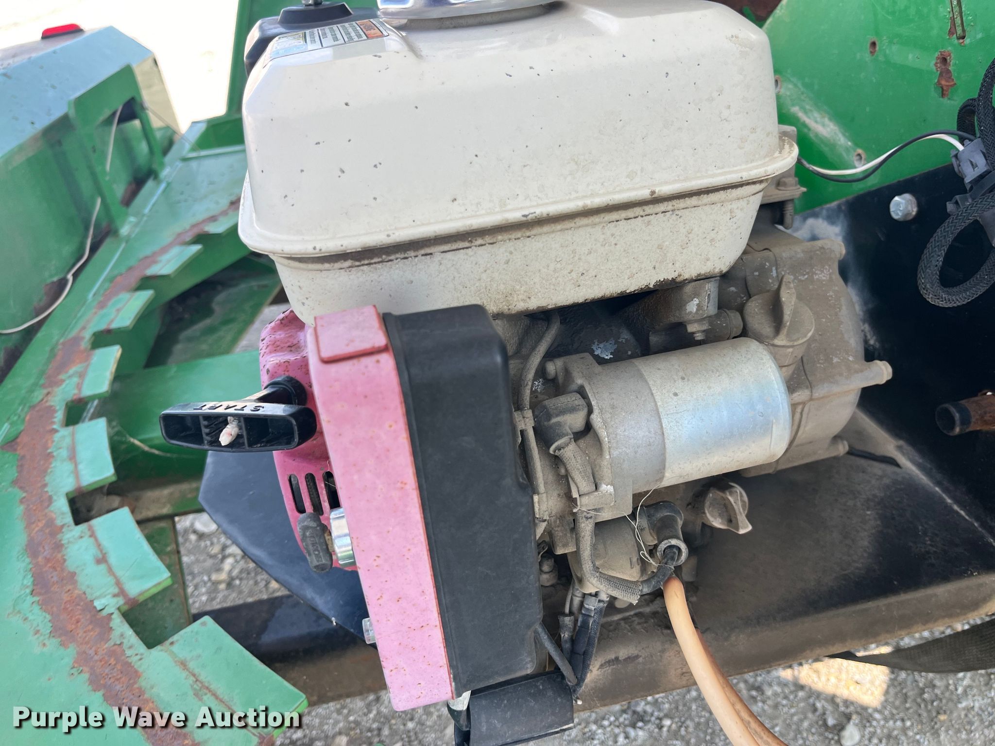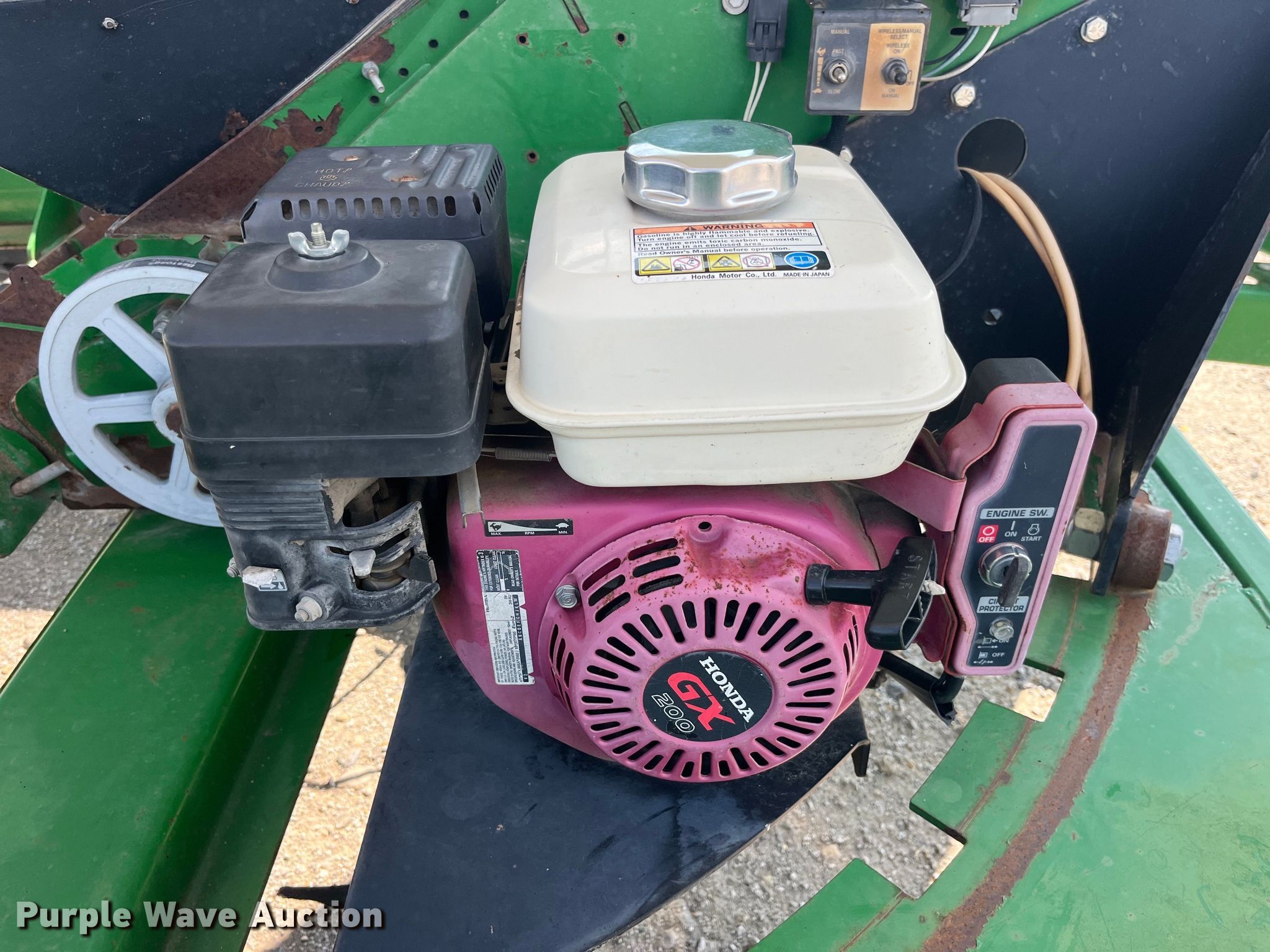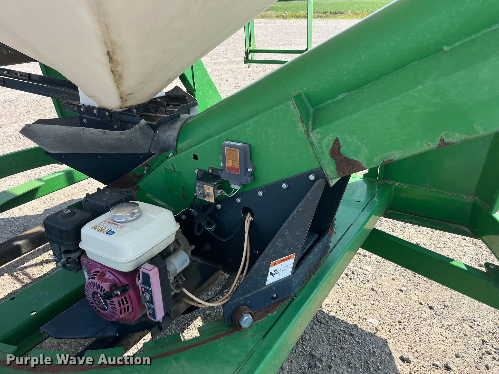 Seed Shuttle SS290 seed tender. Serial: 10195. Engine Honda GX200, Displacement: 163cc, Cylinders: 1, Fuel type: Gas. Features Conveyor width: 10", Shut-off gate: Manual, Compartments: 2, Ball hitch size: 2 5/16". Tires Size: 235/85R16. MFA Ag. Ravenwood, MO 64479