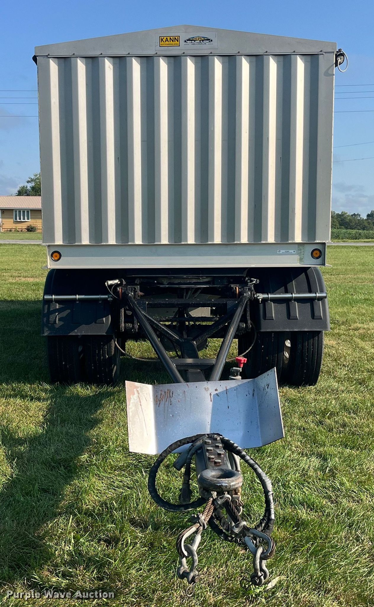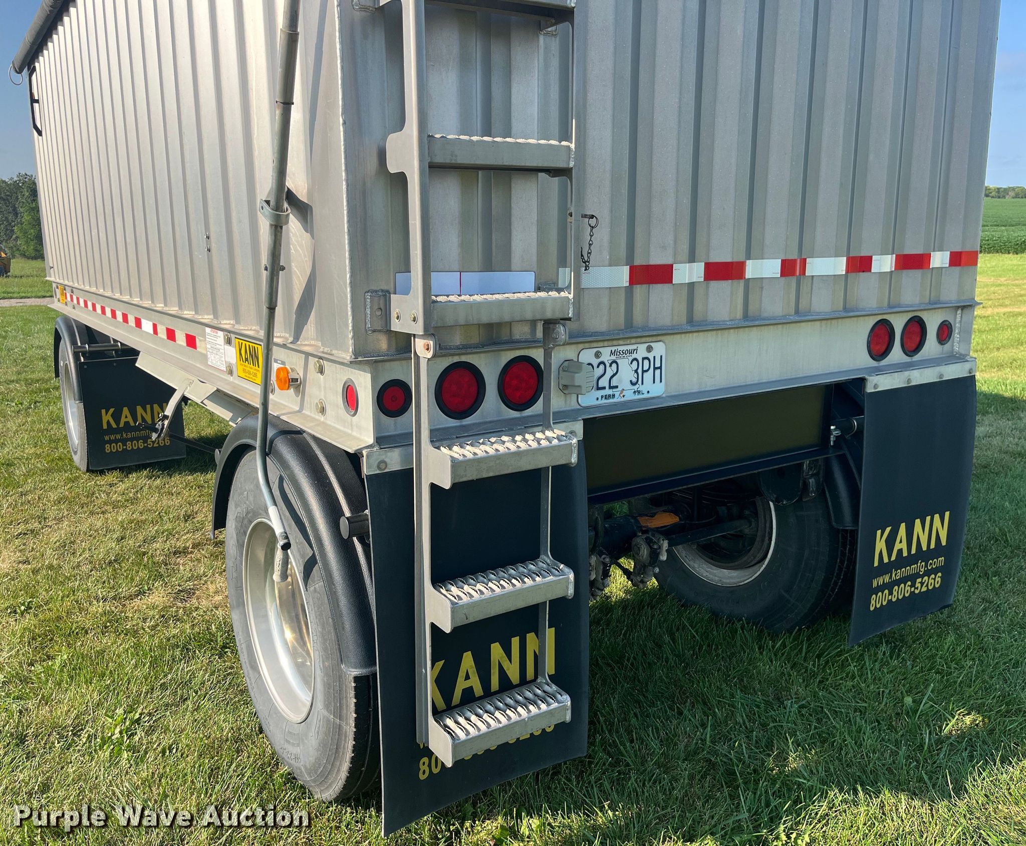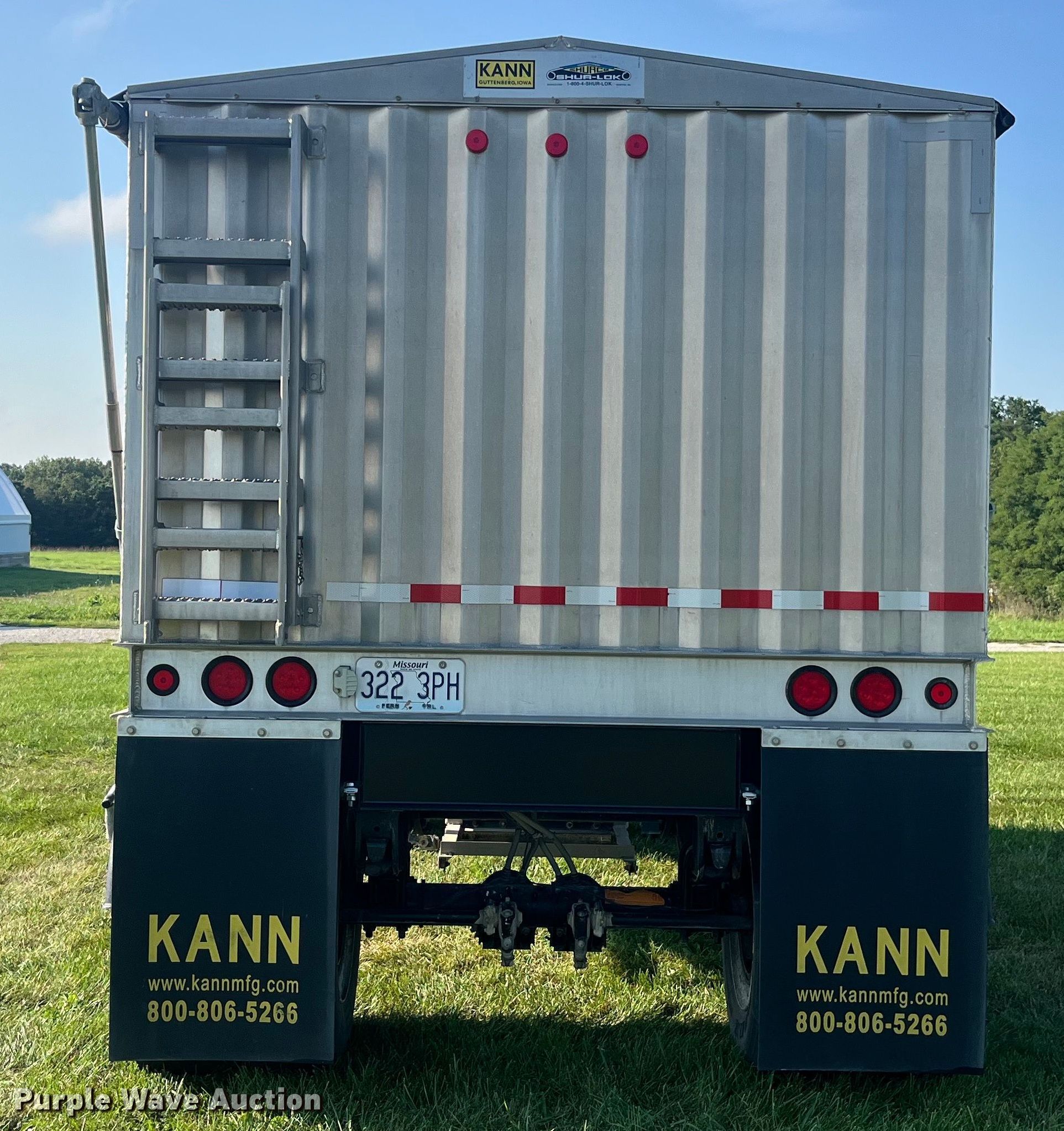 2015 Kann pup grain trailer. VIN: 1K9HP1823FK007247. Dimensions Overall: 31' L x 102" W, Body: 18' L x 95.5" W, Side height: 60". Features Body type: Aluminum, Hoppers: Single Trap gates: Manual. Chassis Hitch: Pintle, Landing gear: Single, Suspension: Spring, Brakes: Air, GVWR: 40,000 lbs, GAWR: 20,000 lbs. Tires Aluminum wheels, Size: 11R22.5. Missouri title. Title distribution may be delayed up to 14 days from verification of funds. T J T Gottman Inc.. Monroe City, MO 63456
