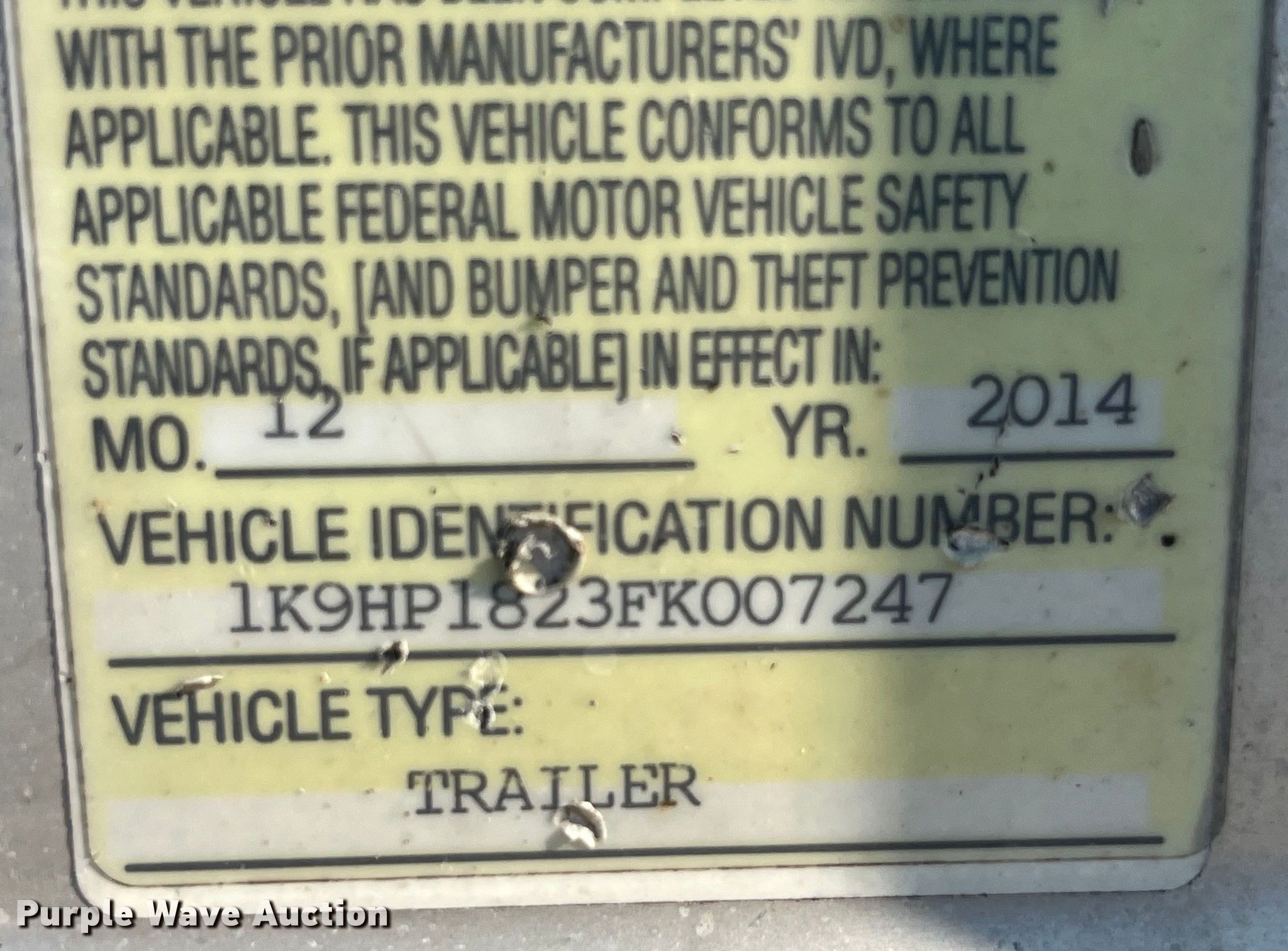 Purple Wave is selling a used Grain or Commodity Trailer in Missouri. This item is a 2015 Kann pup grain trailer with the following: VIN: 1K9HP1823FK007247