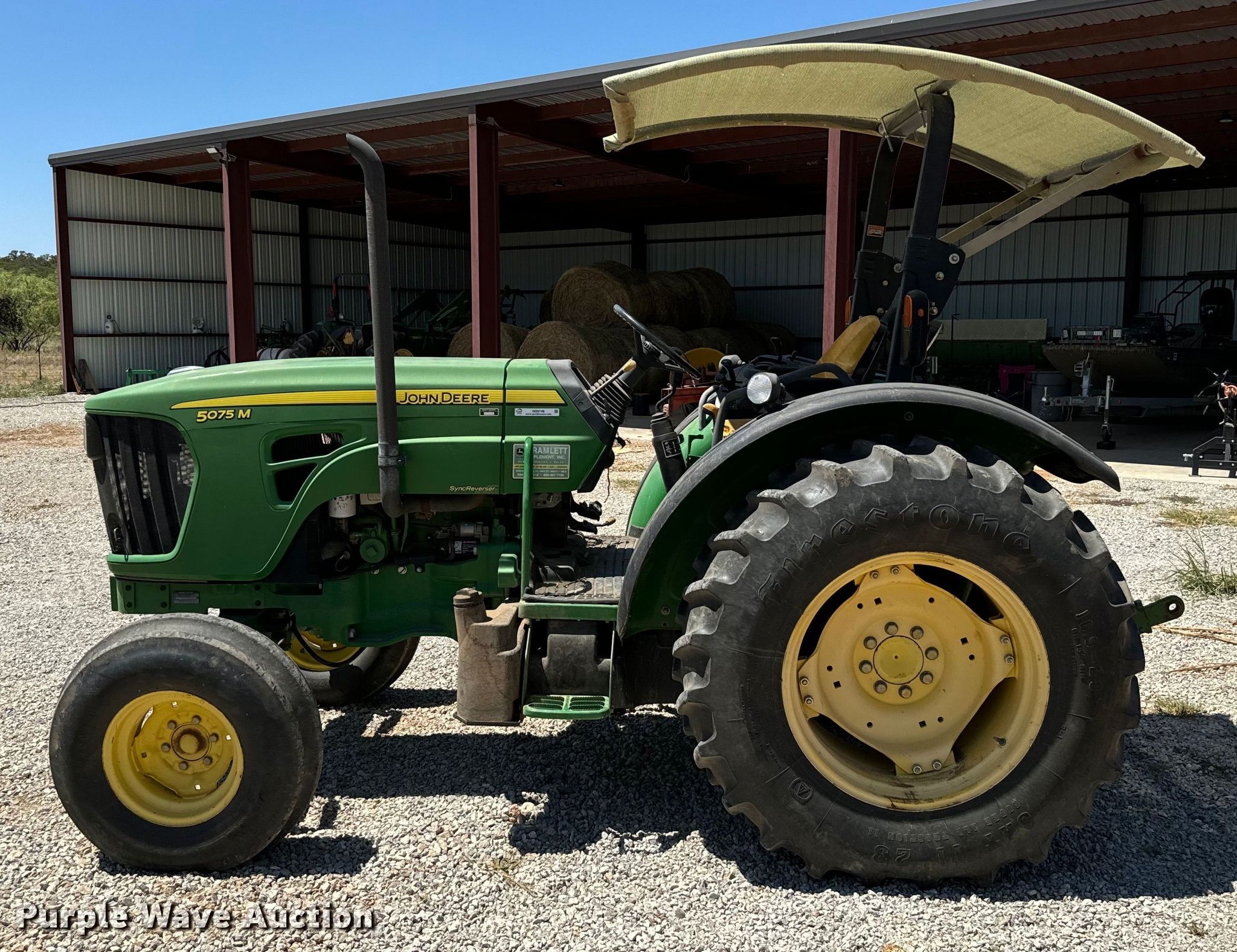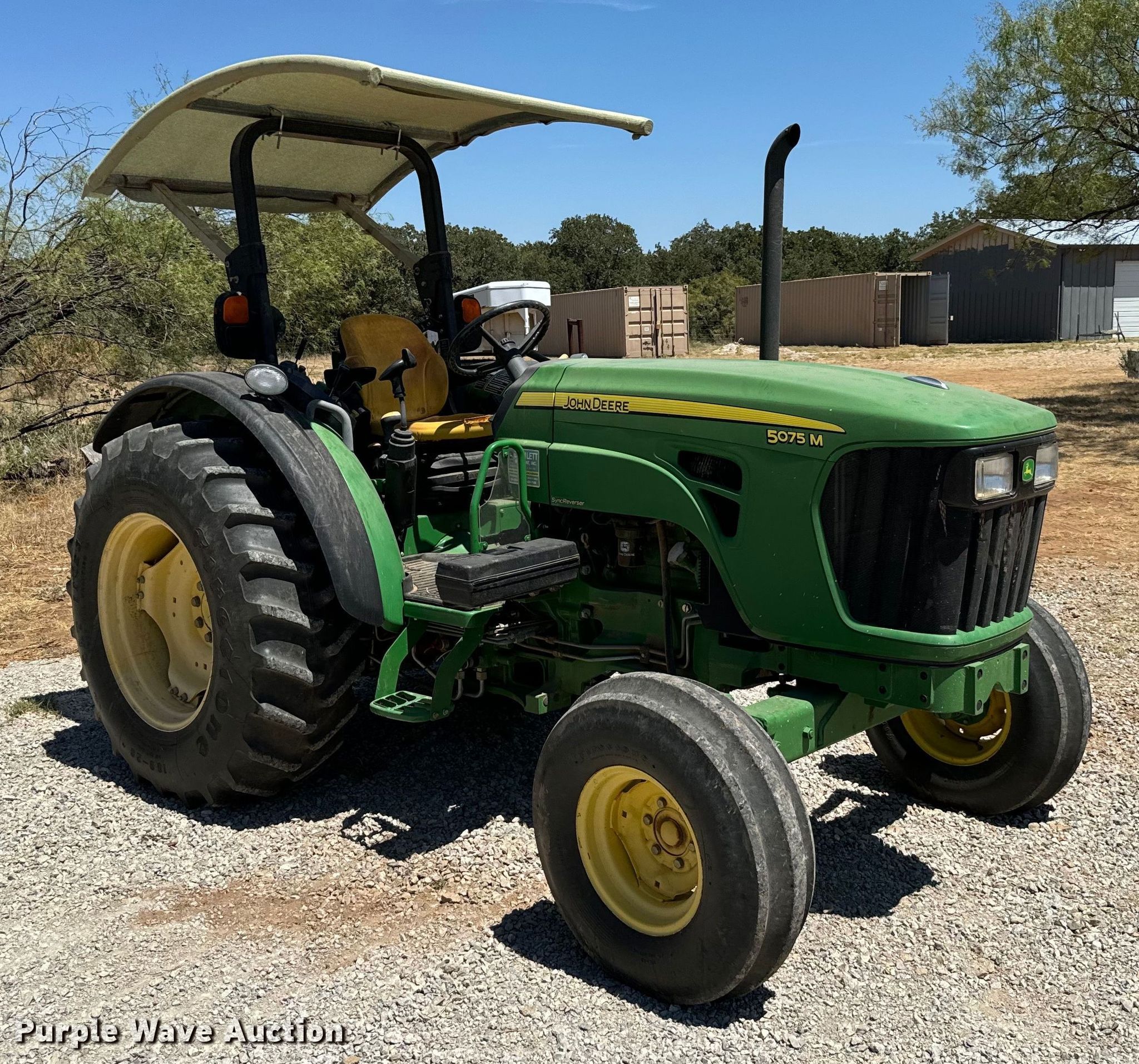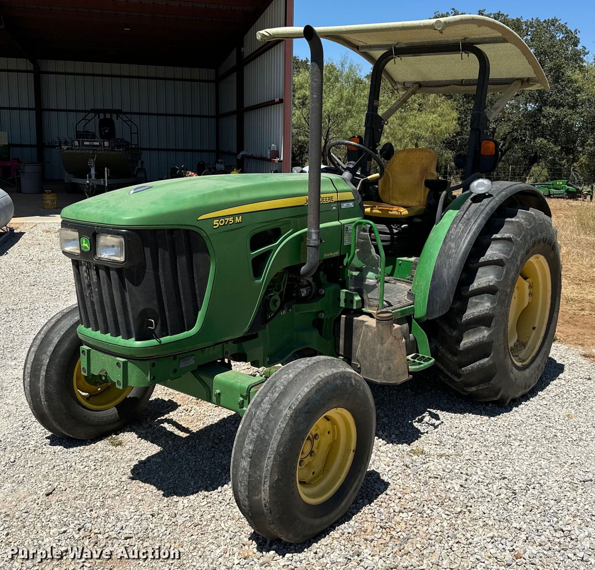Purple Wave is selling a used Tractor in Texas. This item is a 2009 John Deere 5075M tractor with the following: Hours: 825 on meter, Serial: LV5075M150090