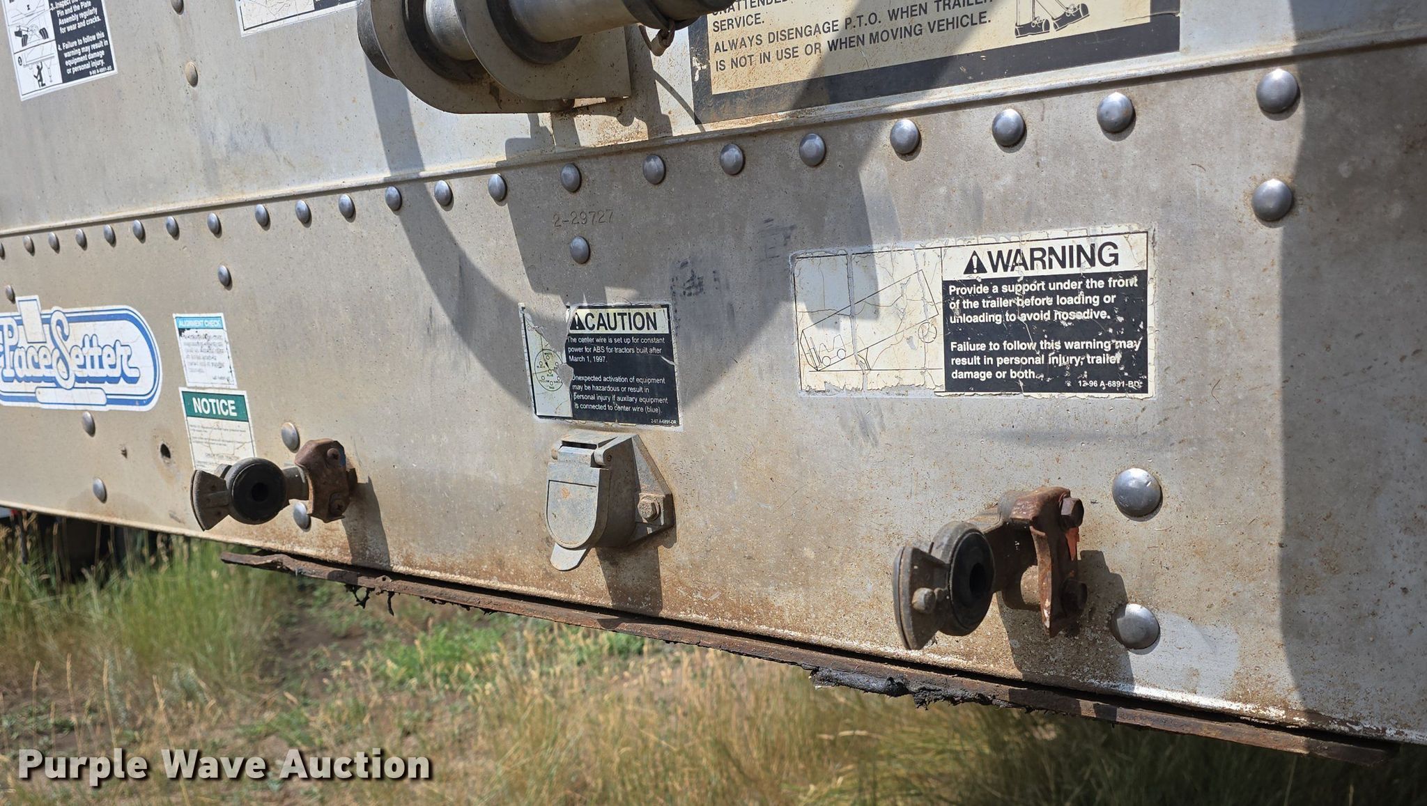 1999 Wilson DWG-400W live bottom trailer. VIN: 1W1XKF6B6XB229727. Dimensions Overall: 48' L x 102" W, Side height: 84". Features Body type: Aluminum, Floor: Walking floor. Chassis Landing gear: Dual, Suspension: Air, Brakes: Air, Axles: Spread, GVWR: 65,000 lbs, GAWR: 19,040 lbs. Tires Aluminum wheels, Size: 11R24.5. Notes Semi truck not included. South Dakota title. Title distribution may be delayed up to 14 days from verification of funds. Lee & Mary Briggs Ranch. Fort Pierre, SD 57532