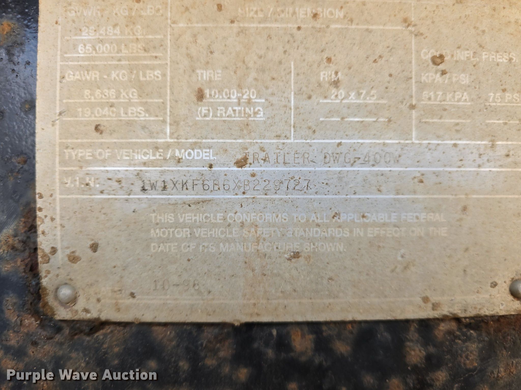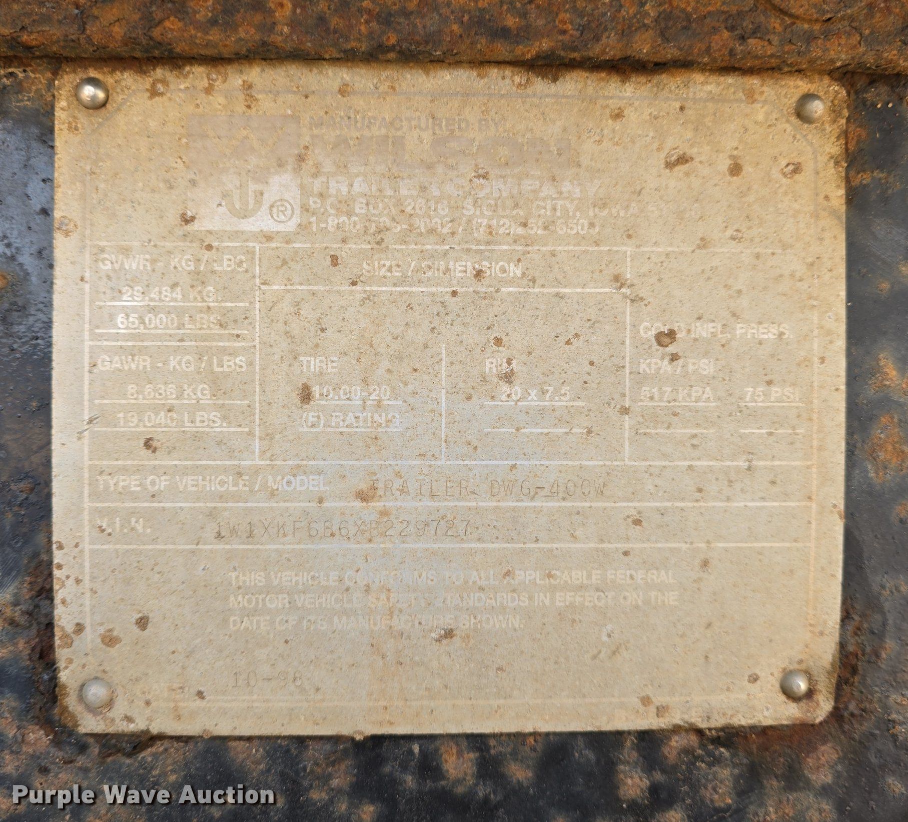 Purple Wave is selling a used Grain or Commodity Trailer in South Dakota. This item is a 1999 Wilson DWG-400W live bottom trailer with the following: VIN: 1W1XKF6B6XB229727