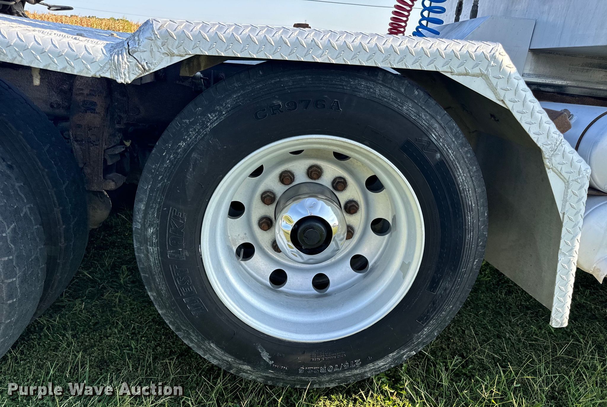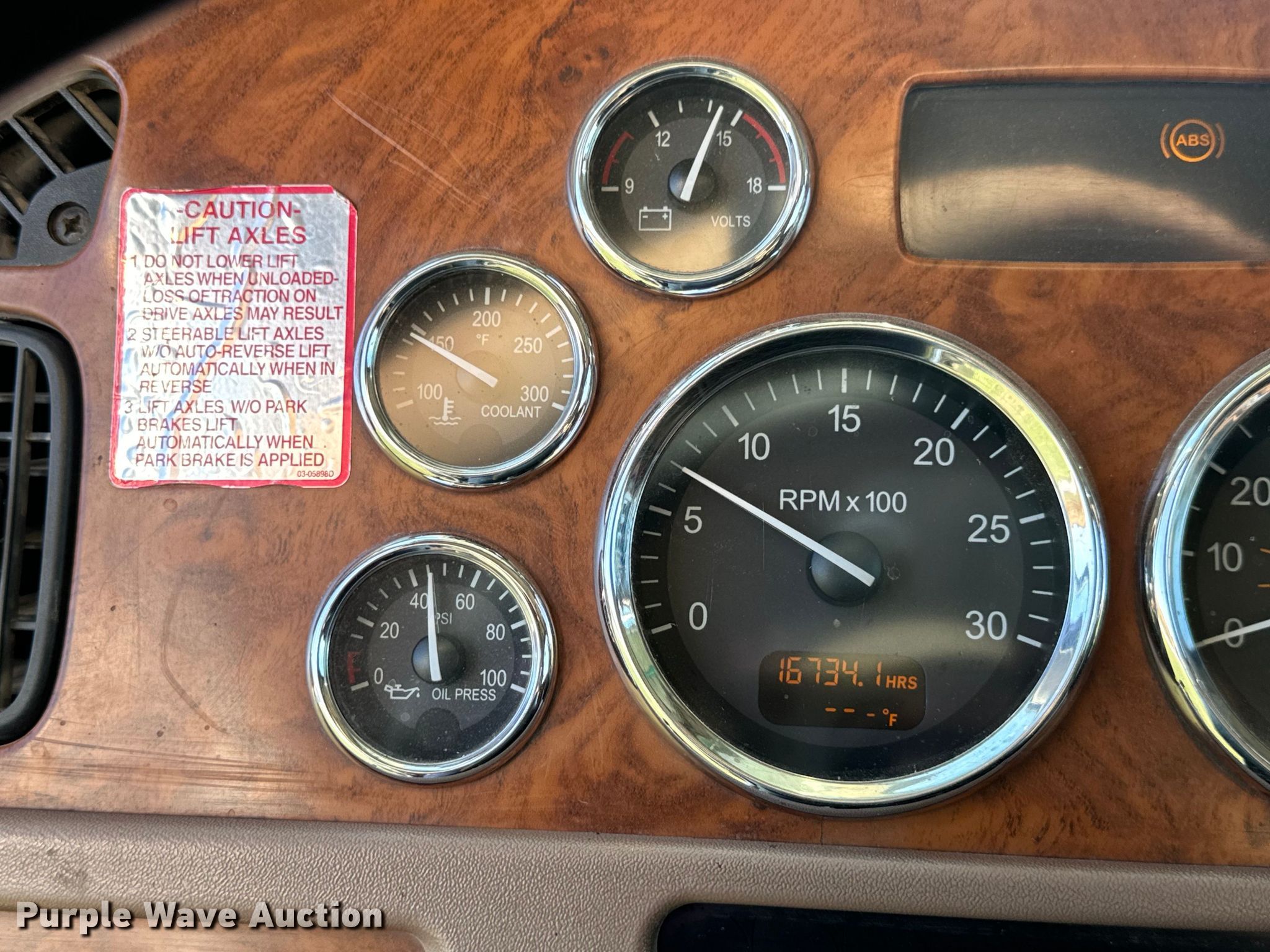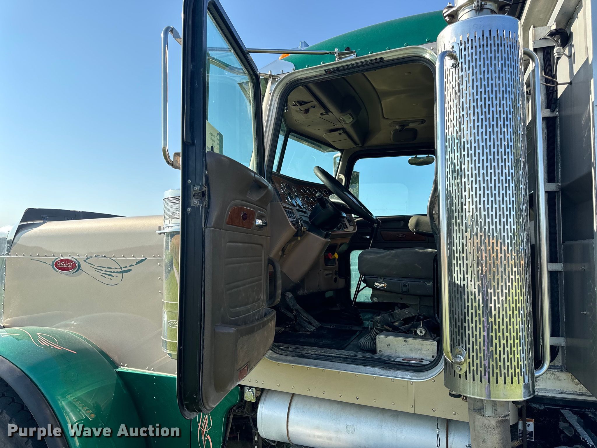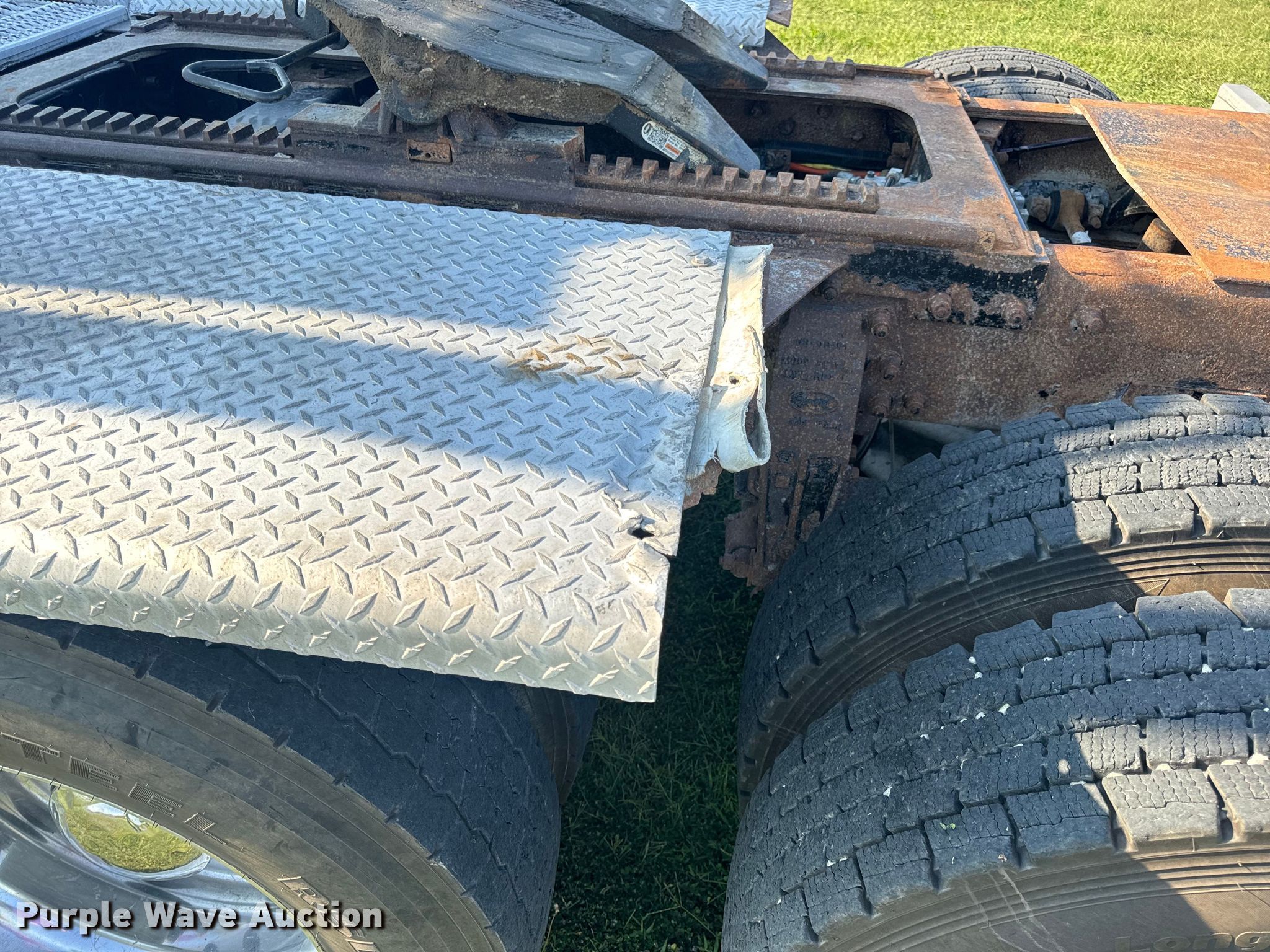 2007 Peterbilt 379 semi truck. Miles: 632,428 on odometer, Hours: 16,734 on meter, VIN: 1XP5DBEX57N737069. Engine Caterpillar C15, Displacement: 14.6L, Cylinders: 6, Fuel type: Diesel, HP: 625, Engine brake. Transmission Eaton Fuller, Manual, Speed: 18. Chassis Axles: Tandem, Pusher axle, Differential lock: Full, Suspension: Air Dump valves, Brakes: Air, PTO, Wet kit, GVWR: 80,000 lbs FAWR: 20,000 lbs, IAWR: 23,000 lbs, RAWR: 23,000 lbs, Lift axle GAWR: 20,000 lbs. Interior AC, Heat, Heated mirrors, Power windows, Cruise control, Air ride cab. Features Deck plate: Aluminum, Fifth wheel type: Air operated, Sliding, Fuel tank: Single. Tires Front: 385/65R22.5, Rear: 11R24.5, Lift axle: 275/70R22.5. Notes Dash warning indicator: ABS, Unknown operating condition of pusher axle, AC issues, blower motor makes noise, Fifth wheel actuator issues, air line broke. Missouri title. Title distribution may be delayed up to 14 days from verification of funds. AAA Disposal Service, Inc. Buckner, MO 64016