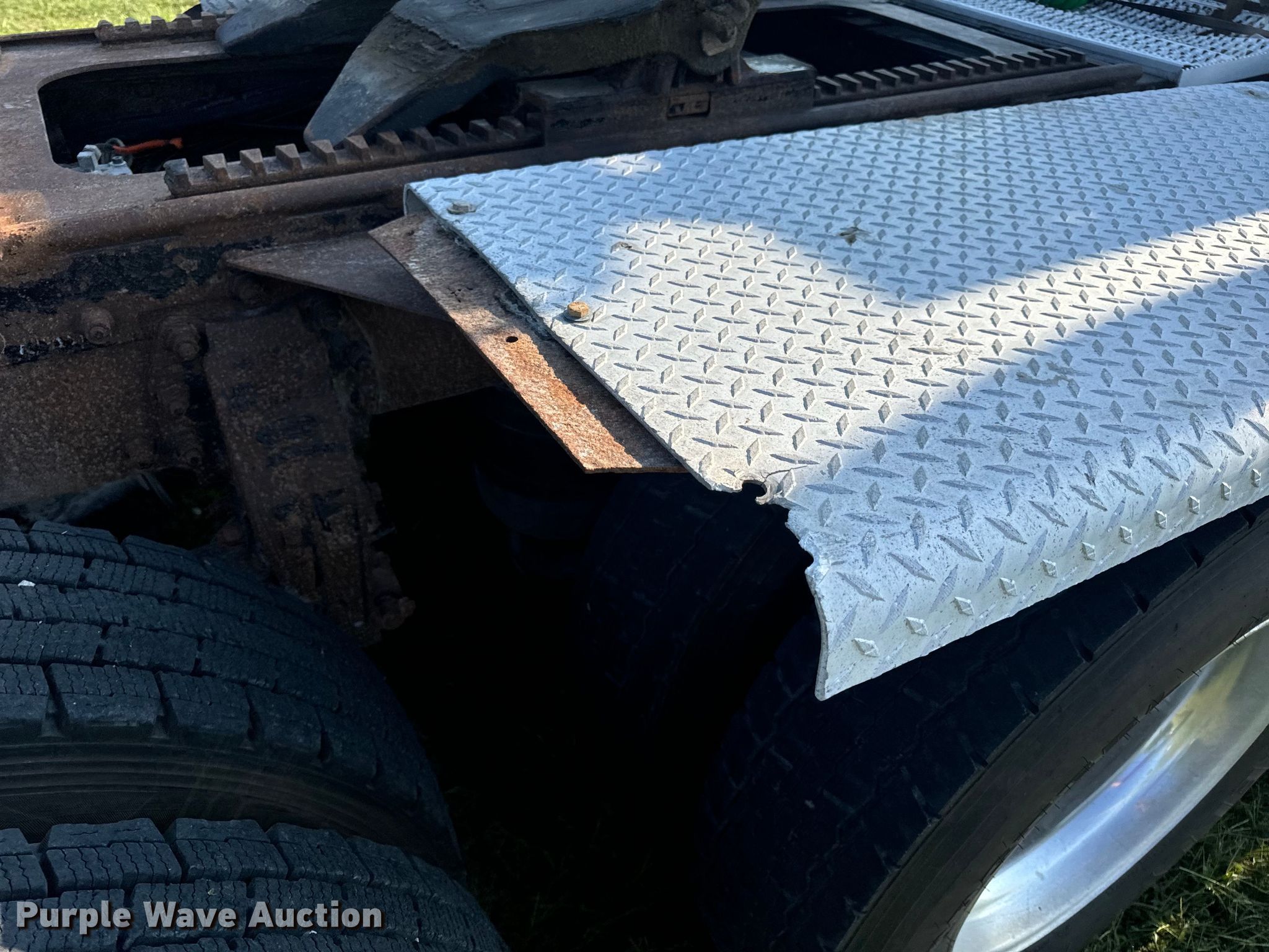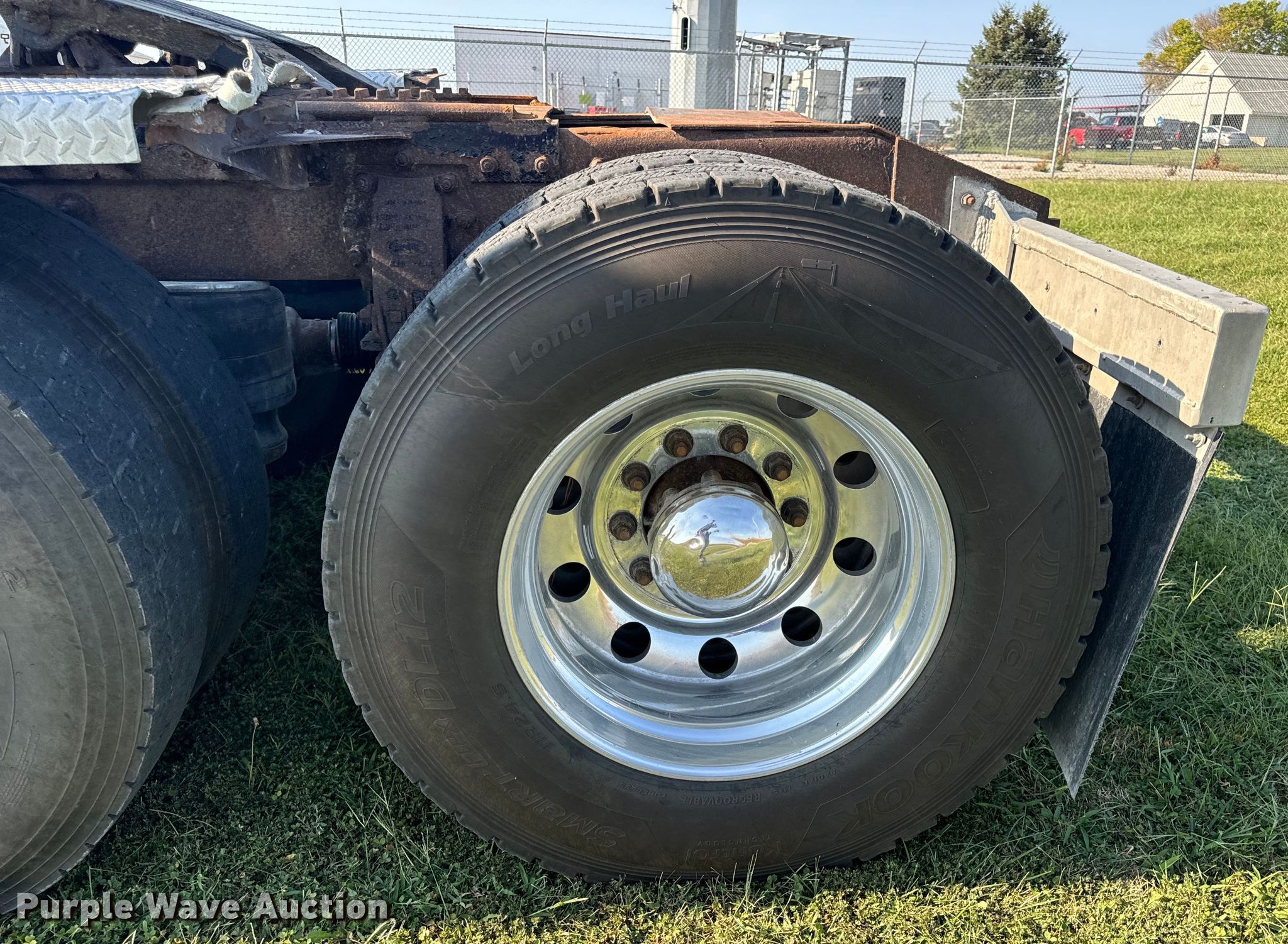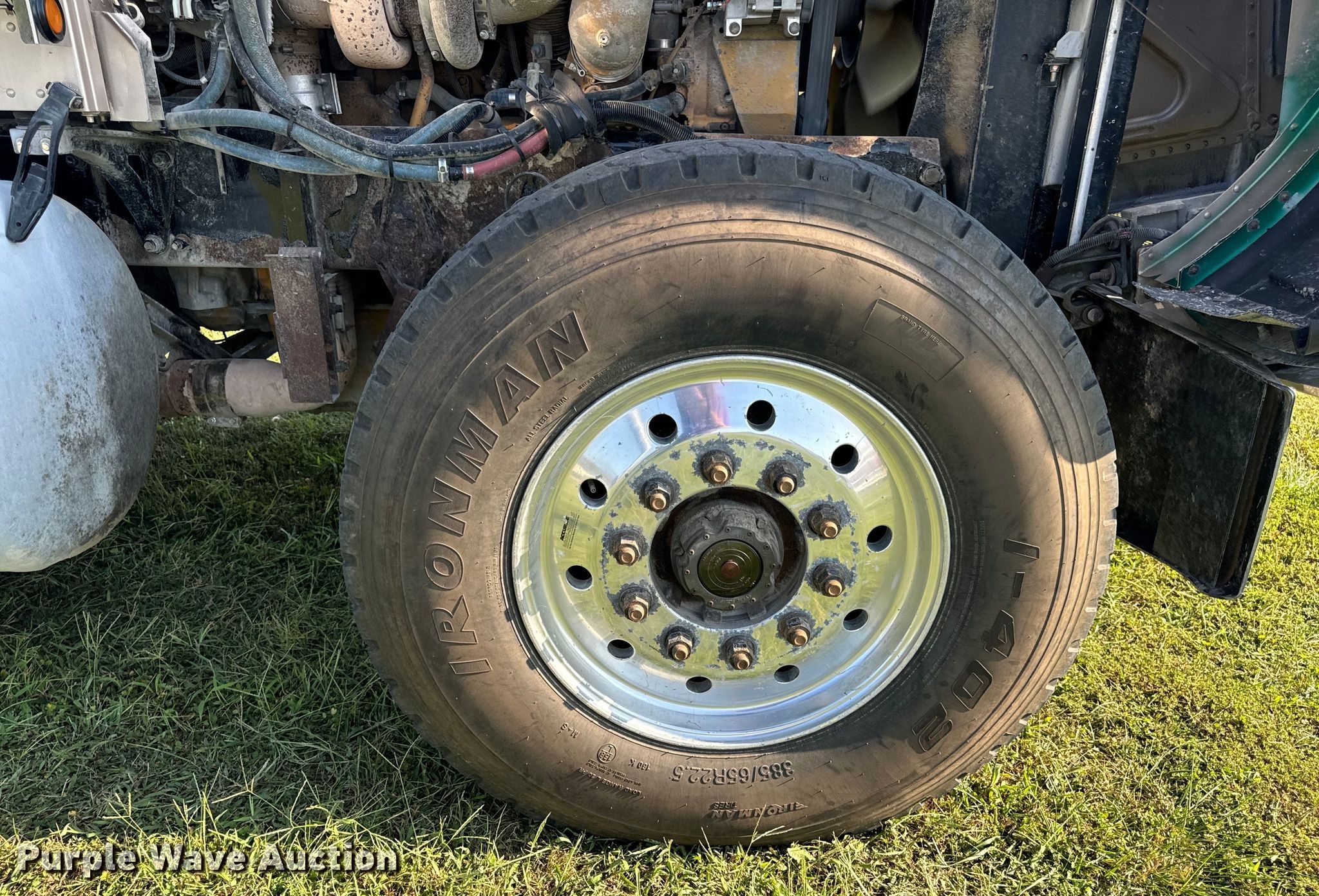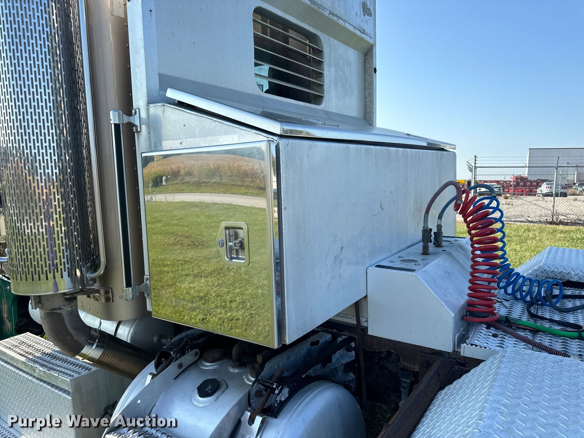 2007 Peterbilt 379 semi truck. Miles: 632,428 on odometer, Hours: 16,734 on meter, VIN: 1XP5DBEX57N737069. Engine Caterpillar C15, Displacement: 14.6L, Cylinders: 6, Fuel type: Diesel, HP: 625, Engine brake. Transmission Eaton Fuller, Manual, Speed: 18. Chassis Axles: Tandem, Pusher axle, Differential lock: Full, Suspension: Air Dump valves, Brakes: Air, PTO, Wet kit, GVWR: 80,000 lbs FAWR: 20,000 lbs, IAWR: 23,000 lbs, RAWR: 23,000 lbs, Lift axle GAWR: 20,000 lbs. Interior AC, Heat, Heated mirrors, Power windows, Cruise control, Air ride cab. Features Deck plate: Aluminum, Fifth wheel type: Air operated, Sliding, Fuel tank: Single. Tires Front: 385/65R22.5, Rear: 11R24.5, Lift axle: 275/70R22.5. Notes Dash warning indicator: ABS, Unknown operating condition of pusher axle, AC issues, blower motor makes noise, Fifth wheel actuator issues, air line broke. Missouri title. Title distribution may be delayed up to 14 days from verification of funds. AAA Disposal Service, Inc. Buckner, MO 64016