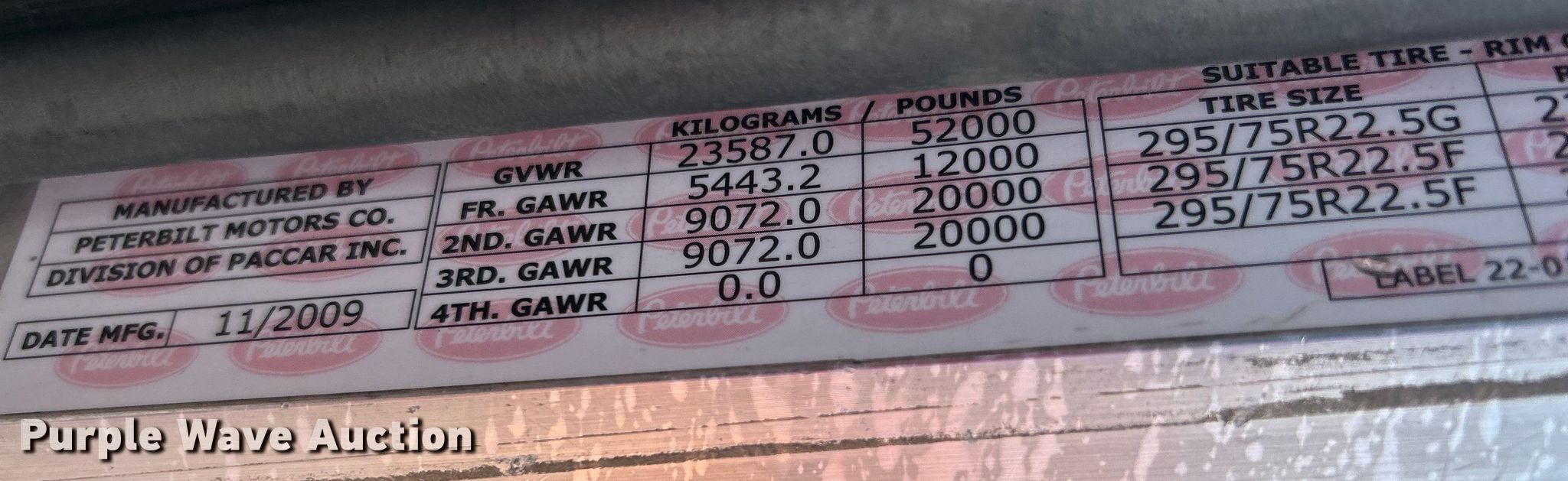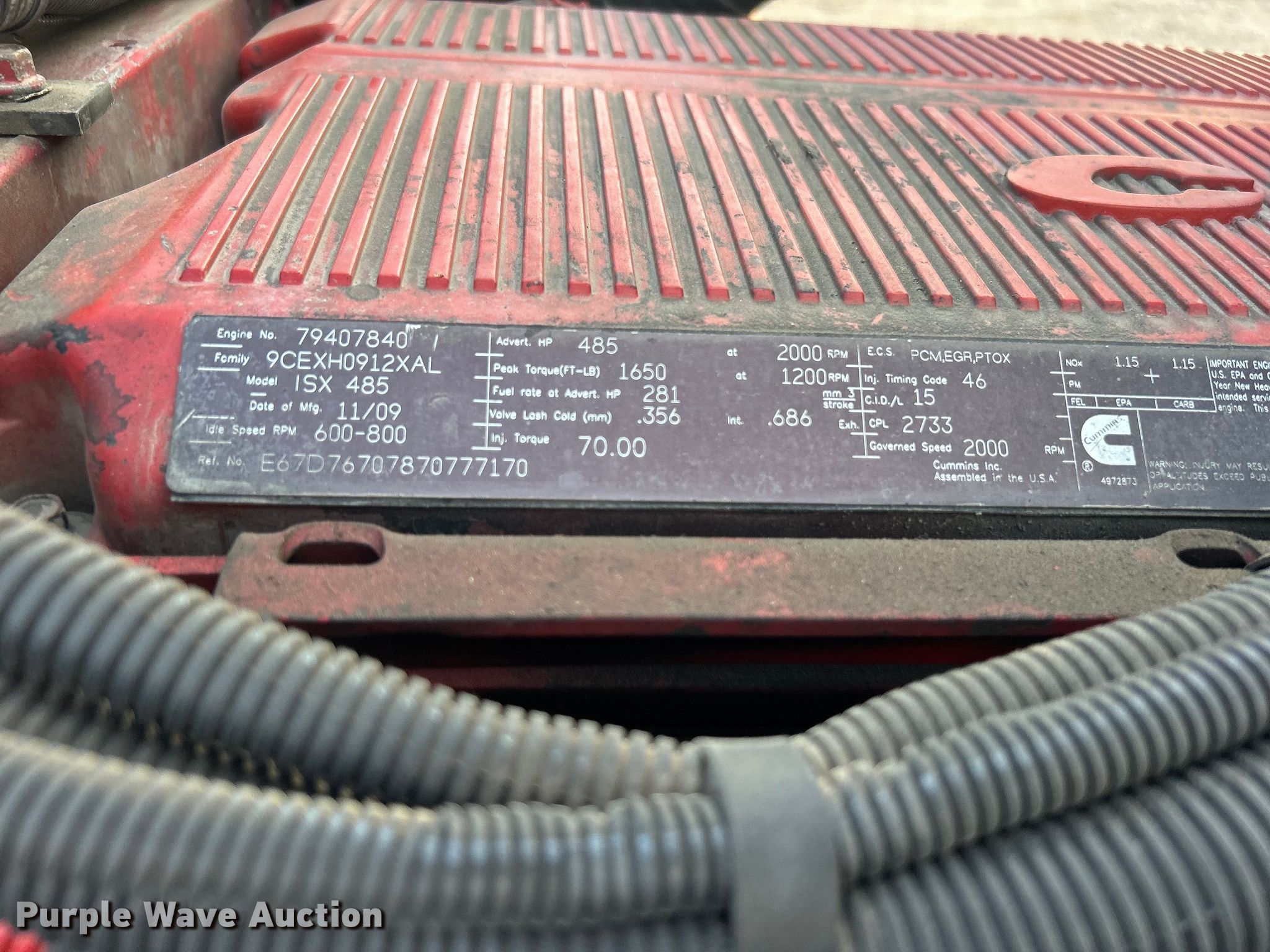 2010 Peterbilt 386 semi truck. Miles: 254,371 on odometer, Hours: 15,636 on meter, VIN: 1XPHD49X7AD113130. Engine Cummins ISX 485, Serial: 79407840, Displacement: 15.0L, Cylinders: 6, Fuel type: Diesel, HP: 485. Transmission Eaton Fuller, Manual, Speed: 10. Chassis Axles: Tandem, Differential lock: Inter-axle, Suspension: Air Dump valves, Brakes: Air, PTO, GVWR: 52,000 lbs FAWR: 12,000 lbs, IAWR: 20,000 lbs, RAWR: 20,000 lbs. Interior AC, Heat, Power windows, Cruise control, Air ride cab. Features Deck plate: Aluminum, Fifth wheel type: Air operated, Sliding, Fuel tank: Single, Hose reel, Nozzle. Tires Size: 295/75R22.5. Notes Possible engine issues, white smoke. Oklahoma title. Title distribution may be delayed up to 14 days from verification of funds. 15107 North 137th East Avenue. Collinsville, OK 74021
