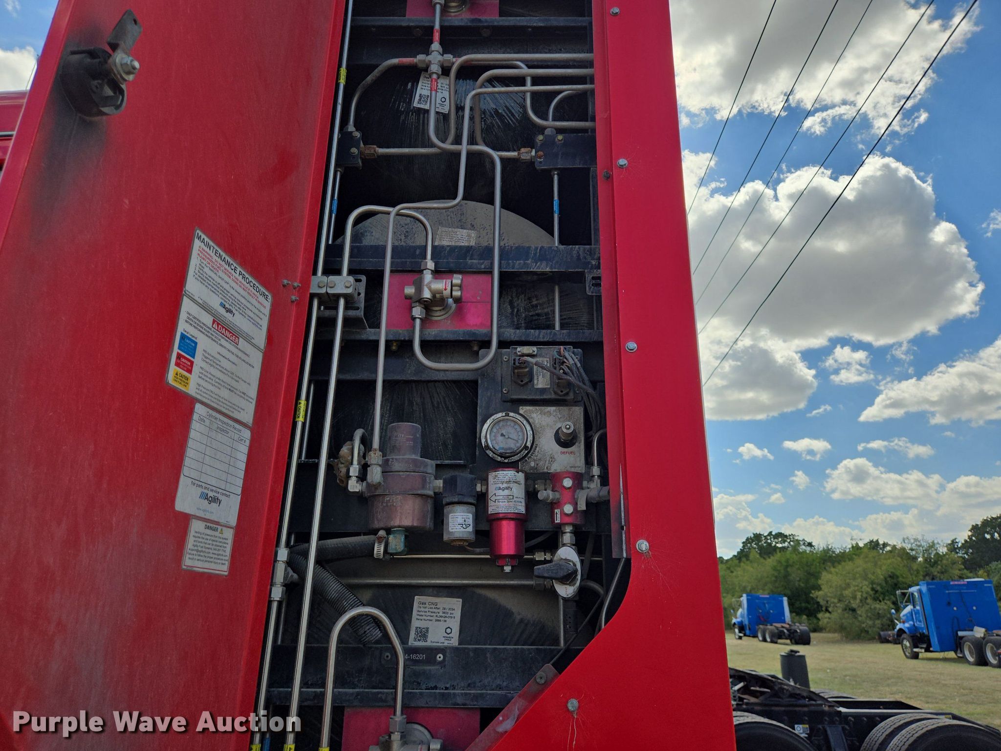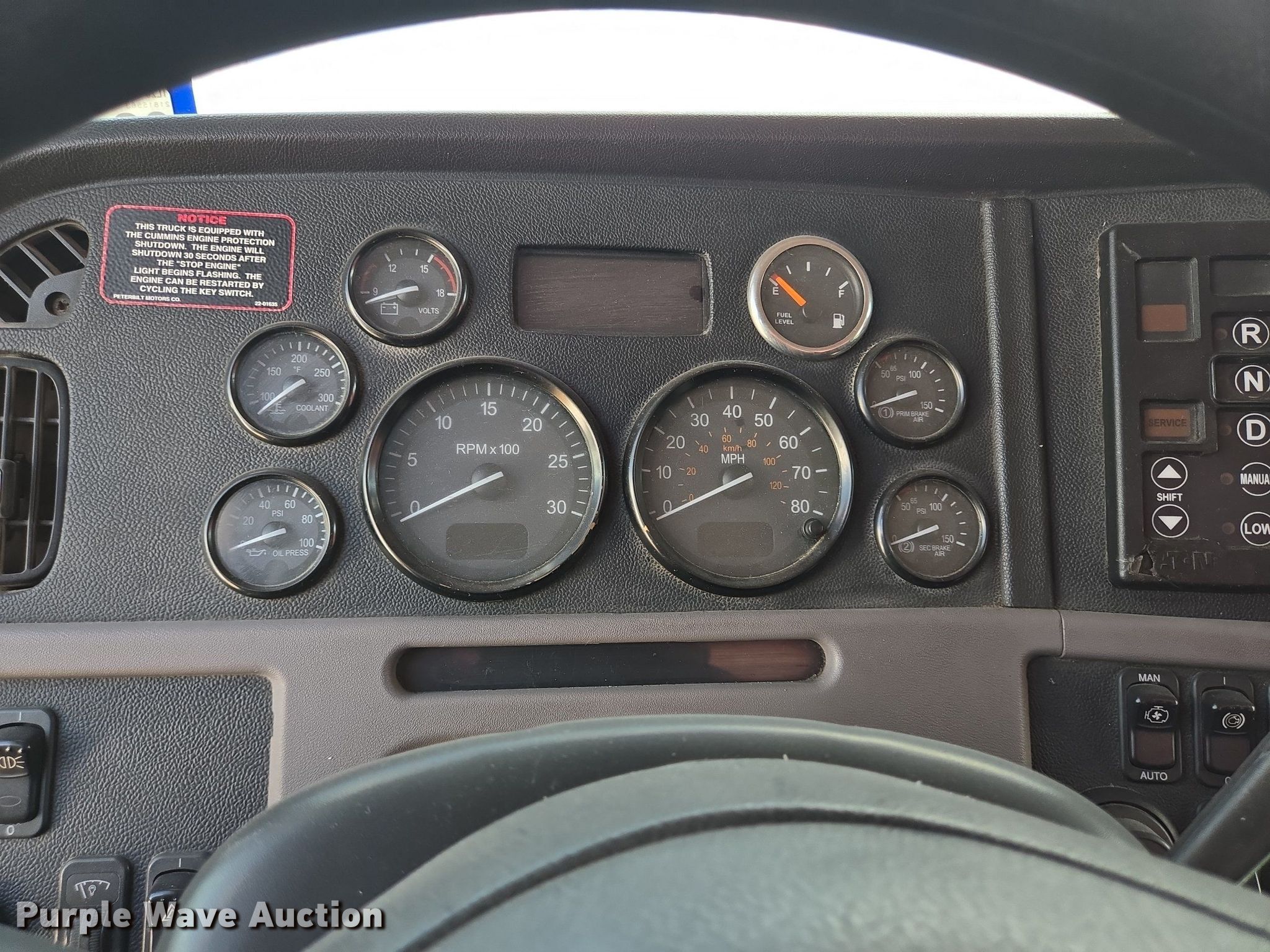 2015 Peterbilt 365 semi truck. Miles: 604,683 on odometer, Hours: 13,696 on meter, VIN: 1NPSDH9X2FD288044, Unit #: 7158. Engine Cummins ISX12G, Displacement: 11.9L, Cylinders: 6, Fuel type: CNG, Engine brake. Transmission Automated manual. Chassis Axles: Tandem, Differential lock: Inter-axle, Suspension: Air Dump valves, Brakes: Air, GVWR: 50,000 lbs FAWR: 12,000 lbs, IAWR: 18,999 lbs, RAWR: 18,999 lbs. Interior AC, Heat, Power windows, Cruise control, Air ride cab. Features Deck plate: Aluminum, Fifth wheel type: Air operated, Sliding. Tires Size: 275/80R22.5. Notes Dead battery, Brake issues, does not release. Texas title. Western Dairy Transport/Southwest Leasing Inc.. Stephenville, TX 76401