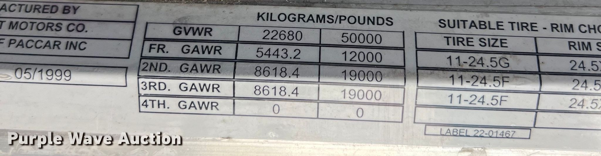 2000 Peterbilt 377 semi truck. Miles: 1,182,880 on odometer, VIN: 1XPCDU9X1YD485986, Unit #: 1129. Engine Caterpillar, Cylinders: 6, Fuel type: Diesel. Transmission Eaton Fuller, Manual. Chassis Axles: Tandem, Differential lock: Inter-axle, Suspension: Air Dump valves, Brakes: Air, GVWR: 50,000 lbs FAWR: 12,000 lbs, IAWR: 19,000 lbs, RAWR: 19,000 lbs. Interior AC, Heat, Cruise control, Air ride cab, Sleeper Model: Unibilt, Sleeper length: 3' 6", Beds: Single. Features Deck plate: Aluminum, Fifth wheel type: Fixed, Fuel tank: Dual. Tires Front: 295/75R22.5, Rear: 275/80R22.5. Notes Windshield chipped or cracked, Dead battery, AC issues, does not blow cold. Missouri title. Western Dairy Transport/Southwest Leasing Inc.. Stephenville, TX 76401