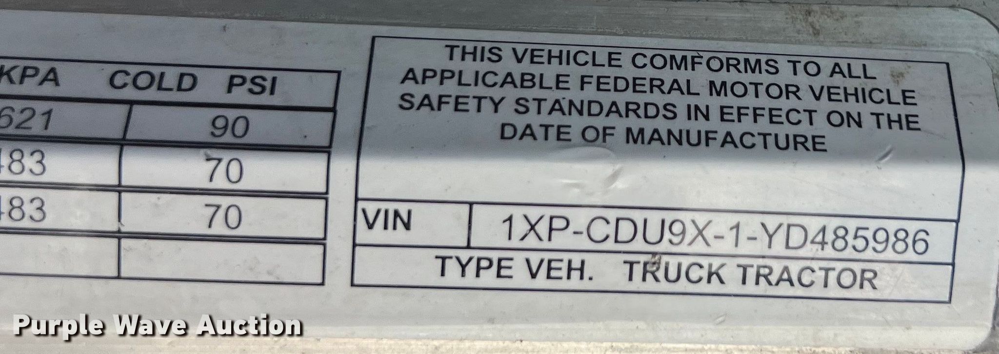 - VIN: 1XPCDU9X1YD485986