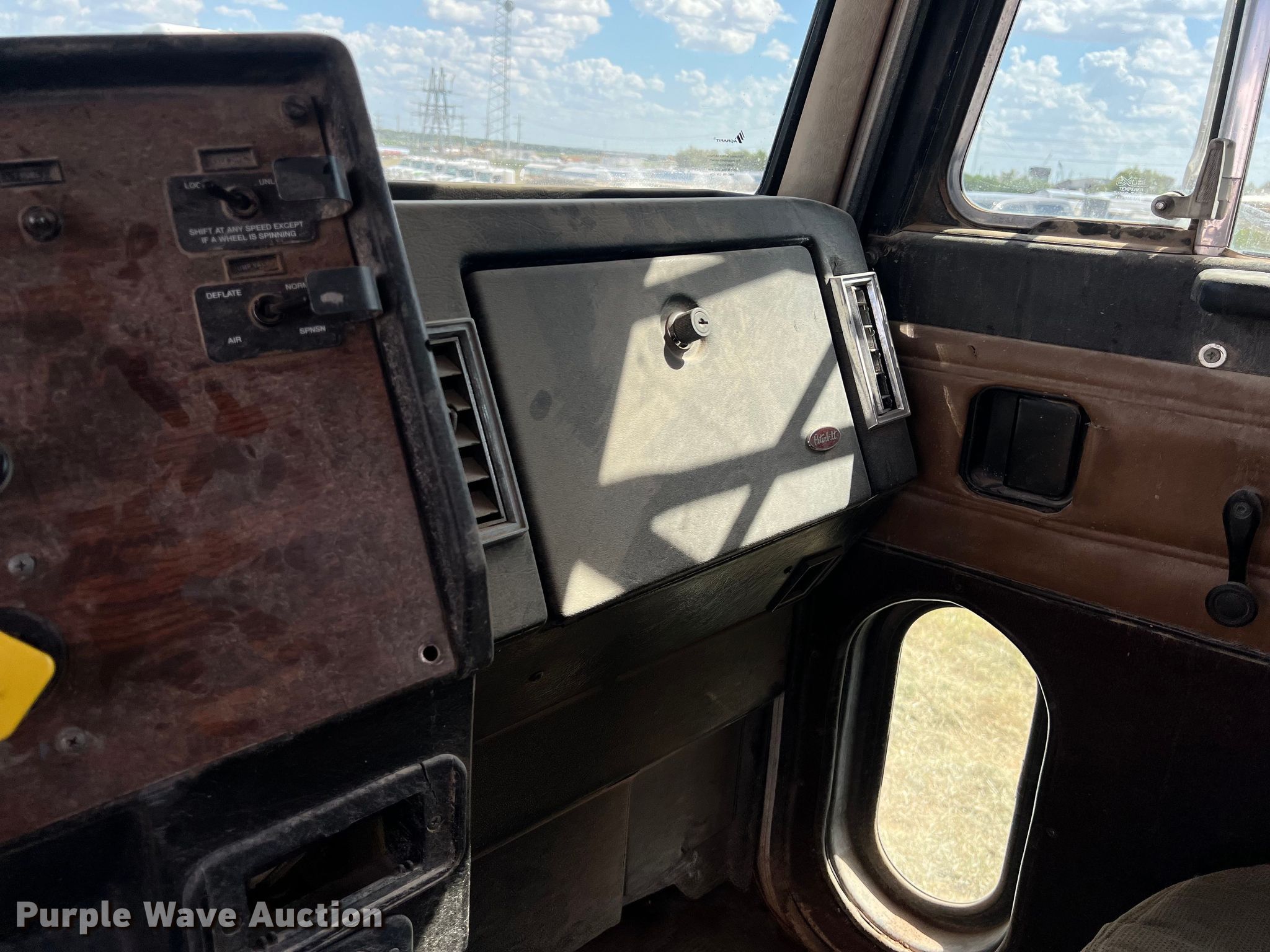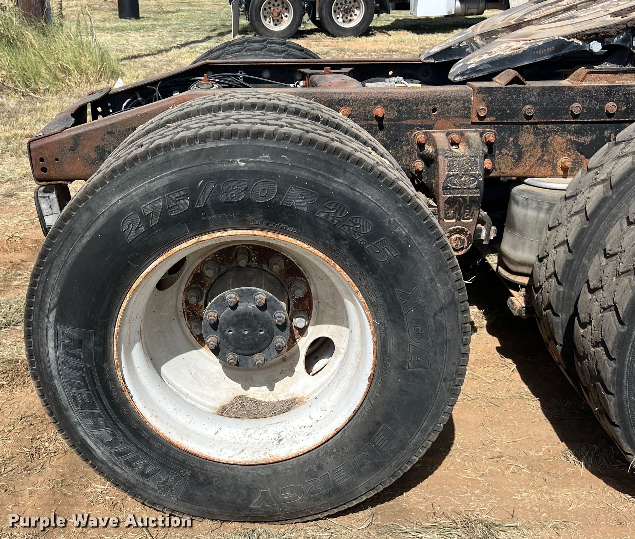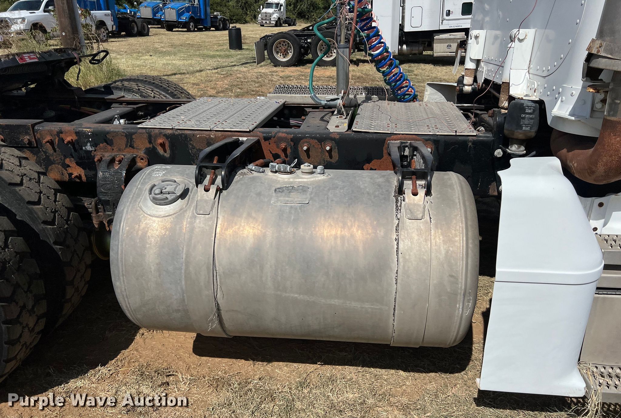 1998 Peterbilt 377 semi truck. Miles: 141,105 on odometer, VIN: 1XPCDU9X7WD425966, Unit #: 7524. Engine Caterpillar C12, Cylinders: 6, Fuel type: Diesel. Transmission Manual. Chassis Axles: Tandem, Differential lock: Inter-axle, Suspension: Air Dump valves, Brakes: Air, GVWR: 50,000 lbs FAWR: 12,000 lbs, IAWR: 19,000 lbs, RAWR: 19,000 lbs. Interior AC, Heat, Air ride cab. Features Deck plate: Aluminum, Fifth wheel type: Fixed, Fuel tank: Dual. Tires Size: 295/75R22.5. Notes Windshield chipped or cracked, Dead battery, Brake issues, do not release , Non-operational climate controls, Cruise switch missing. Missouri title. Title distribution may be delayed up to 14 days from verification of funds. Western Dairy Transport/Southwest Leasing Inc.. Stephenville, TX 76401