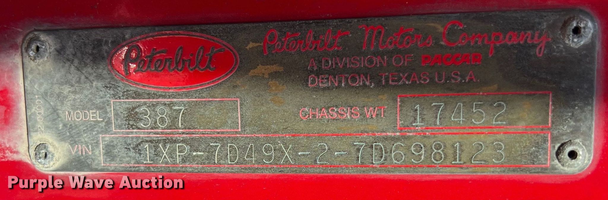 Purple Wave is selling a used Truck Tractor in Texas. This item is a 2007 Peterbilt 387 semi truck with the following: Miles: 116,597 on odometer, VIN: 1XP7D49X27D698123