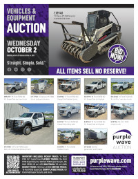 Purple Wave attempts to give its customers an industry leading experience by providing detailed equipment listings. Listings include written descriptions, photographs, location, and consignor information. Equipment descriptions are based on our direct observation and information provided by our selling customer. All information is intended to be as accurate as possible. However, we recommend customers inspect prior to bidding. Purple Wave listings are not intended to be substitutions for inspection. The details provided may differ on equipment based on information provided by the consignor. An error or omission in the listing will not change the results of the bid. It is the responsibility of the buyer to conduct any inspection and examination necessary to satisfy the buyer of all material facts before placing a bid. Purple Wave is not responsible for any statements about the item made by the Seller.