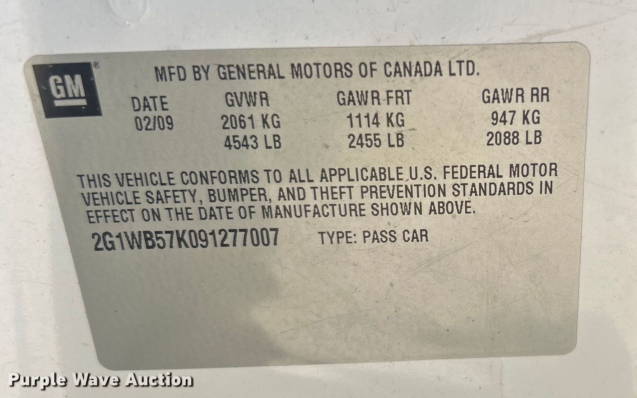 - VIN: 2G1WB57K091277007