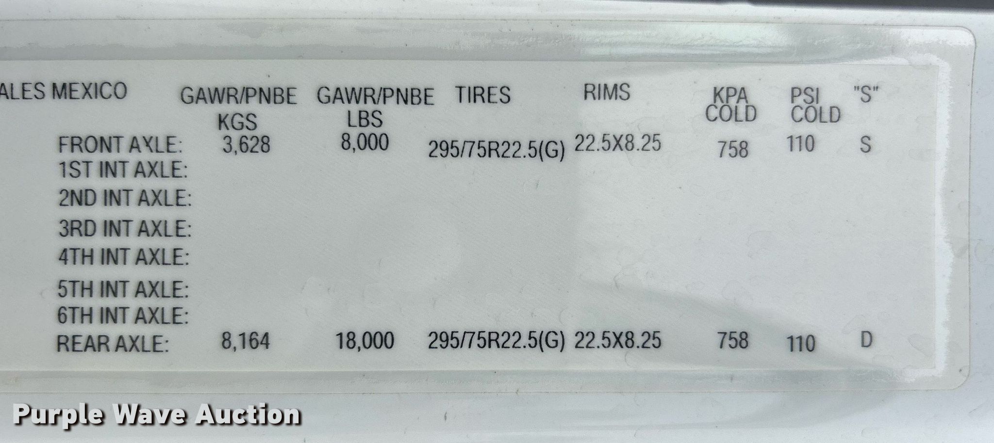2021 Freightliner M2 106 box truck. Miles: 237,604 on odometer, Hours: 6,819 on meter, VIN: 3ALACWFC5MDMV2172. Engine Cummins B6.7 250, Serial: 74715138, Displacement: 6.7L, Cylinders: 6, Fuel type: Diesel. Transmission Automatic. Chassis Axles: Single, Suspension: Air, Brakes: Air, GVWR: 26,000 lbs. Interior AC, Heat, Heated mirrors, Power windows, Power locks, Cruise control. Features Box bed Morgan, 24' L x 96" W x 91" H, Floor: Wood, E-track rail system End gate lift Waltco, Capacity: 2,500 lbs.. Tires Size: 295/75R22.5. Notes Possible engine issue. Oklahoma title. Title distribution may be delayed up to 14 days from verification of funds. Louis V Lepak Trucking Company. Tulsa, OK 74116